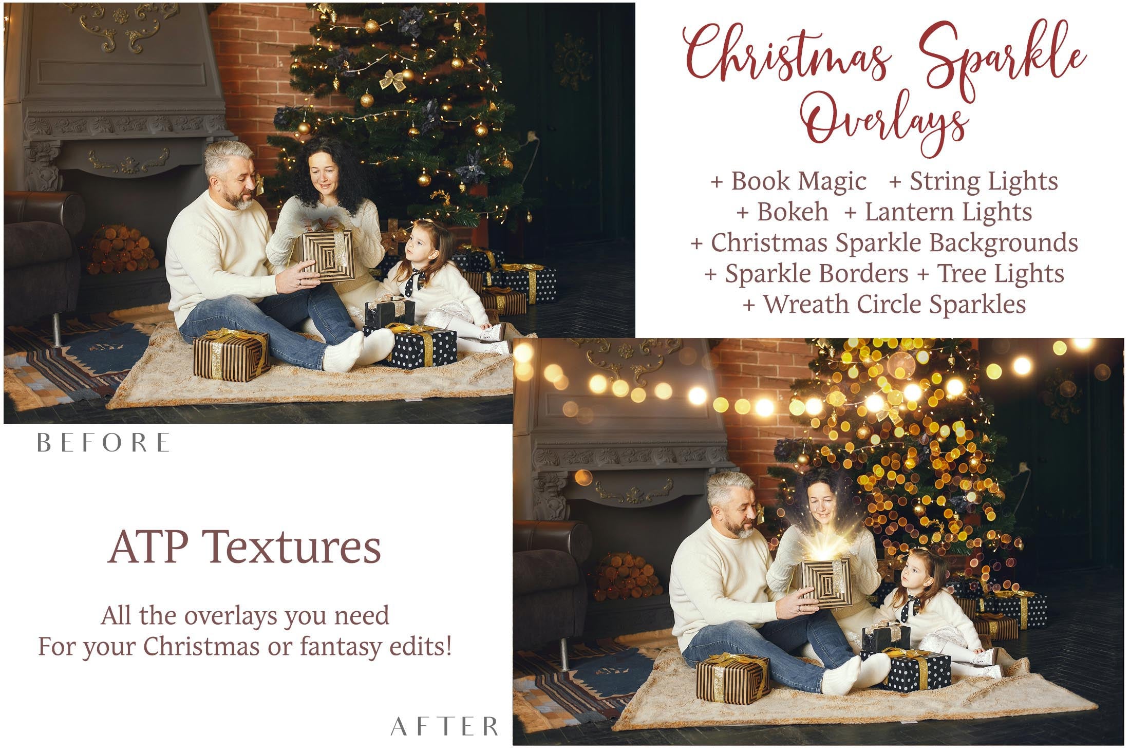 Christmas lights, book magic, fairy bokeh overlays, 300dpi. Photography overlays in High resolution. Perfect for all your Xmas Edits. Find more overlays, textures and Actions in my store. ATP Textures.
