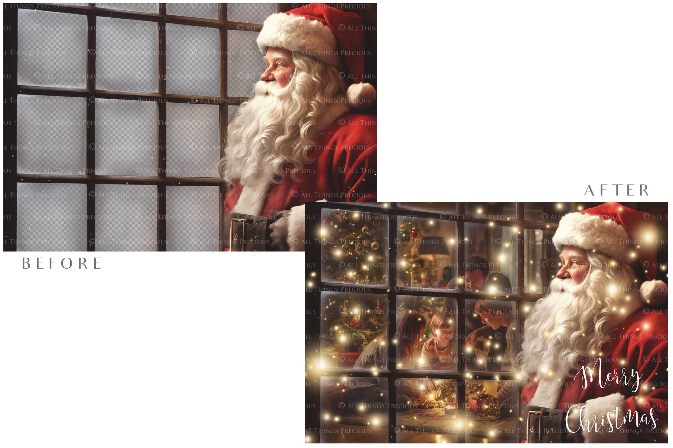 Digital Santa Window Background, with snow flurries and a PSD Template included in the set.