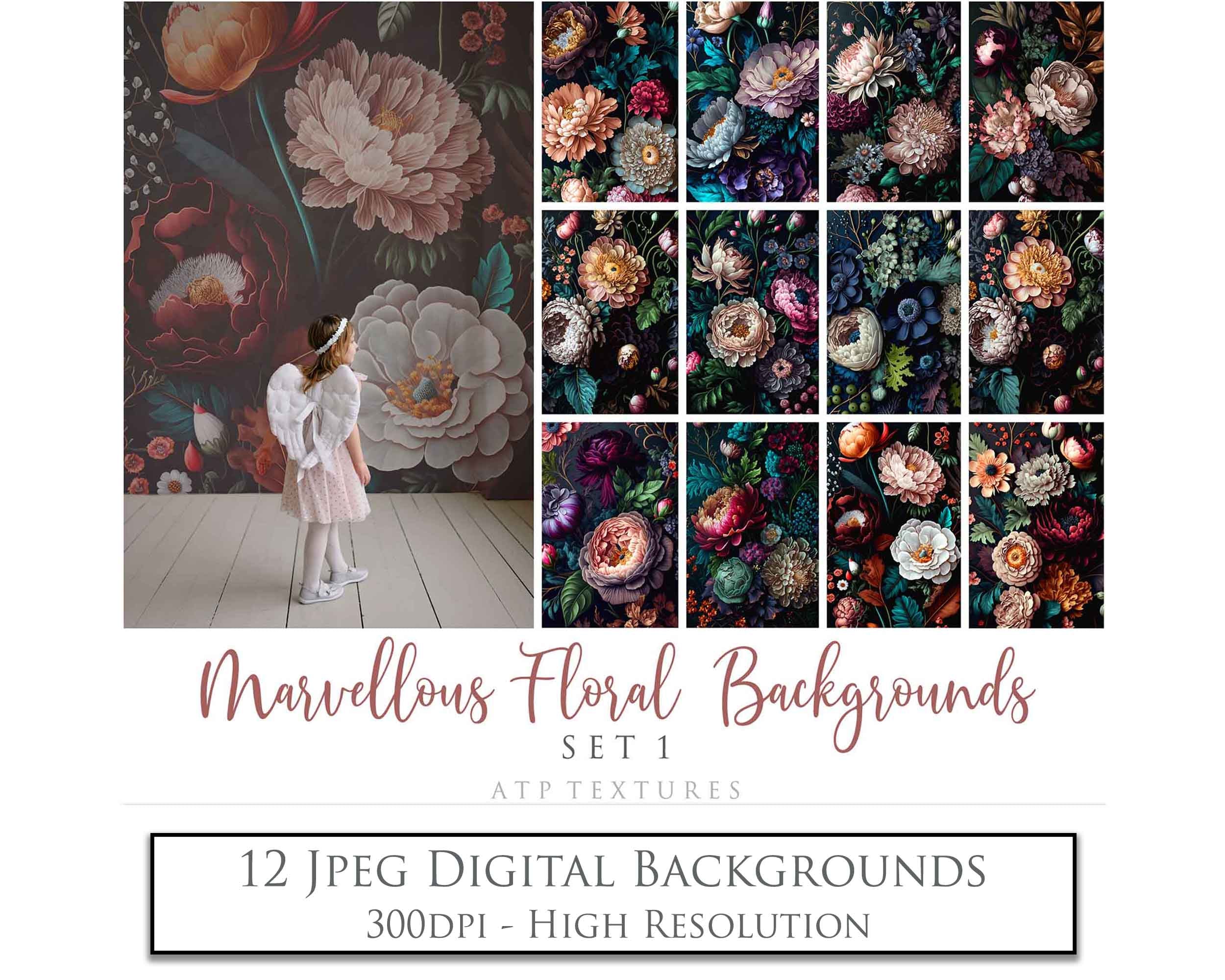 12 MARVELLOUS Floral Backgrounds / DIGITAL BACKDROPS - Set 1