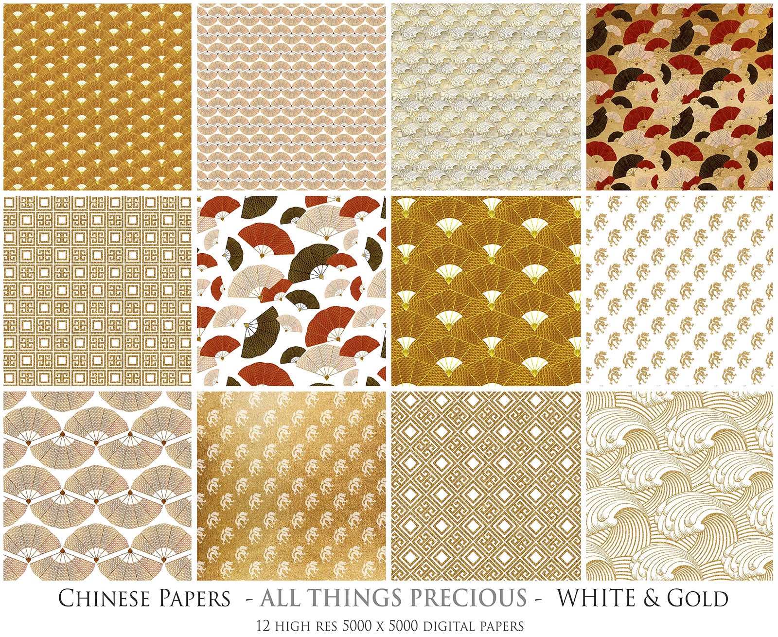 12 Chinese Patterned Digital Scrapbooking Papers.