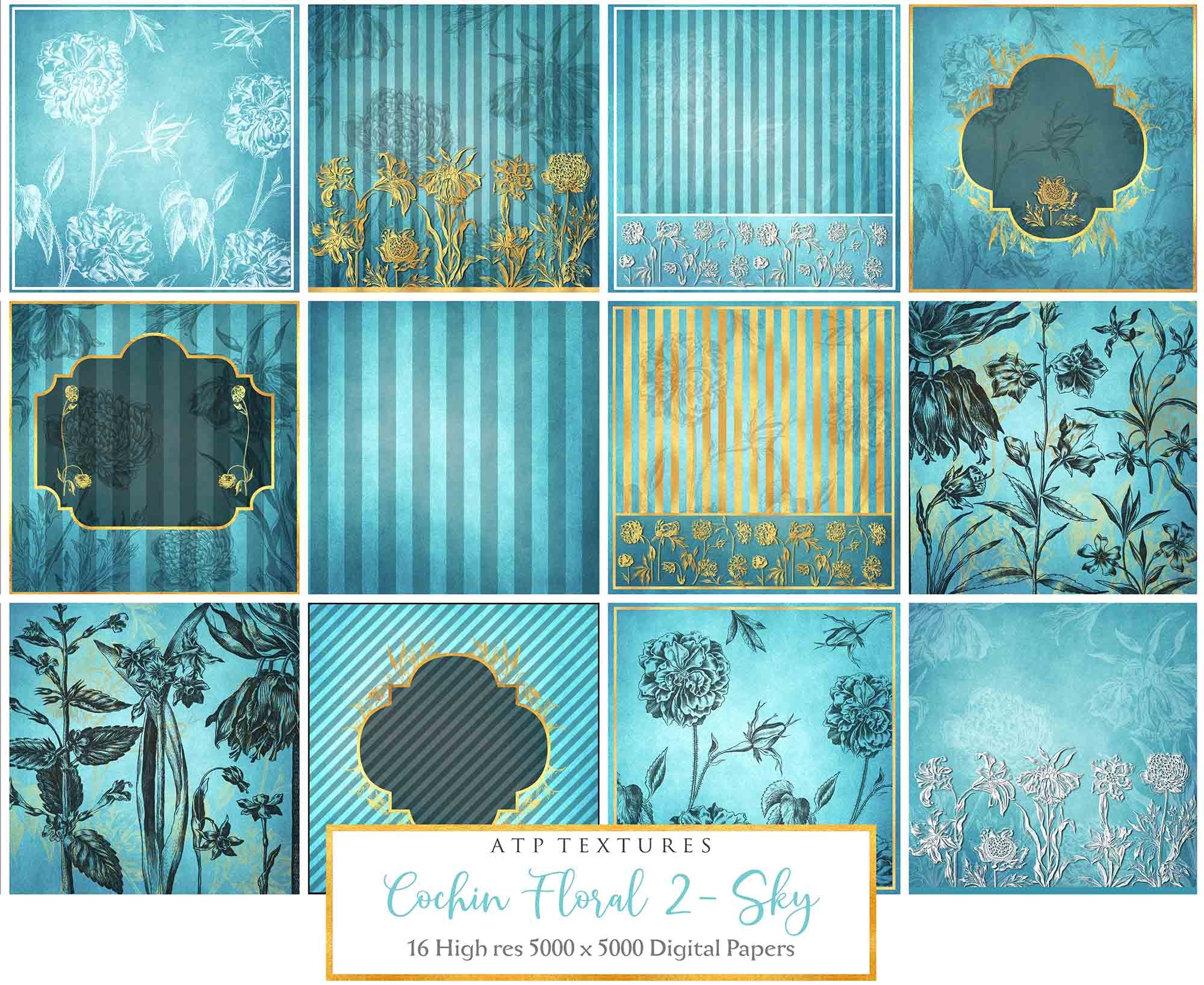 COCHIN FLORAL 2 - SKY - Digital Papers