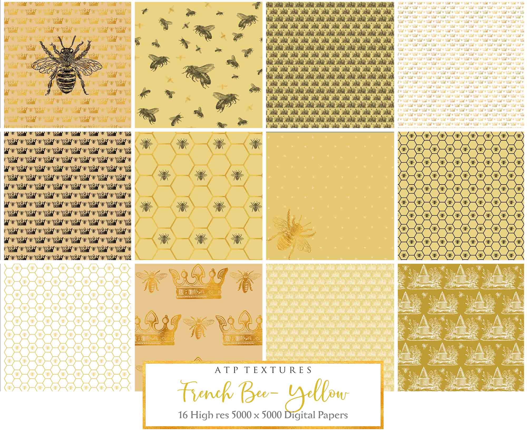 FRENCH BEE Digital Papers - YELLOW