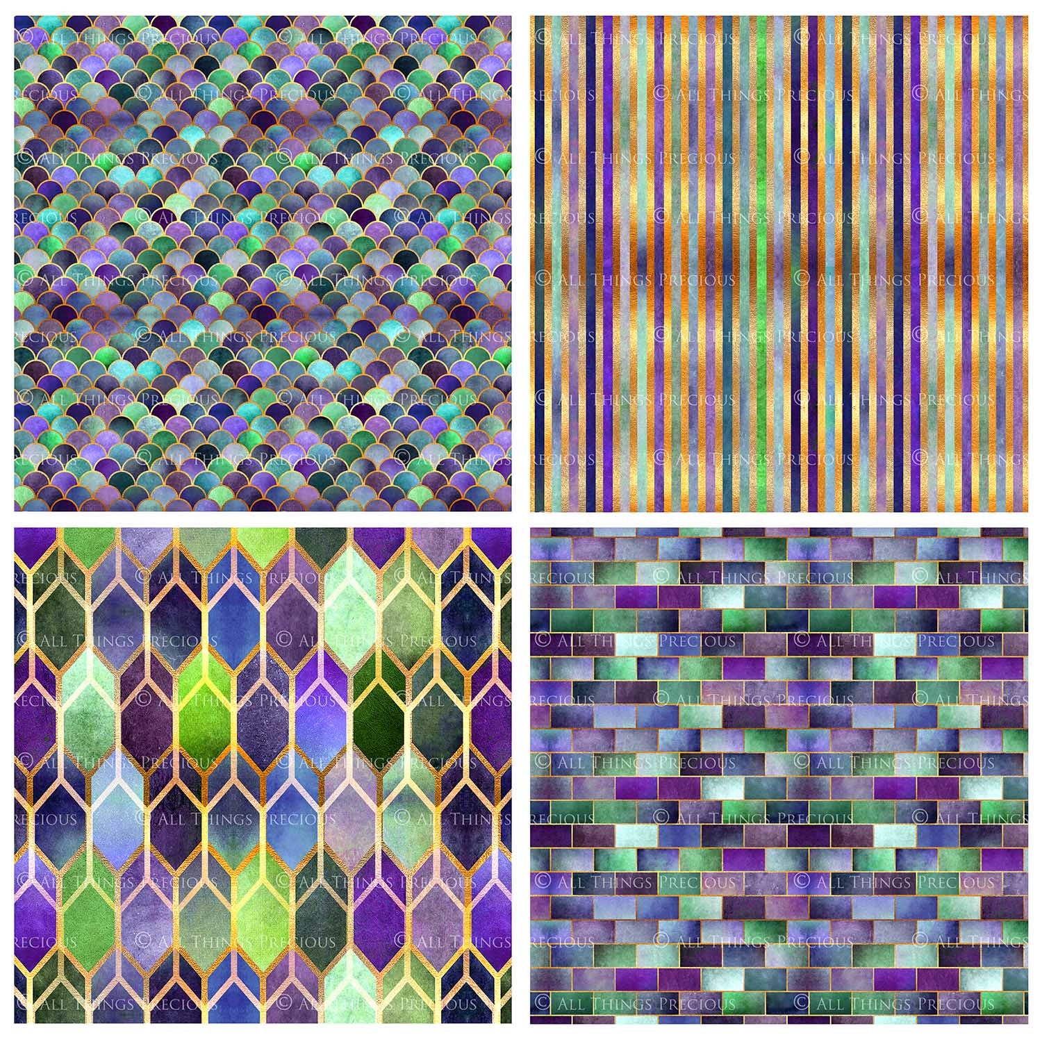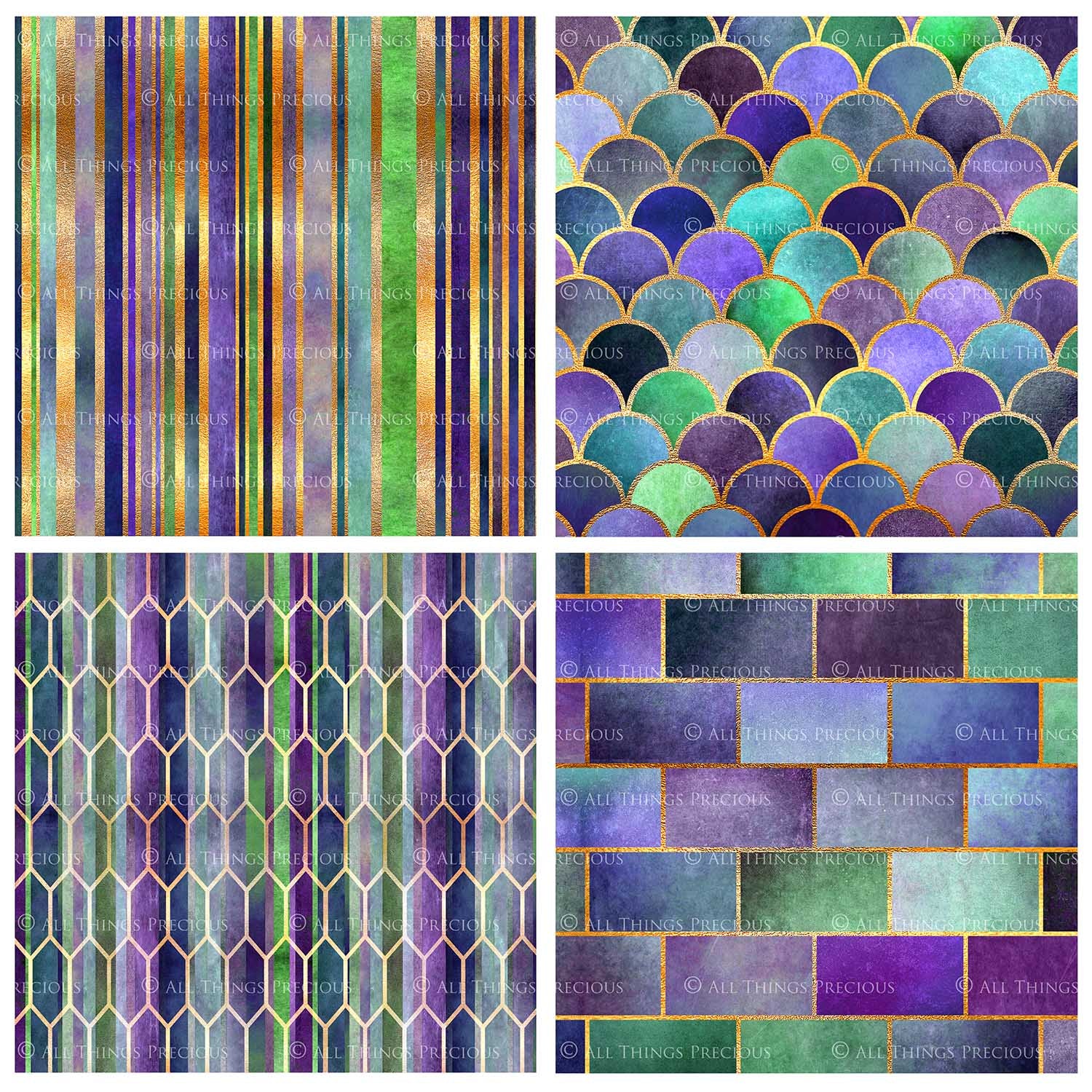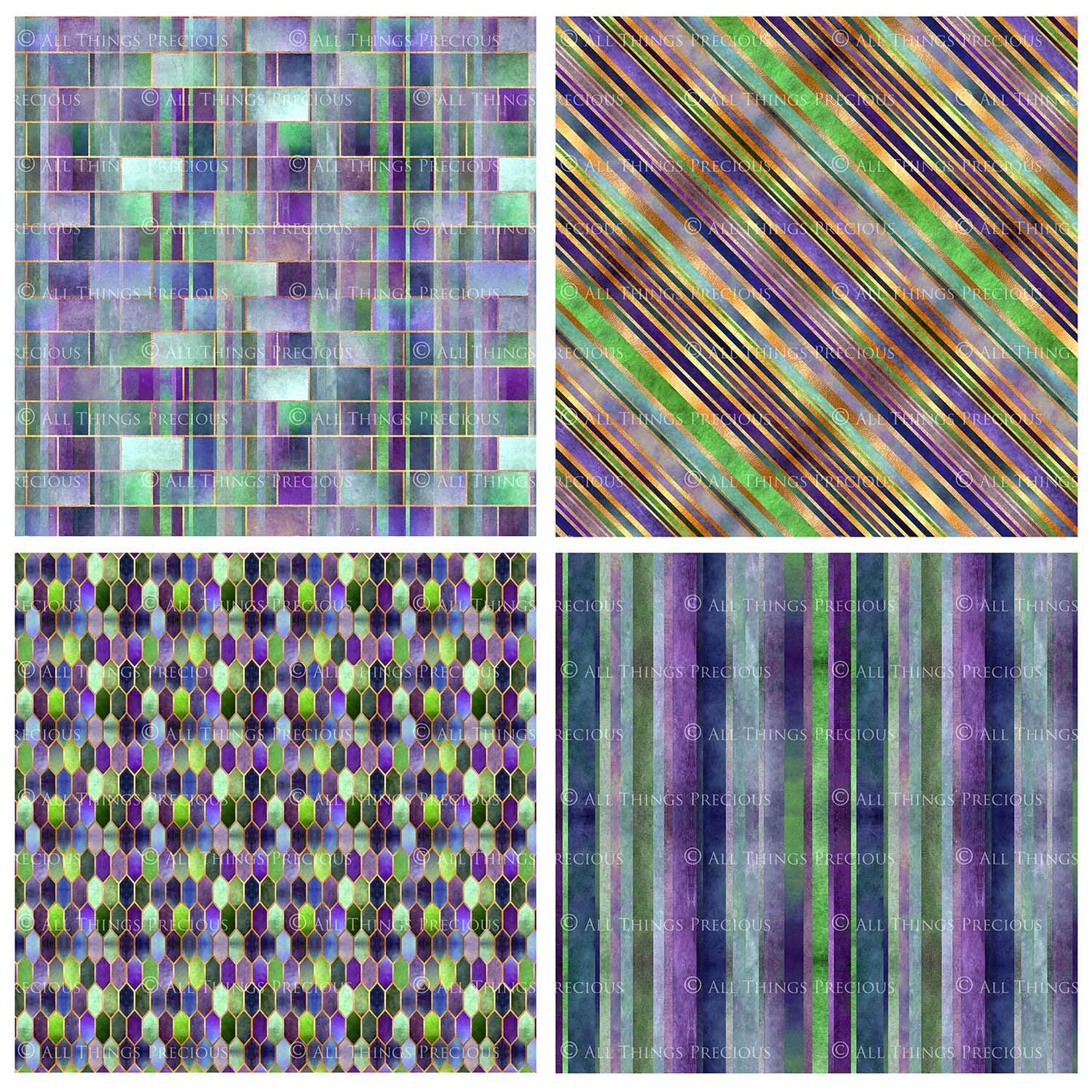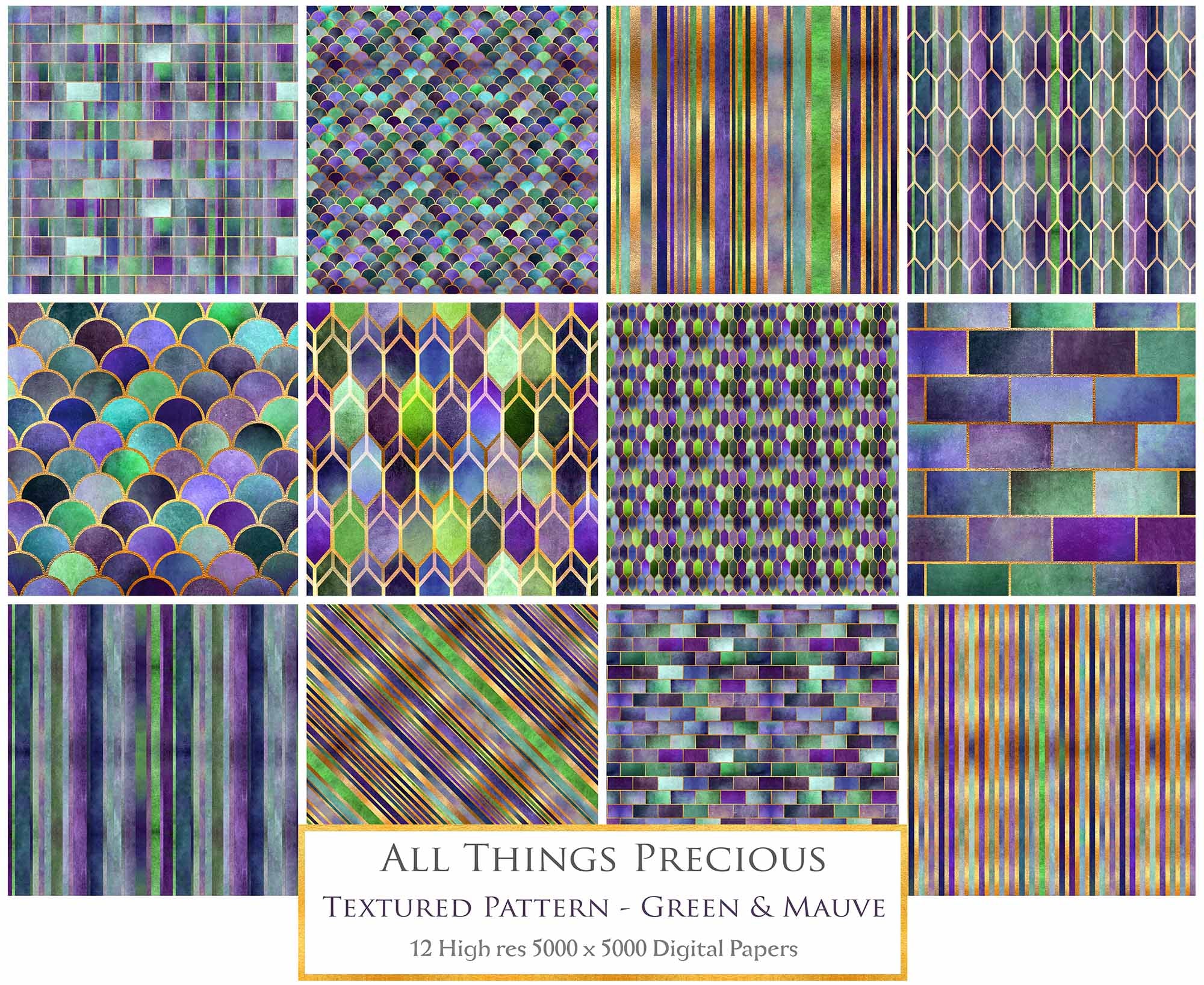 TEXTURED PATTERN - Gold, Green & Mauve - Digital Papers