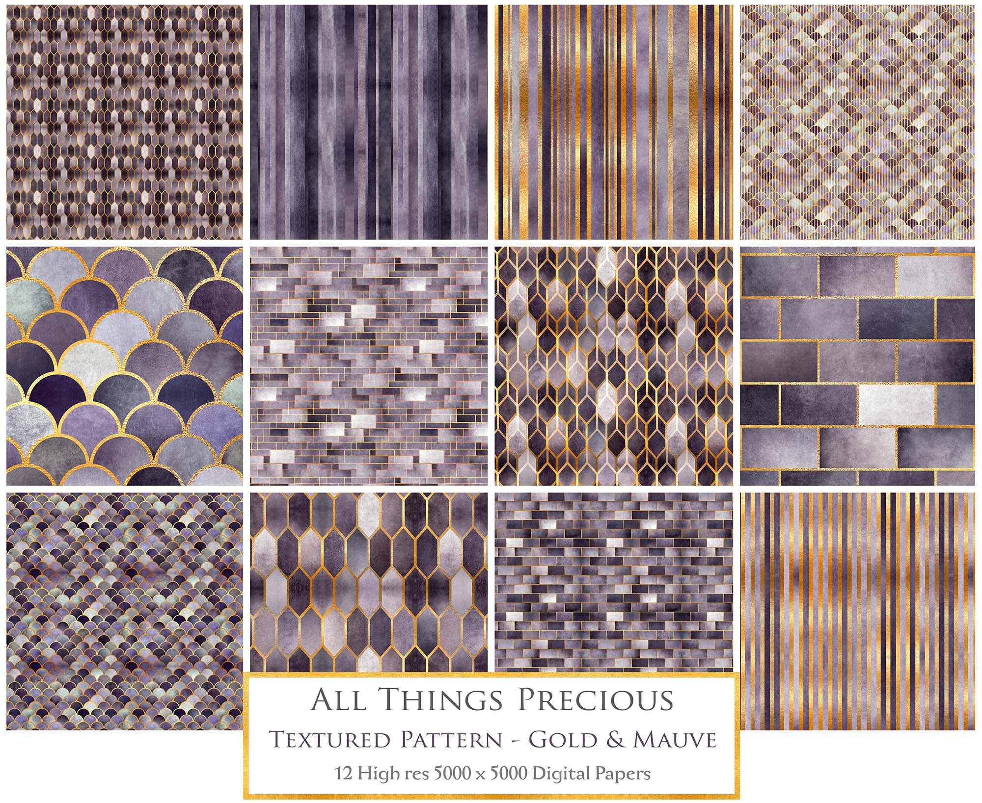 TEXTURED PATTERN Gold & Mauve - Digital Papers