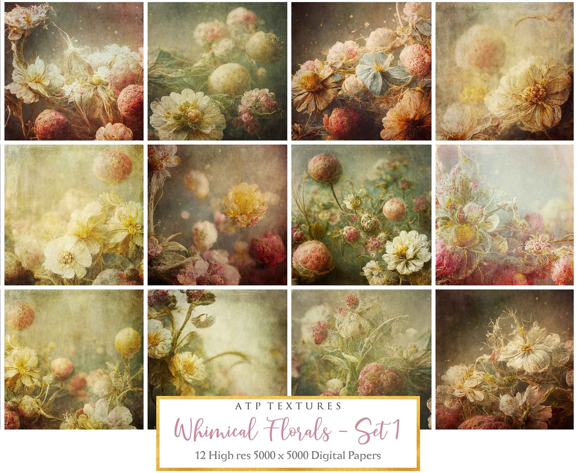 12 Whimsical Floral Digital Scrapbooking Papers.