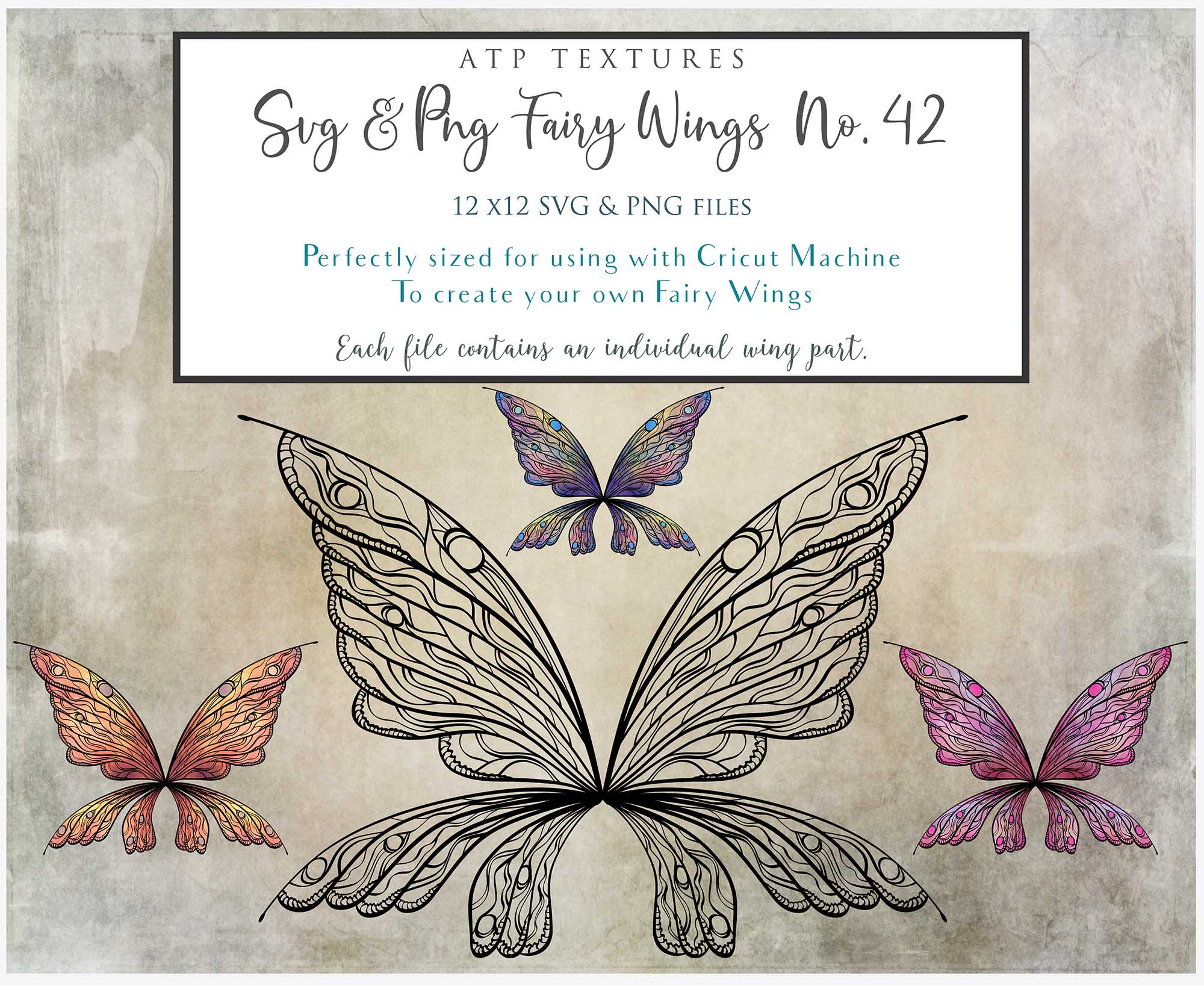 SVG & PNG Fairy/Angel Wing files for Cricut, Silhouette Cameo and other Cutting Machines. Create wearable fairy wings, all sizes. Perfect for Halloween Costumes, Fantasy, Cosplay, Photography. Prints, Wedding, Engagement, Baby Shower invitations, Sublimation Printing, Clip Art and more. Cut and assemble. ATP Textures.