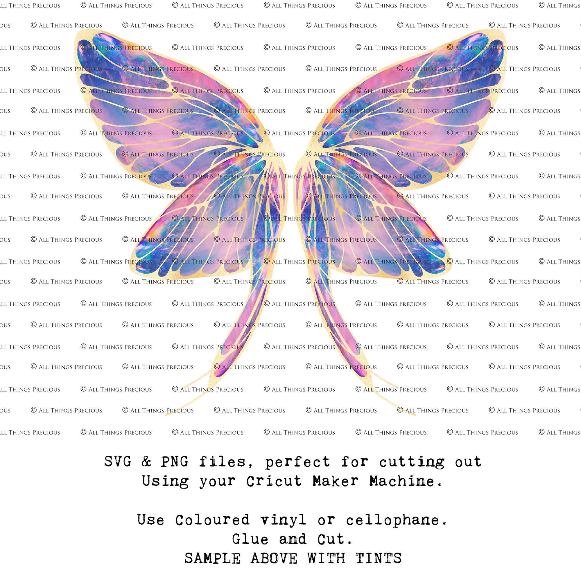 SVG & PNG Fairy/Angel Wing files for Cricut, Silhouette Cameo and other Cutting Machines. Create wearable fairy wings, all sizes. Perfect for Halloween Costumes, Fantasy, Cosplay, Photography. Prints, Wedding, Engagement, Baby Shower invitations, Sublimation Printing, Clip Art and more. Cut and assemble. ATP Textures.