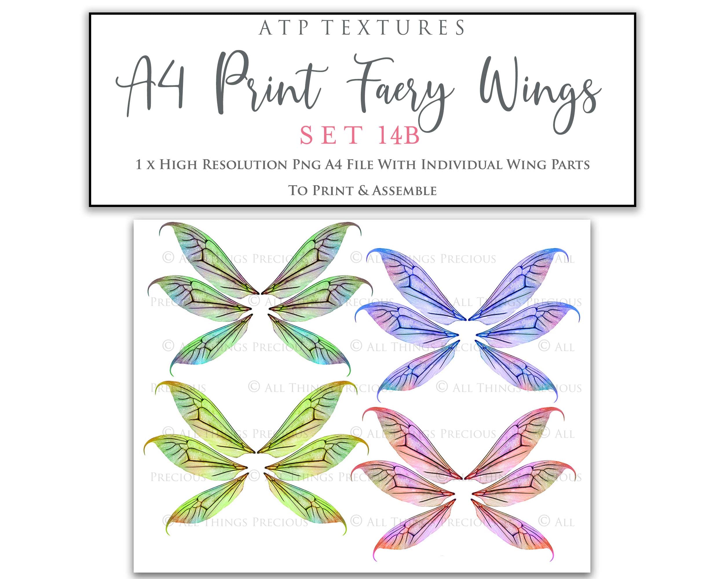 A4 PRINT FAIRY WINGS Set 14B - Printable Wings