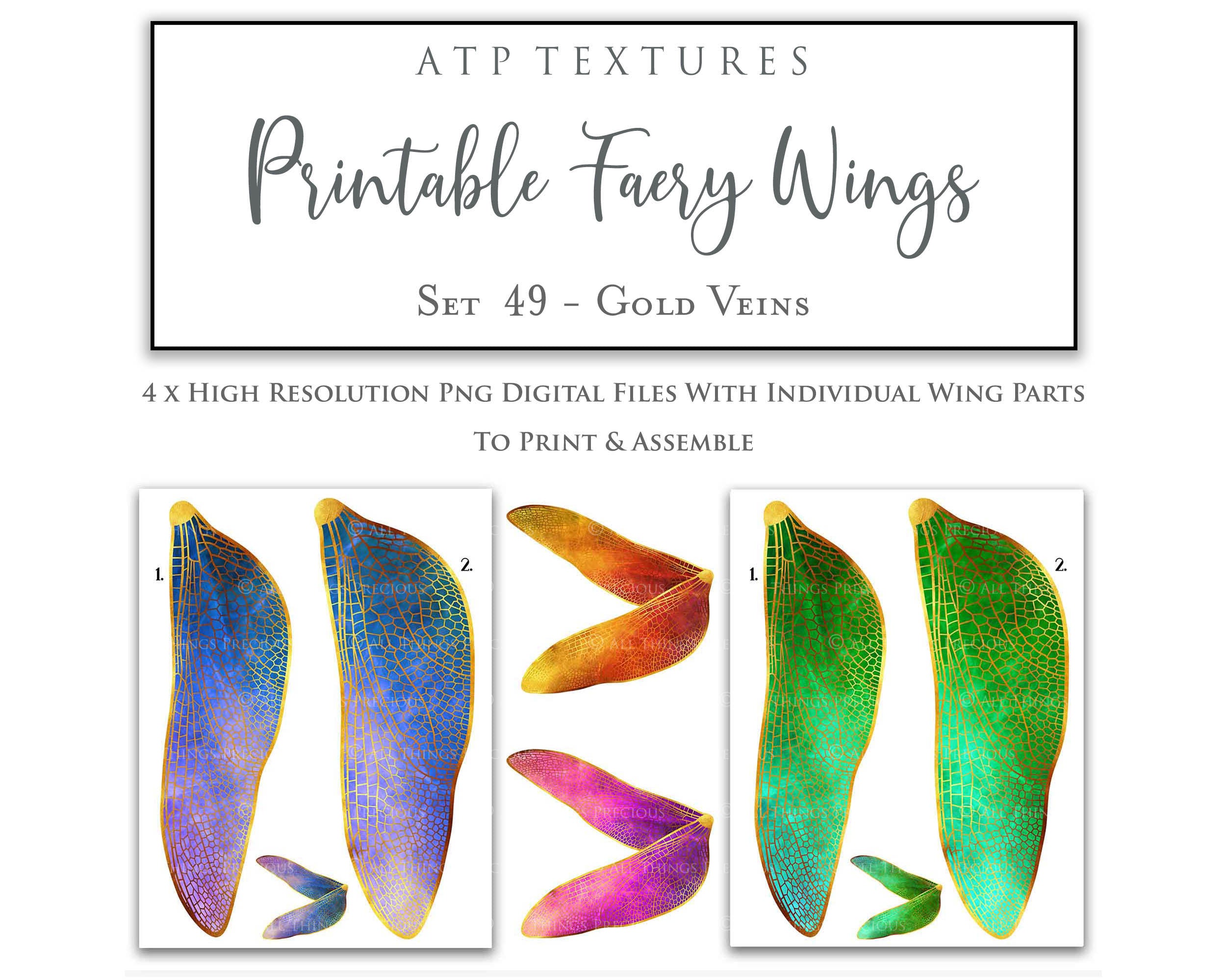 PRINTABLE FAIRY WINGS - Set 49 - Gold