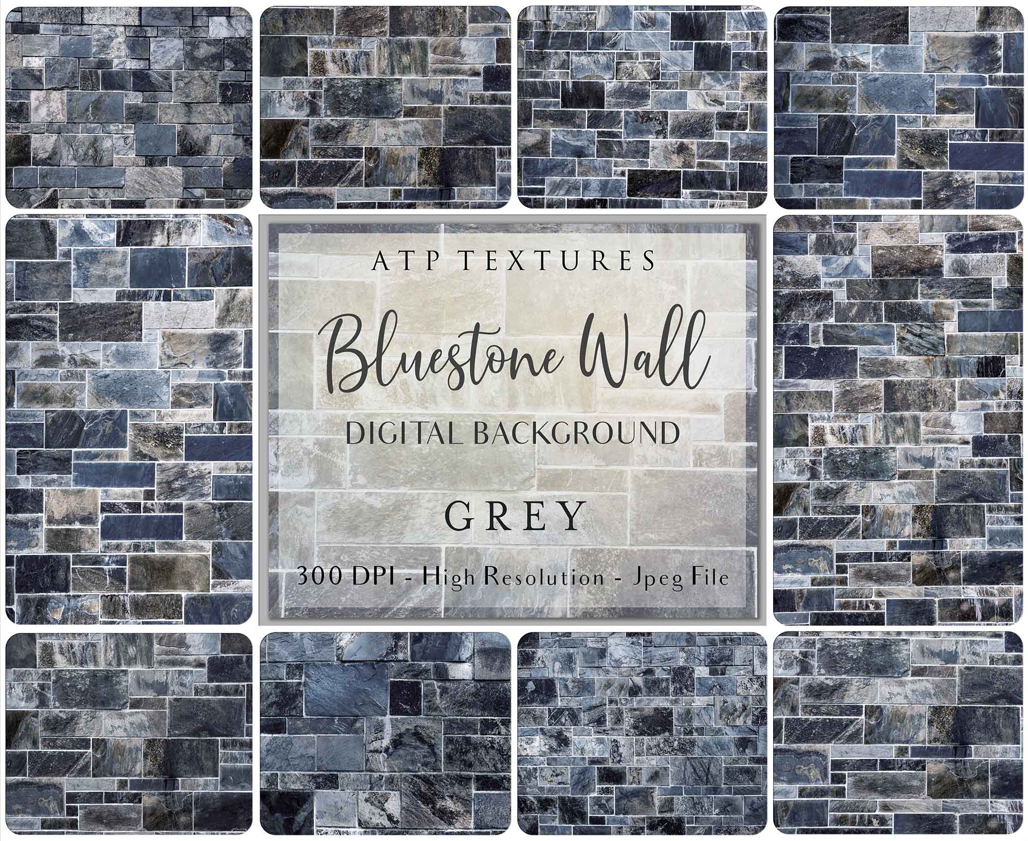 These are photographs of a real bluestone wall. You will find texture and flaws in the images, as you would in real stone.