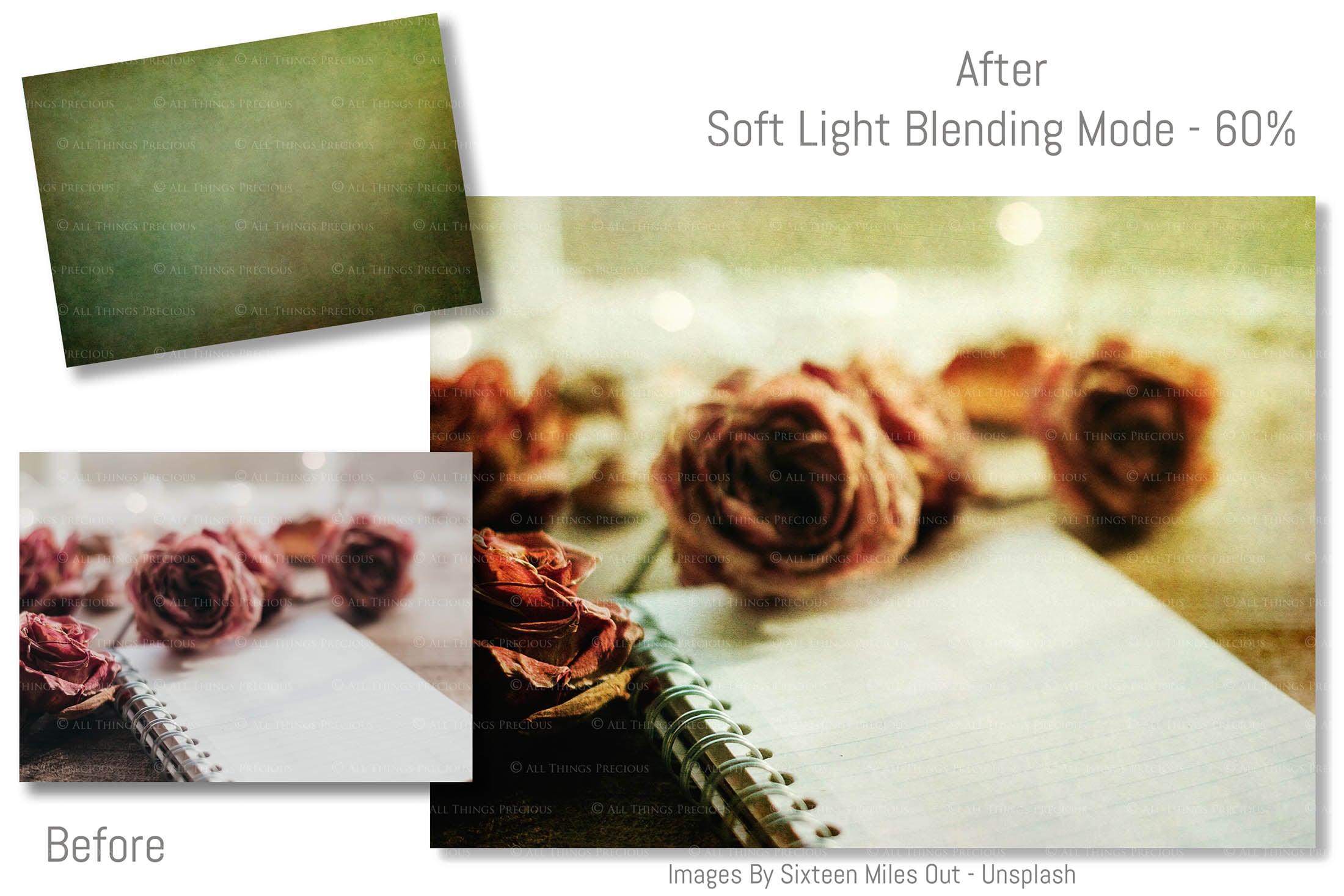 + You can incorporate the textures for sale in your photography as a textured overlay, in a flattened state, without a commercial licence. You will need to add a link to ATP Textures with your listing when selling your work on the internet, eg. Etsy or Creative Market. If you are a professional photographer supplying a finished, printed photograph to clients, you DO NOT have to credit ATP Textures.