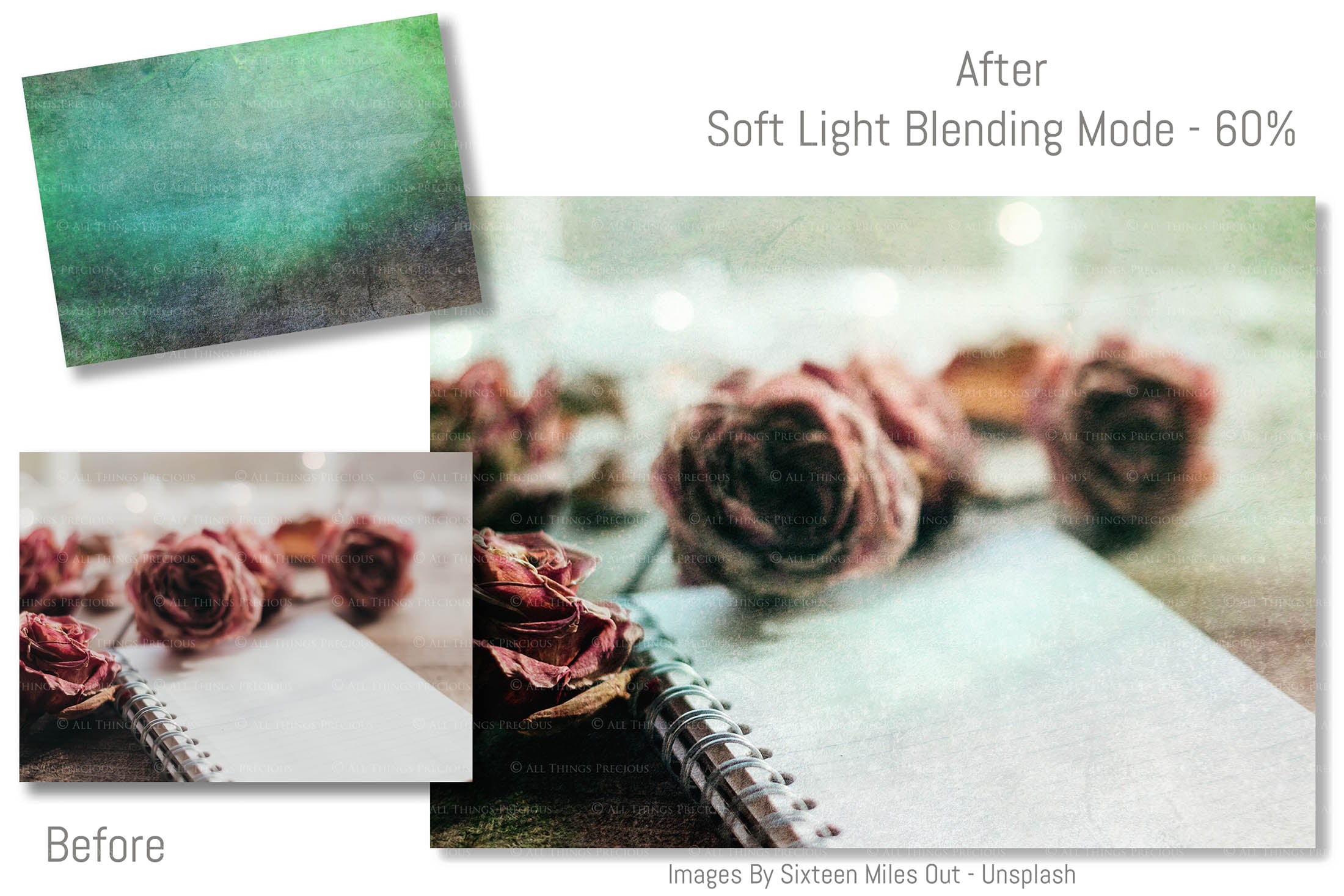 + You can incorporate the textures for sale in your photography as a textured overlay, in a flattened state, without a commercial licence. You will need to add a link to ATP Textures with your listing when selling your work on the internet, eg. Etsy or Creative Market. If you are a professional photographer supplying a finished, printed photograph to clients, you DO NOT have to credit ATP Textures.