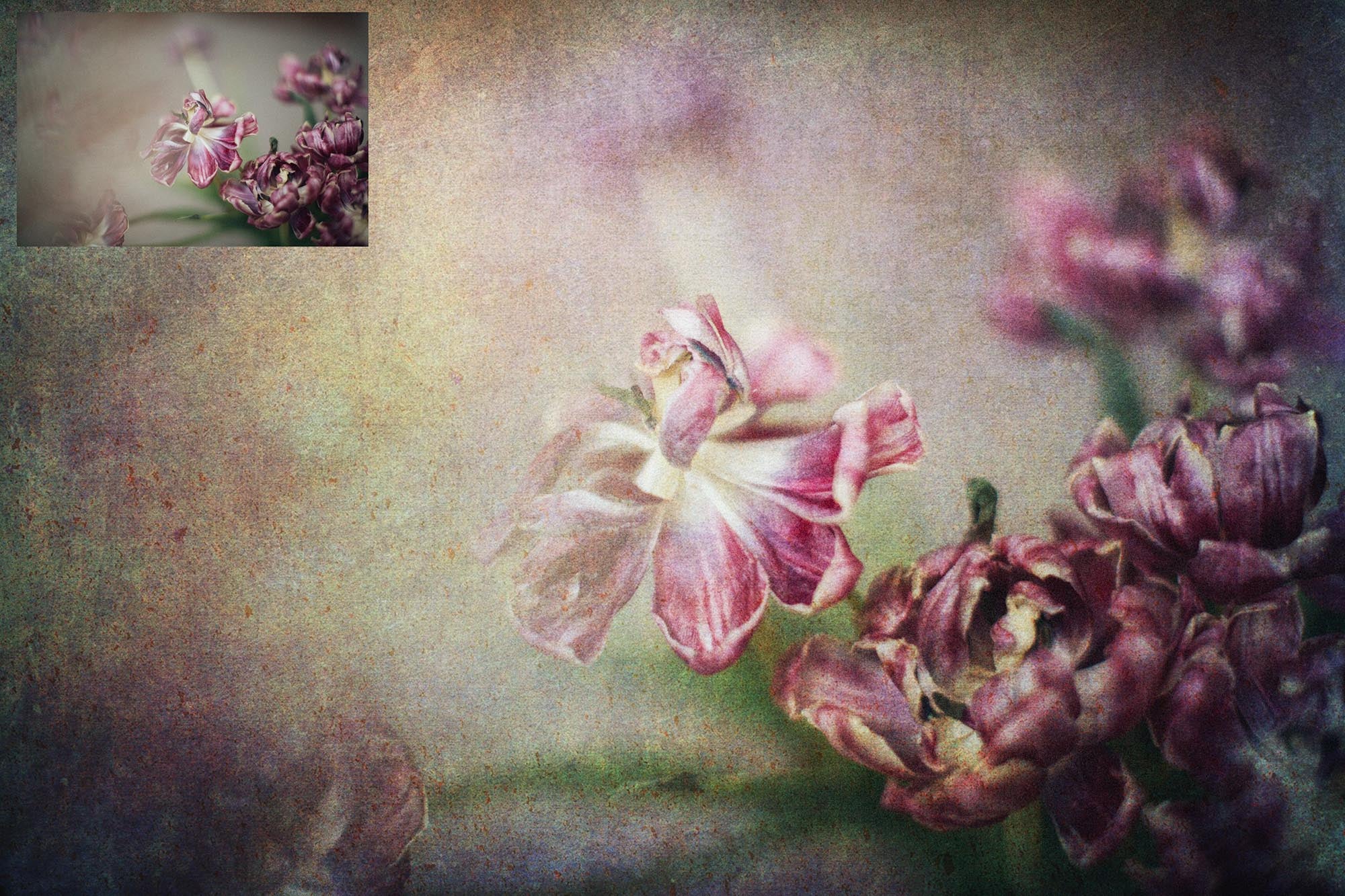 + You can incorporate the textures for sale in your photography as a textured overlay, in a flattened state, without a commercial licence. You will need to add a link to ATP Textures with your listing when selling your work on the internet, eg. Etsy or Creative Market. If you are a professional photographer supplying a finished, printed photograph to clients, you DO NOT have to credit ATP Textures.