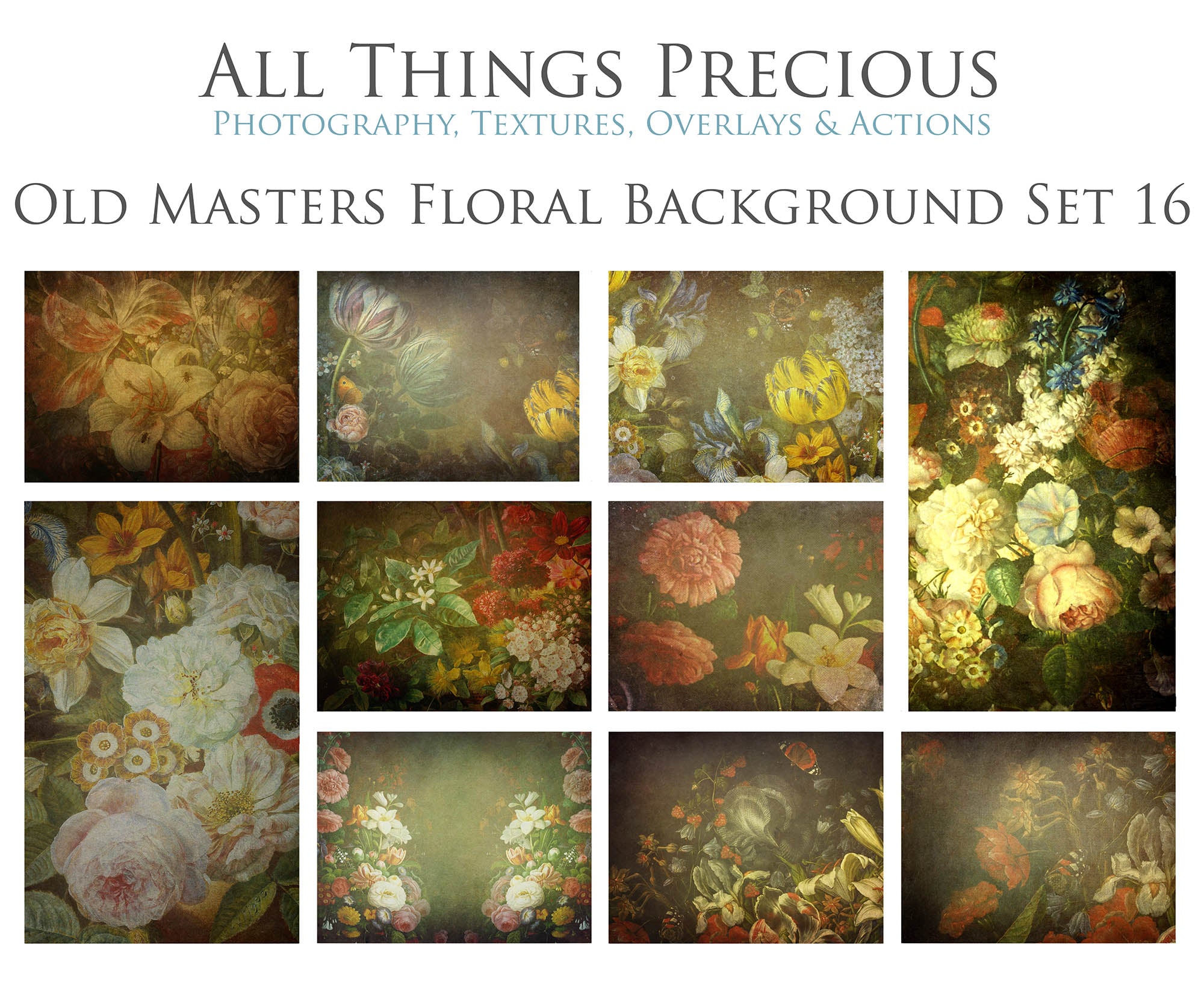 10 OLD MASTERS Floral Background TEXTURES / DIGITAL BACKDROPS - Set 16
