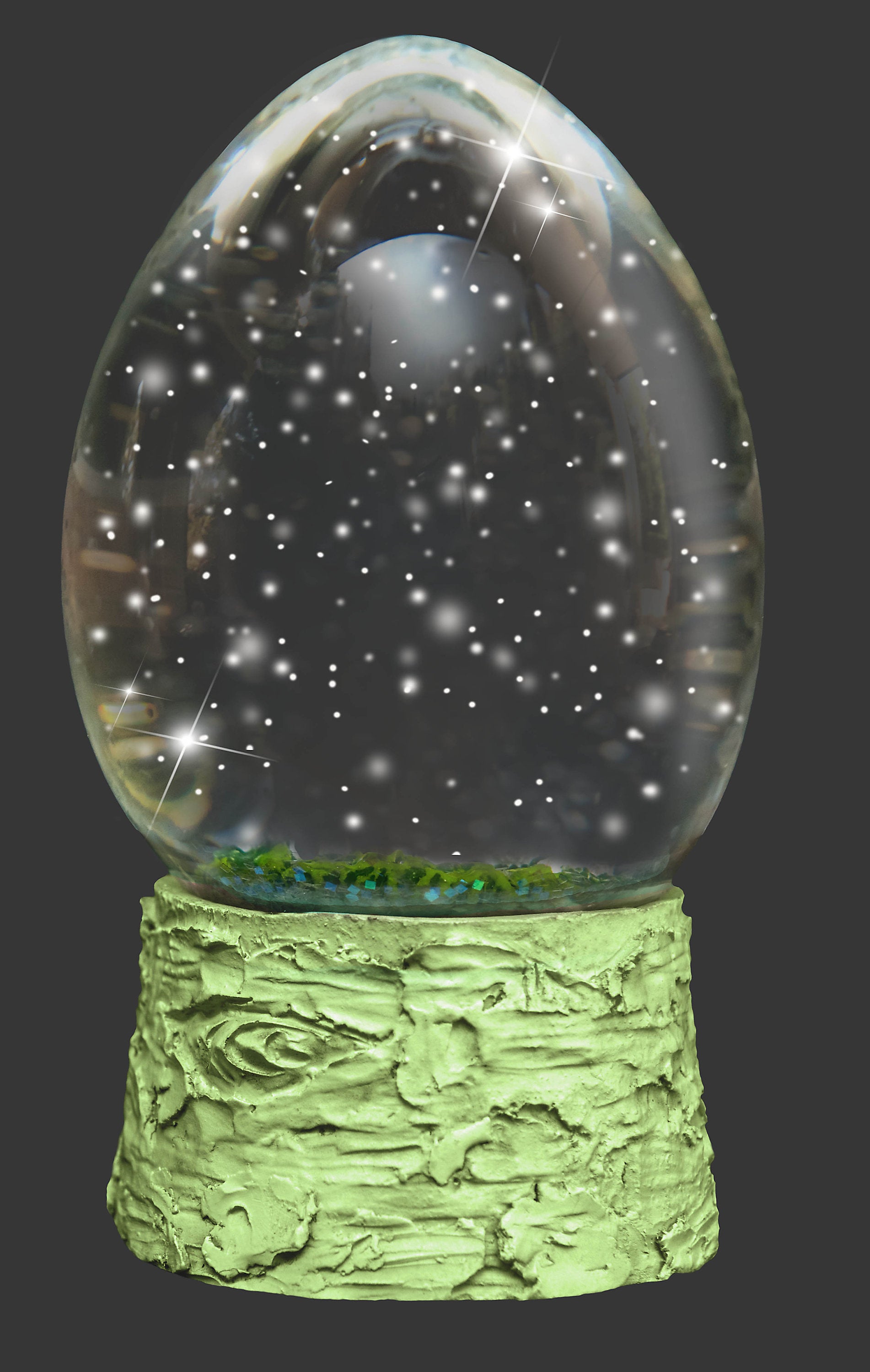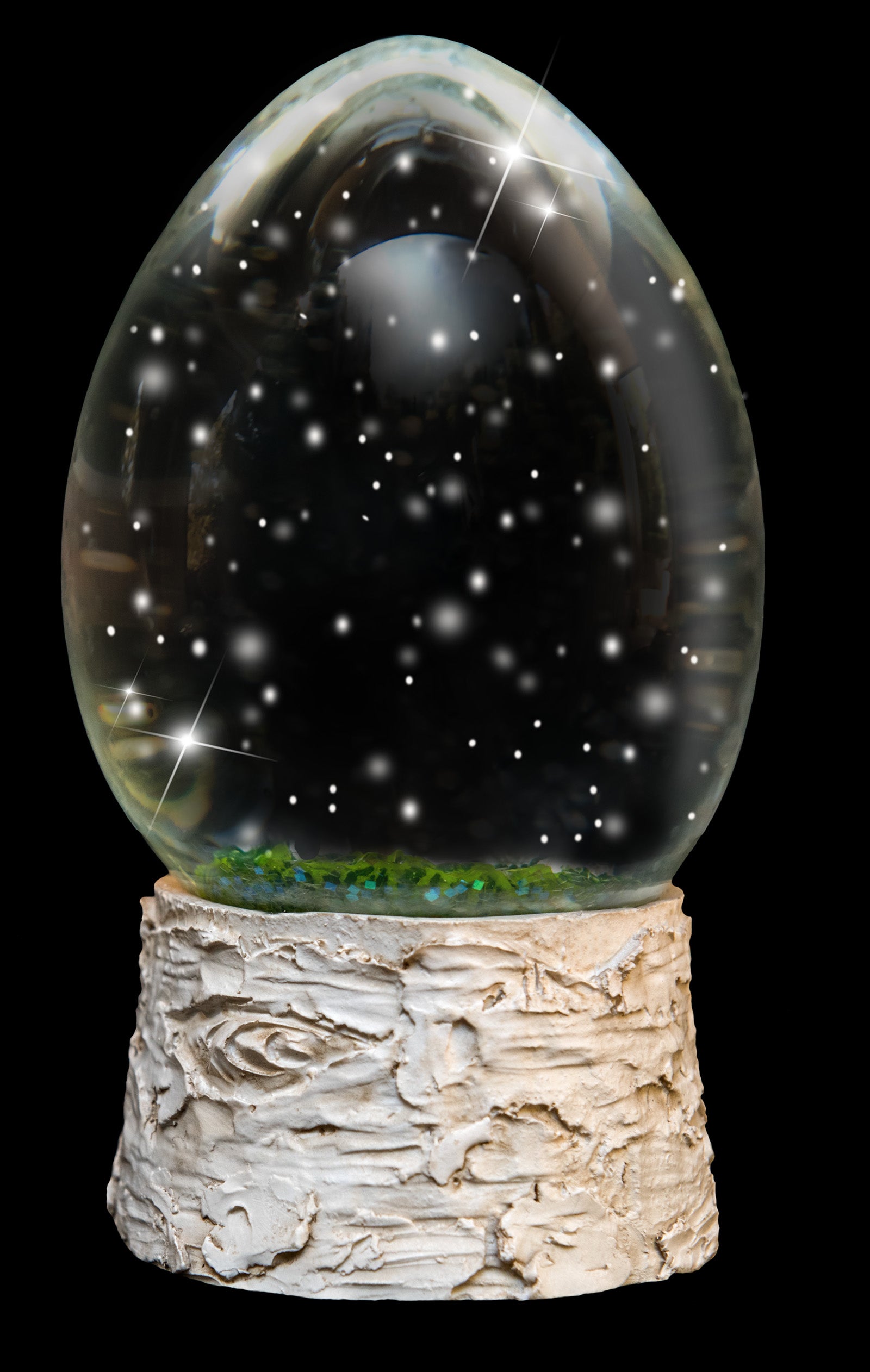 The globe is transparent, perfect for you to add your own images and retain the snow globe effect.