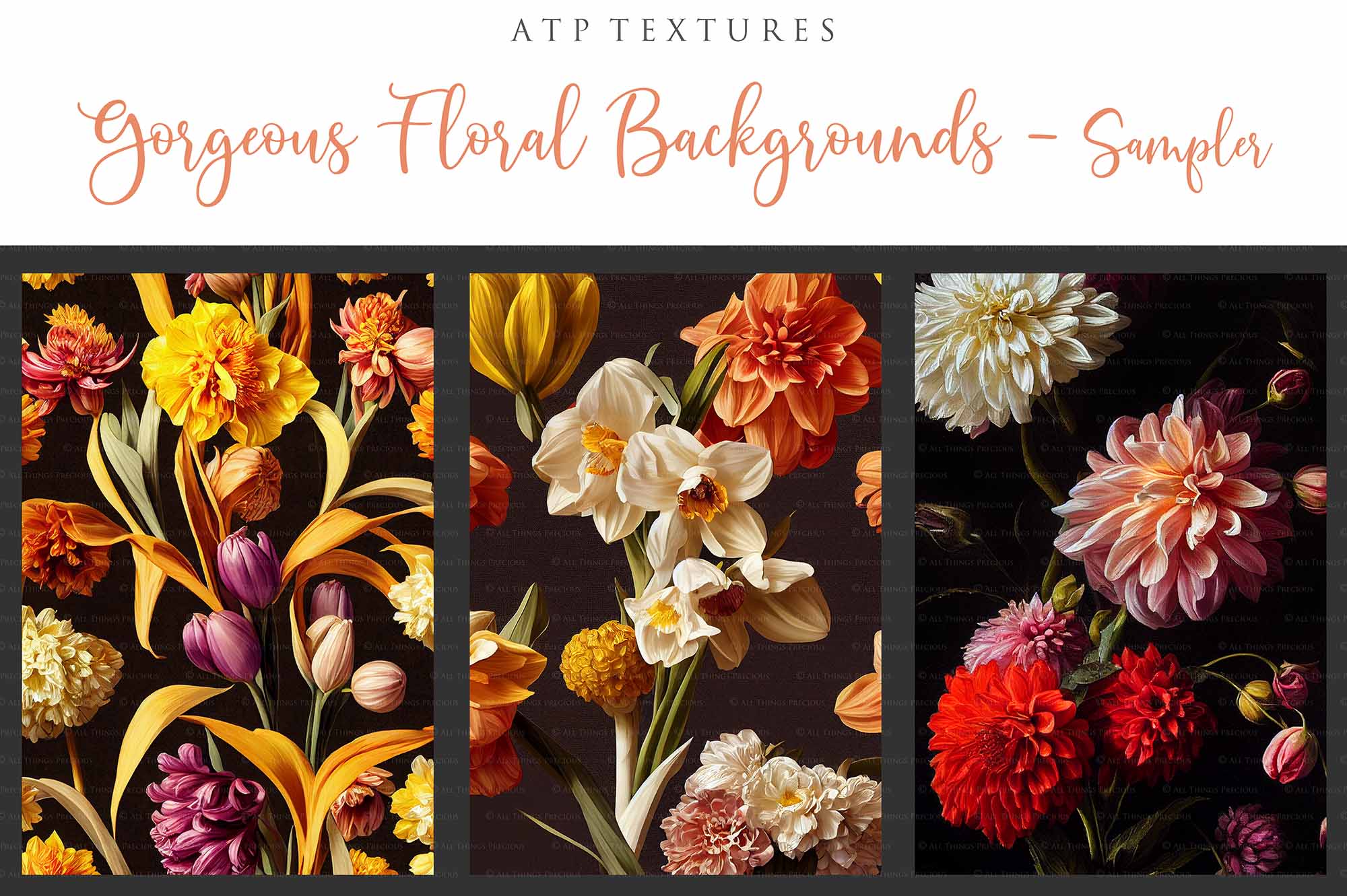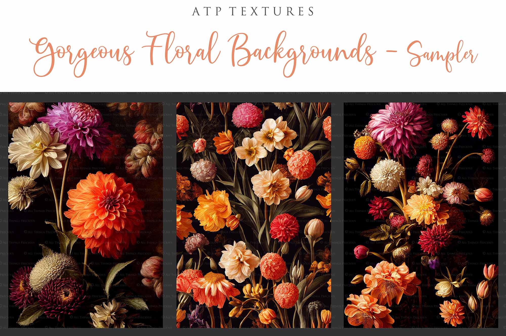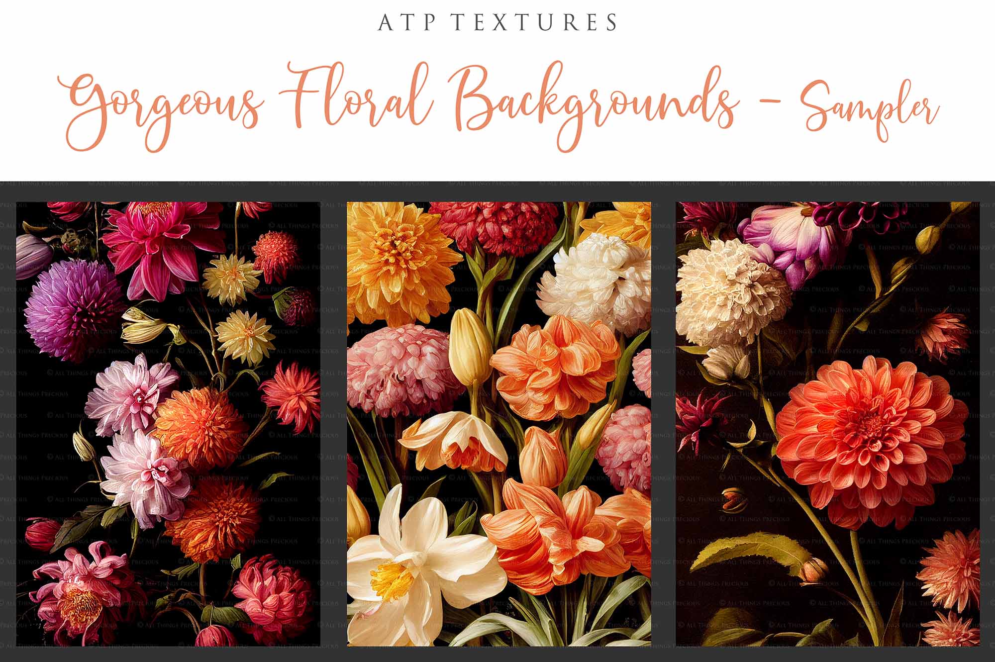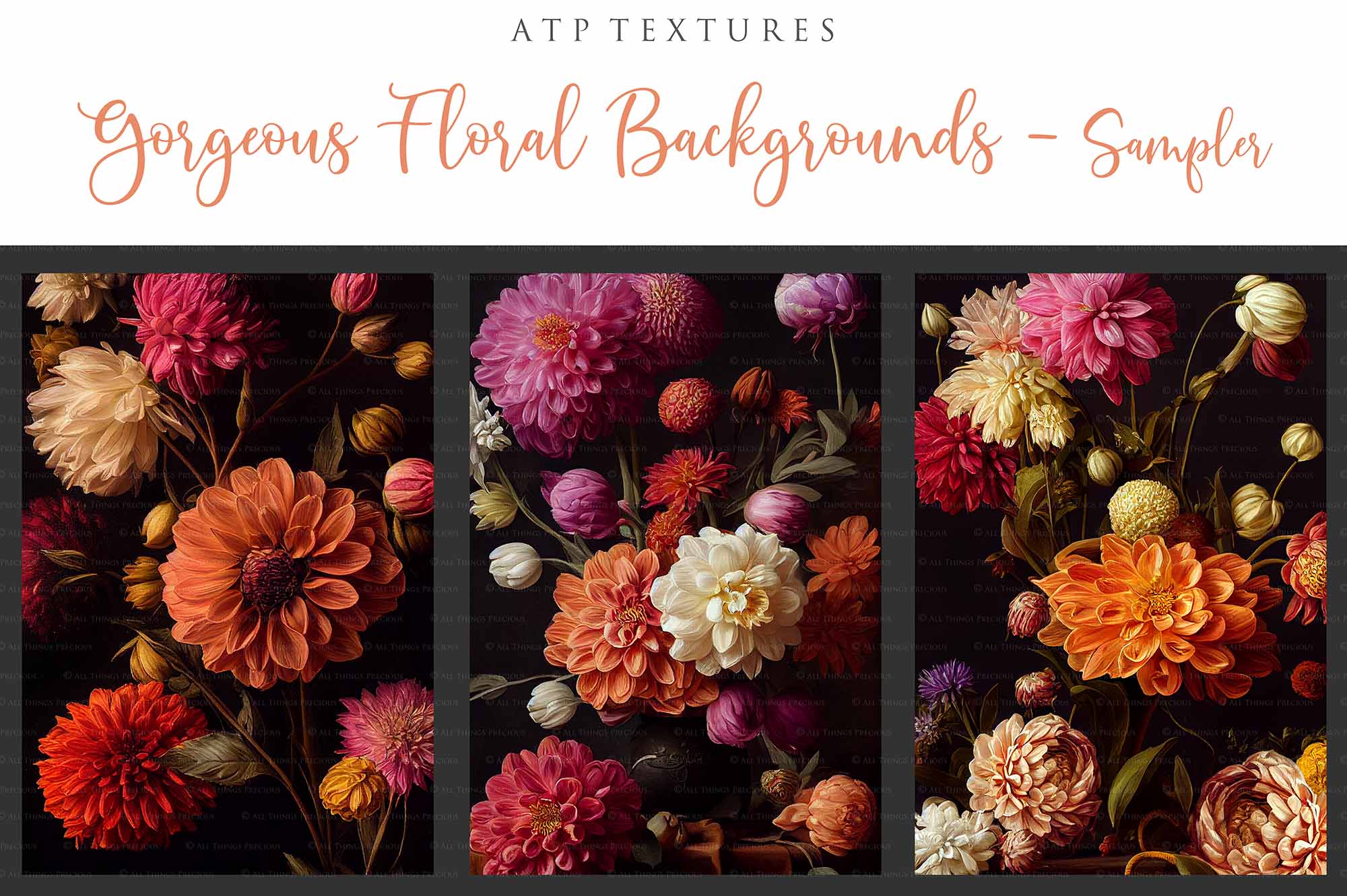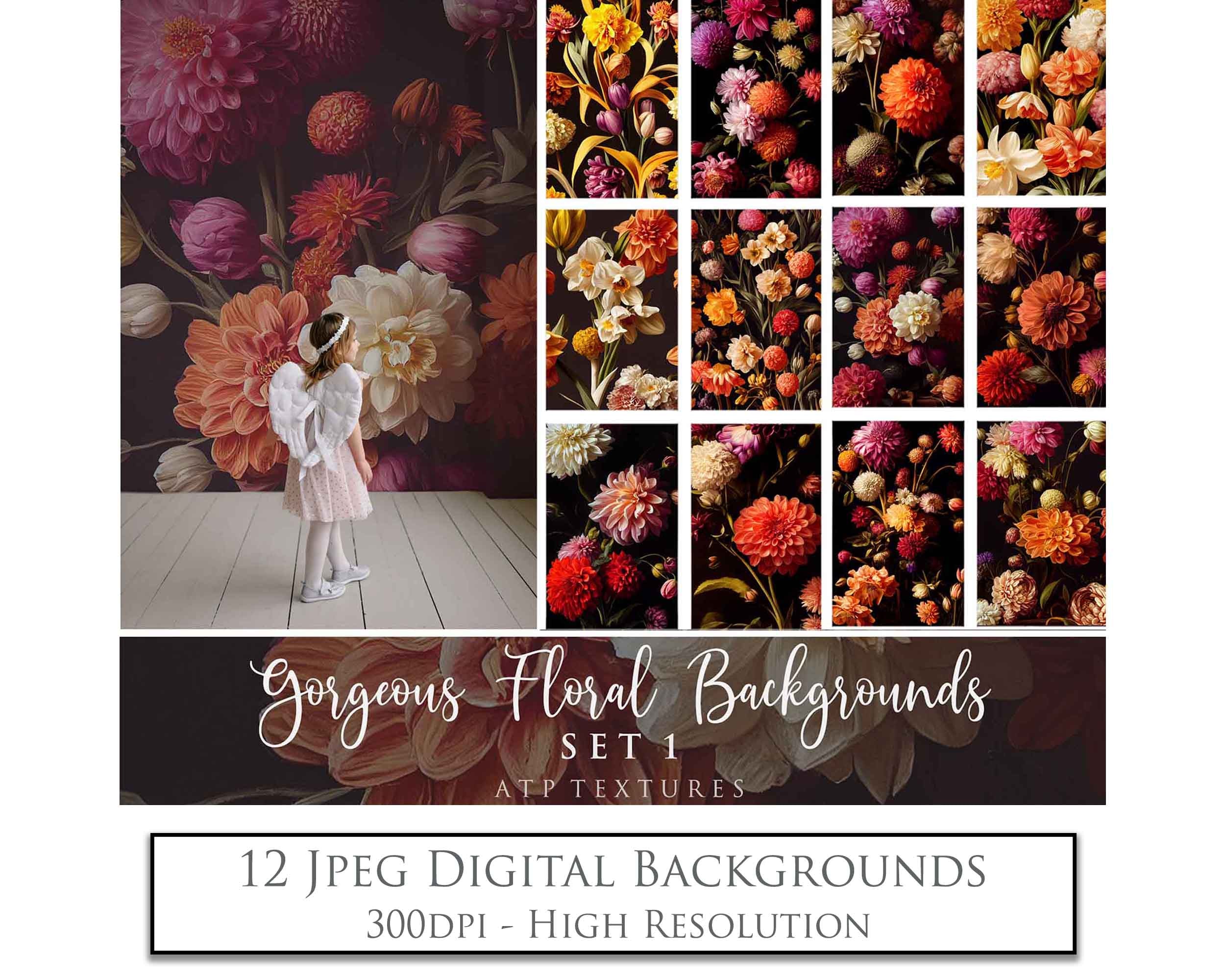12 GORGEOUS PAINTED Floral Background TEXTURES / DIGITAL BACKDROPS - Set 1