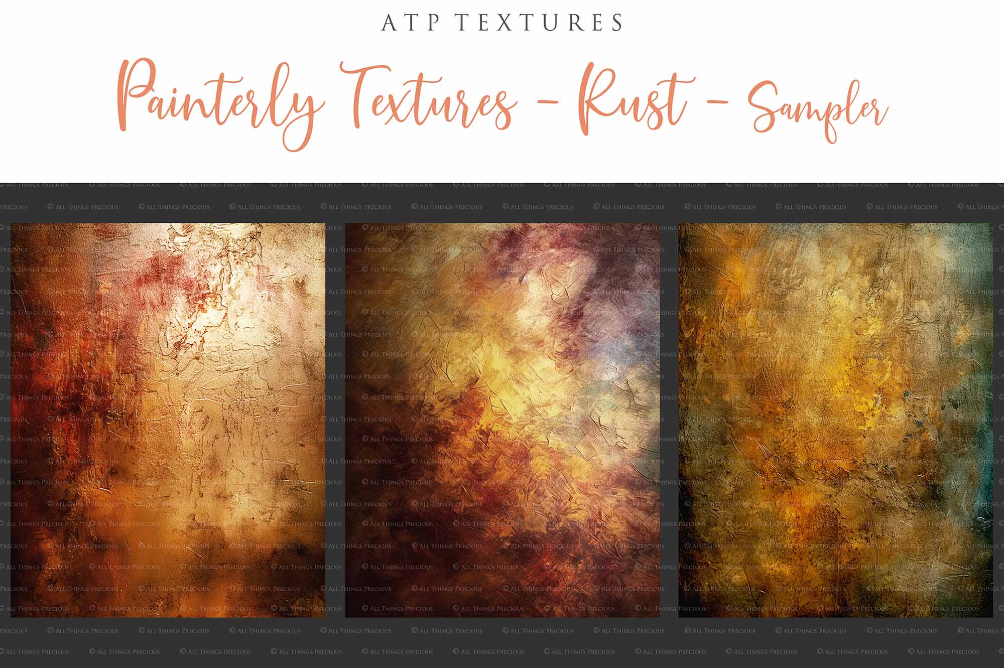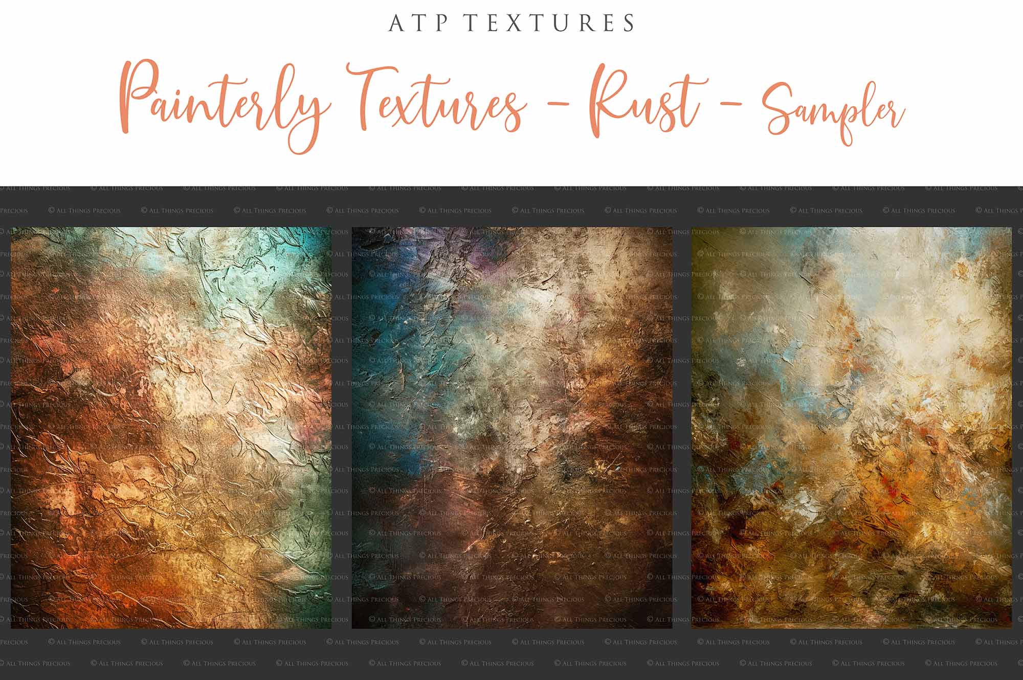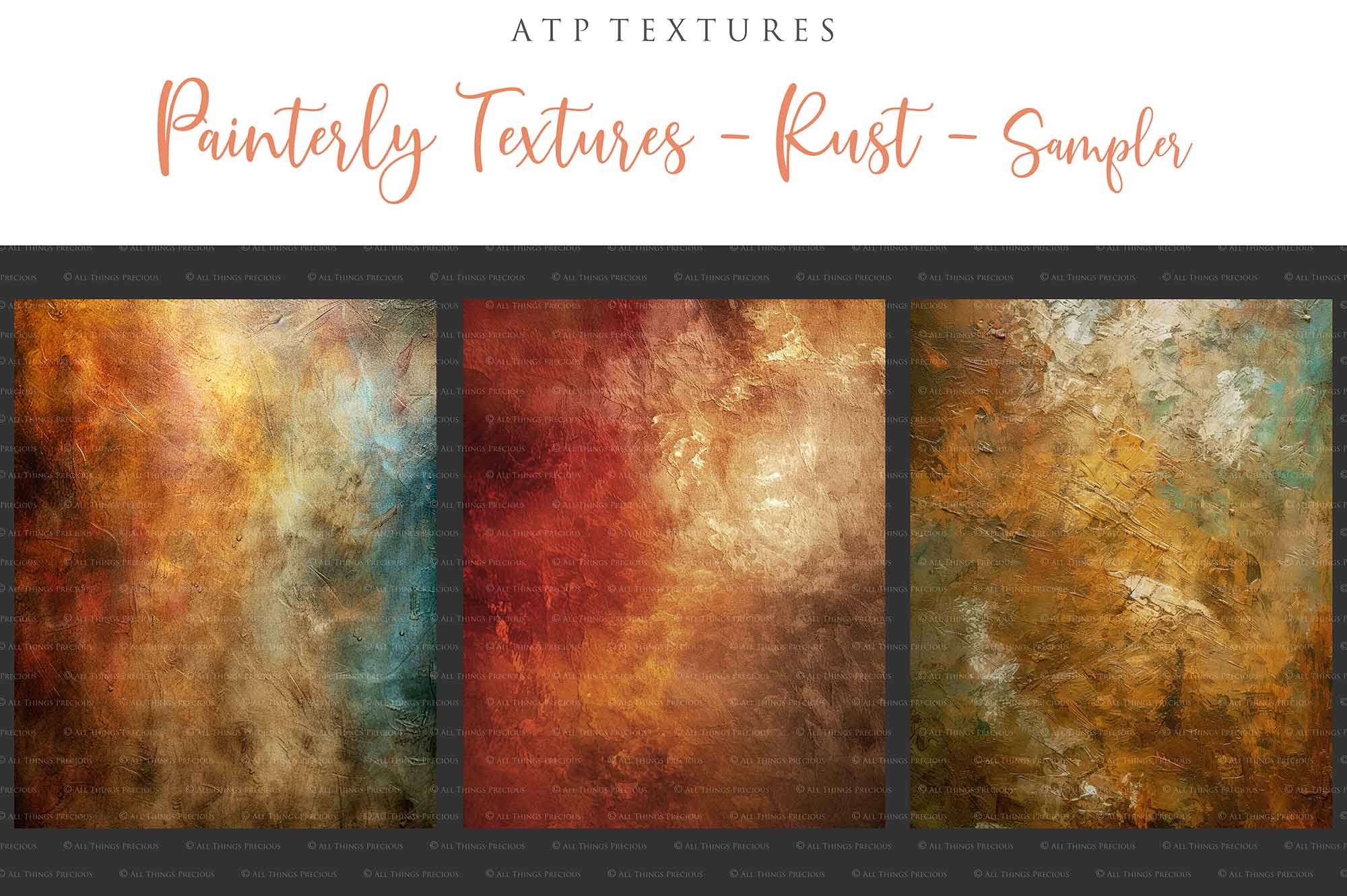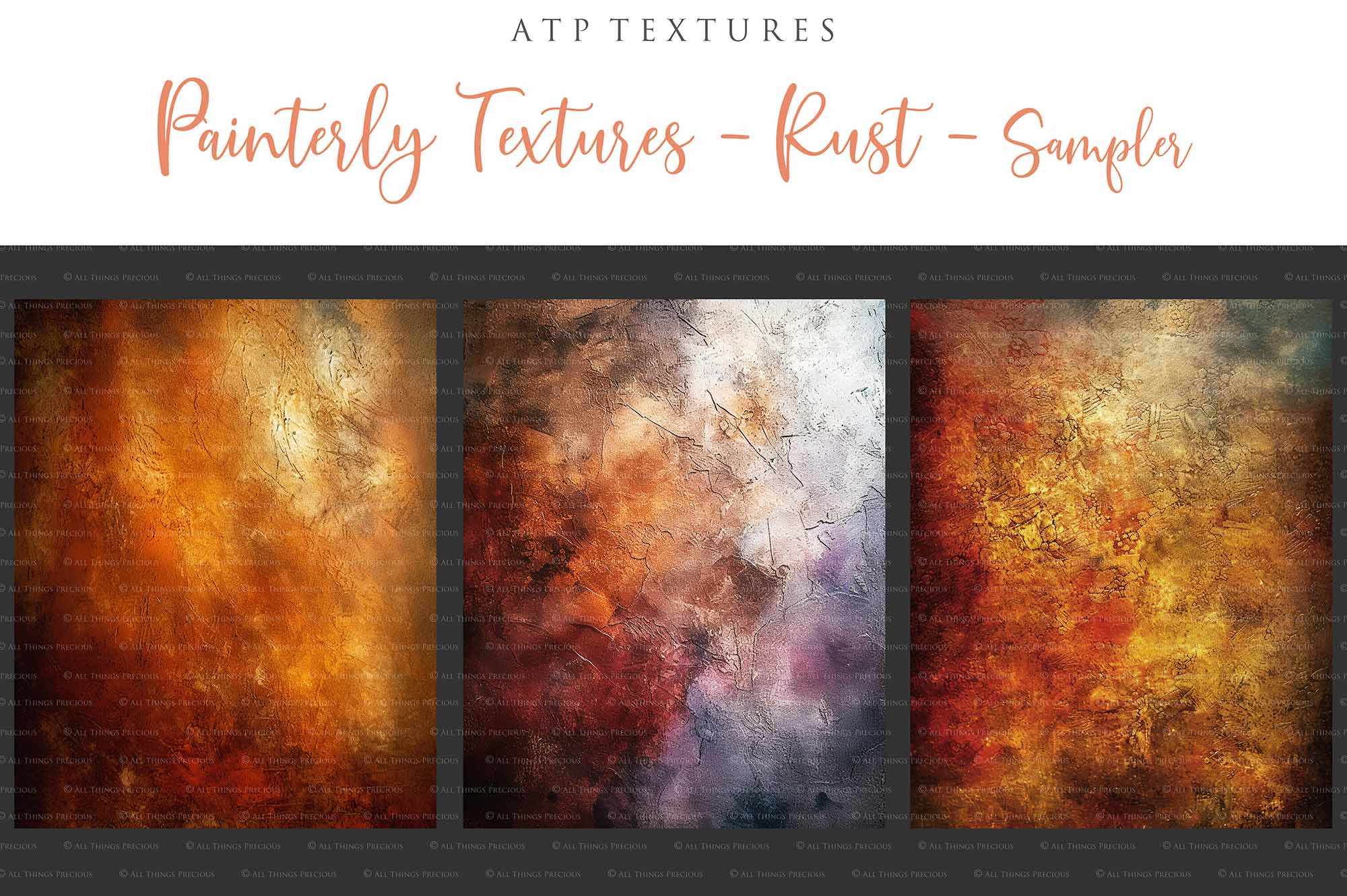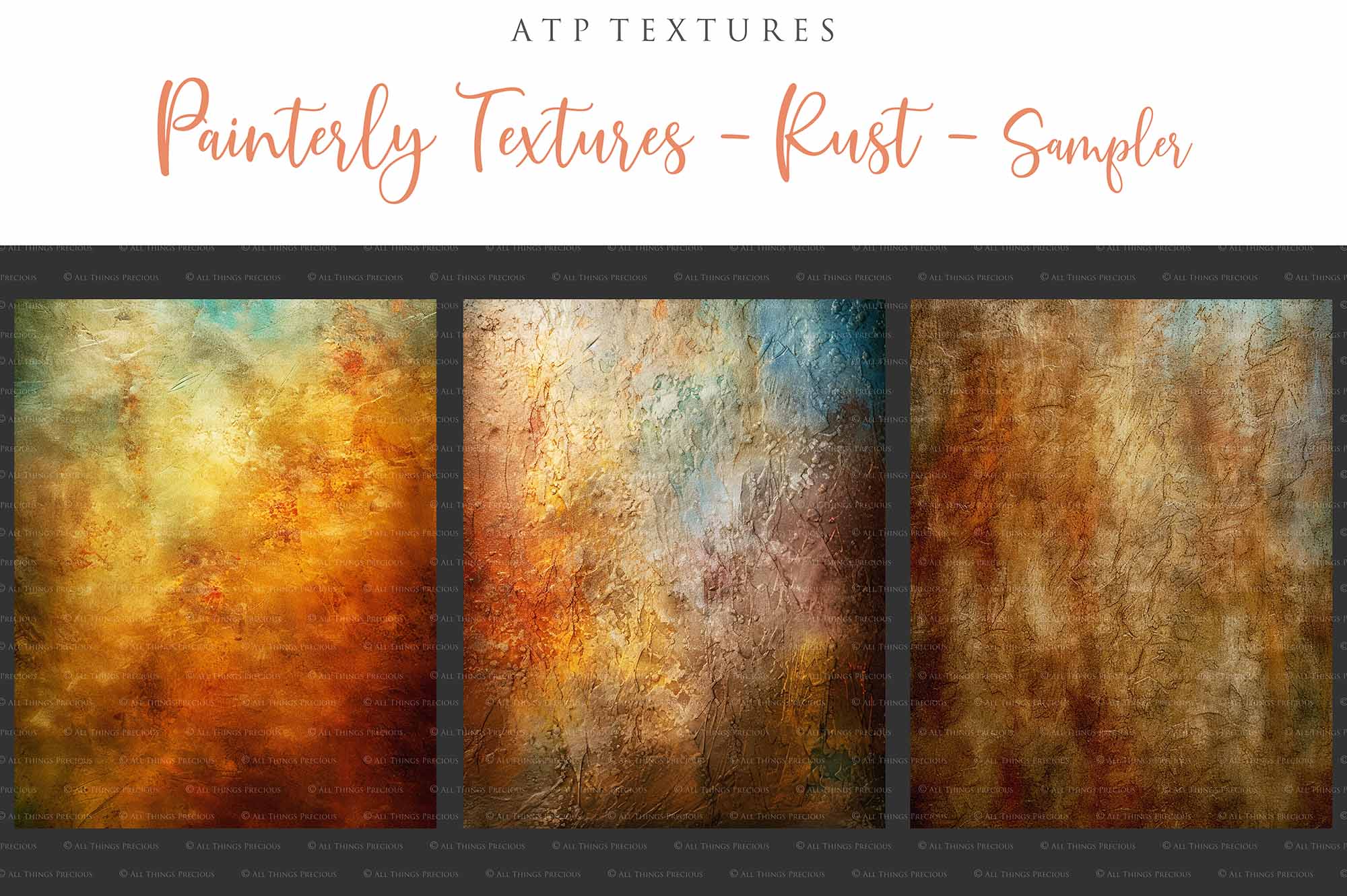 + You can incorporate the textures for sale in your photography as a textured overlay, in a flattened state, without a commercial licence. You will need to add a link to ATP Textures with your listing when selling your work on the internet, eg. Etsy. If you are a professional photographer supplying a finished, printed photograph to clients, you DO NOT have to credit ATP Textures.