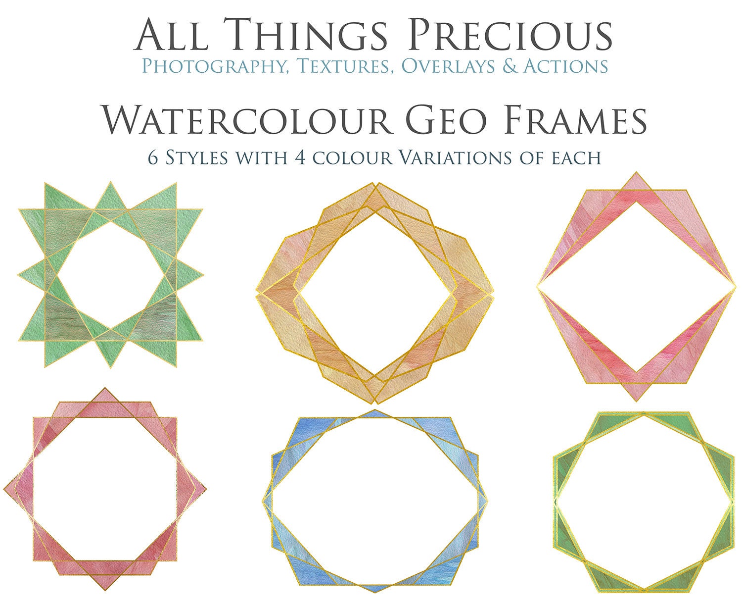 30 PNG WATERCOLOUR / GOLD Geo Frames - Clipart - FREE DOWNLOAD