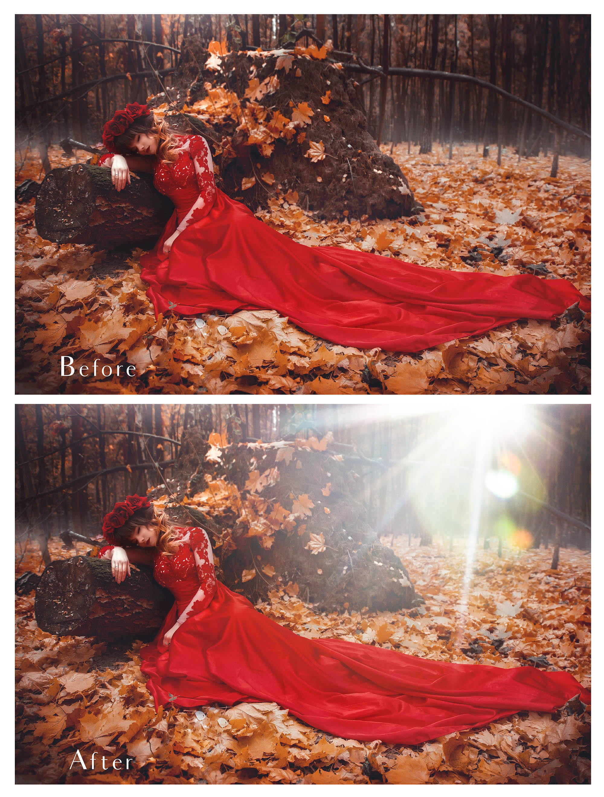 48 Lens / Sun Flare overlays that will bring out the sunlight in your finished photographs!