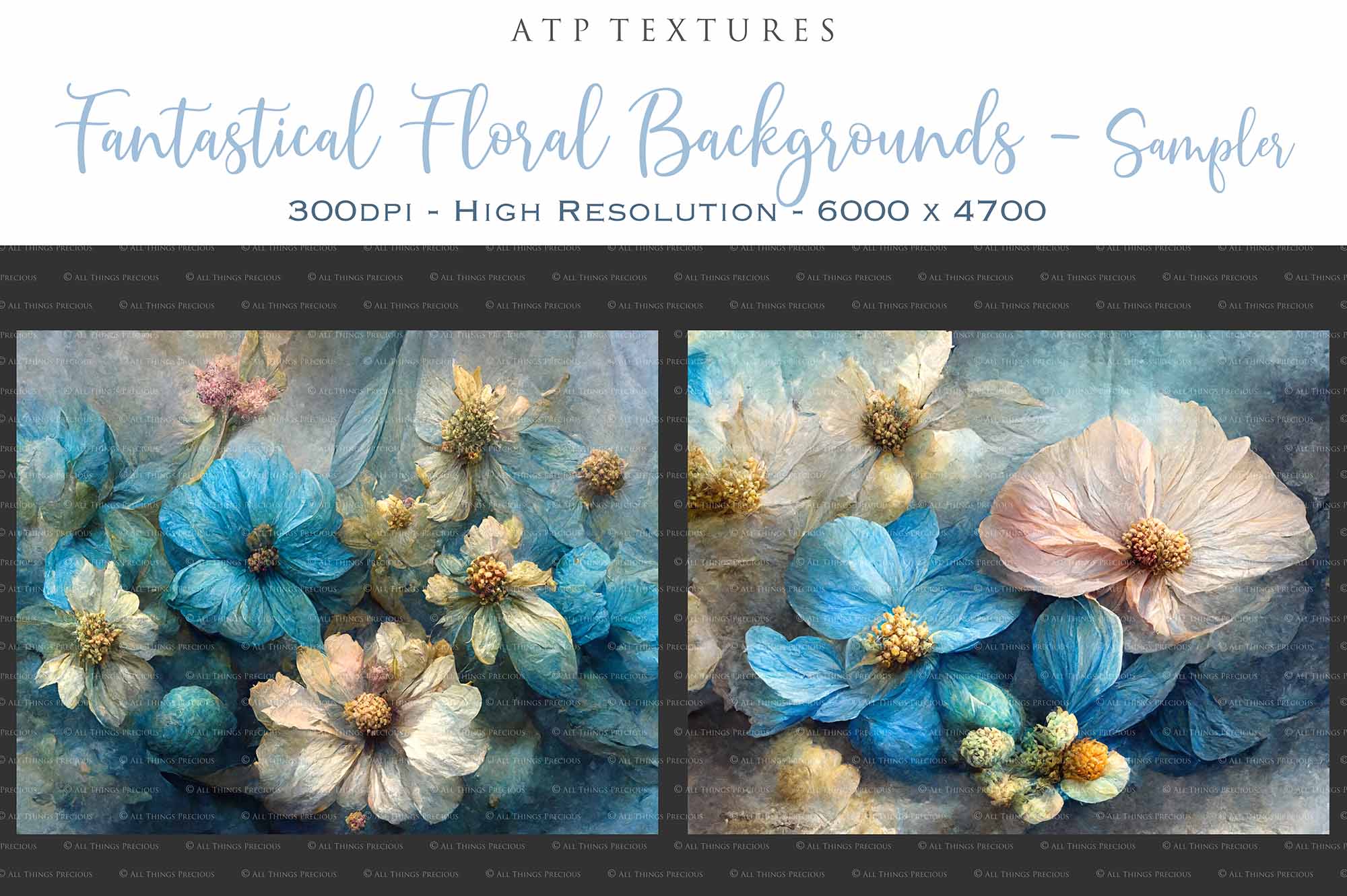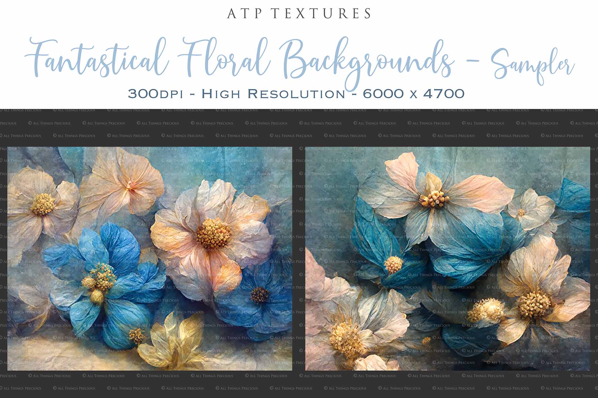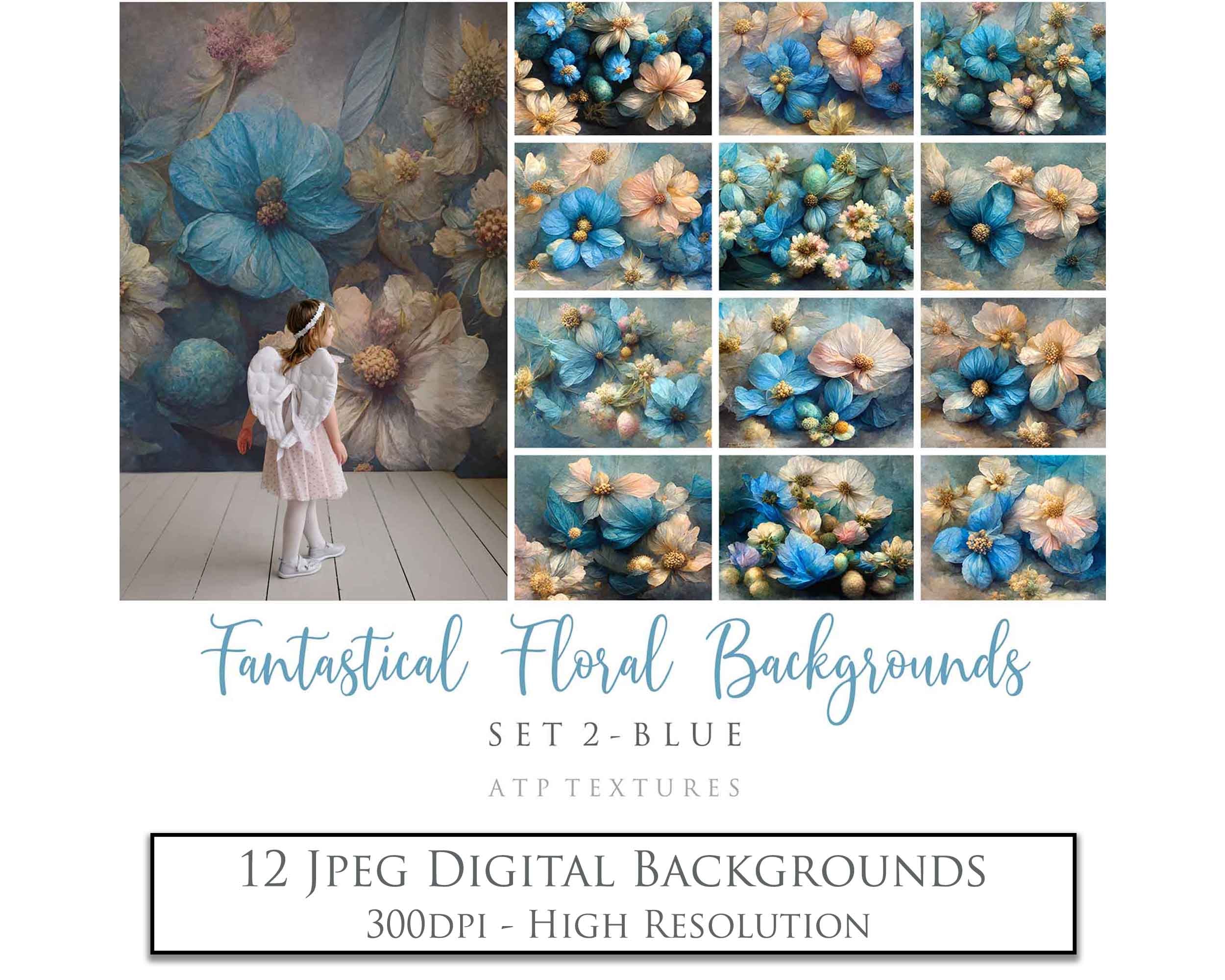 AI Digital - 12 FANTASTICAL FLORAL BACKGROUNDS - Set 2 - BLUE