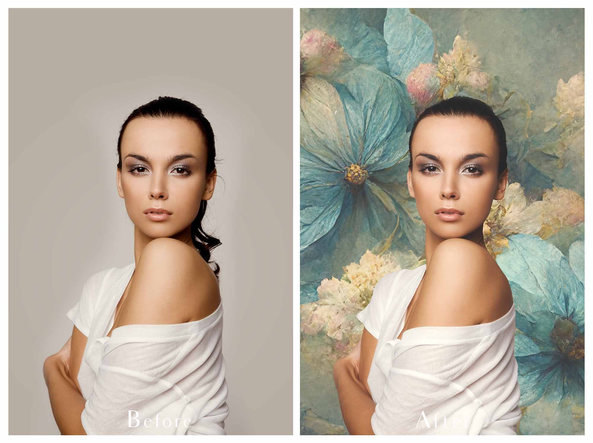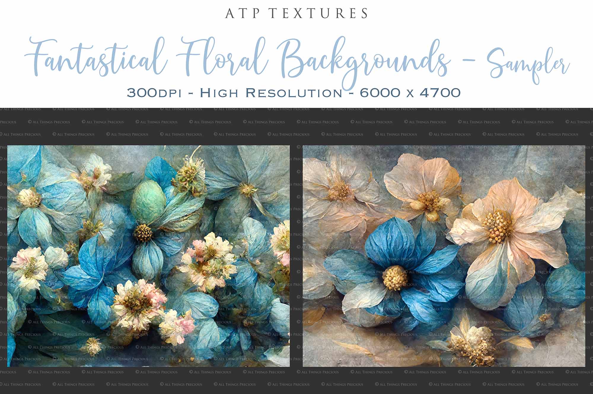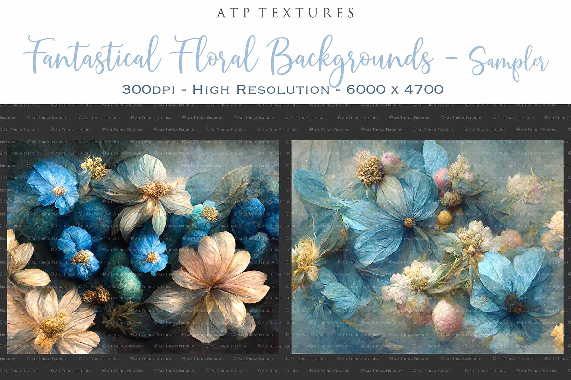 AI Digital - 12 FANTASTICAL FLORAL BACKGROUNDS - Set 2 - BLUE