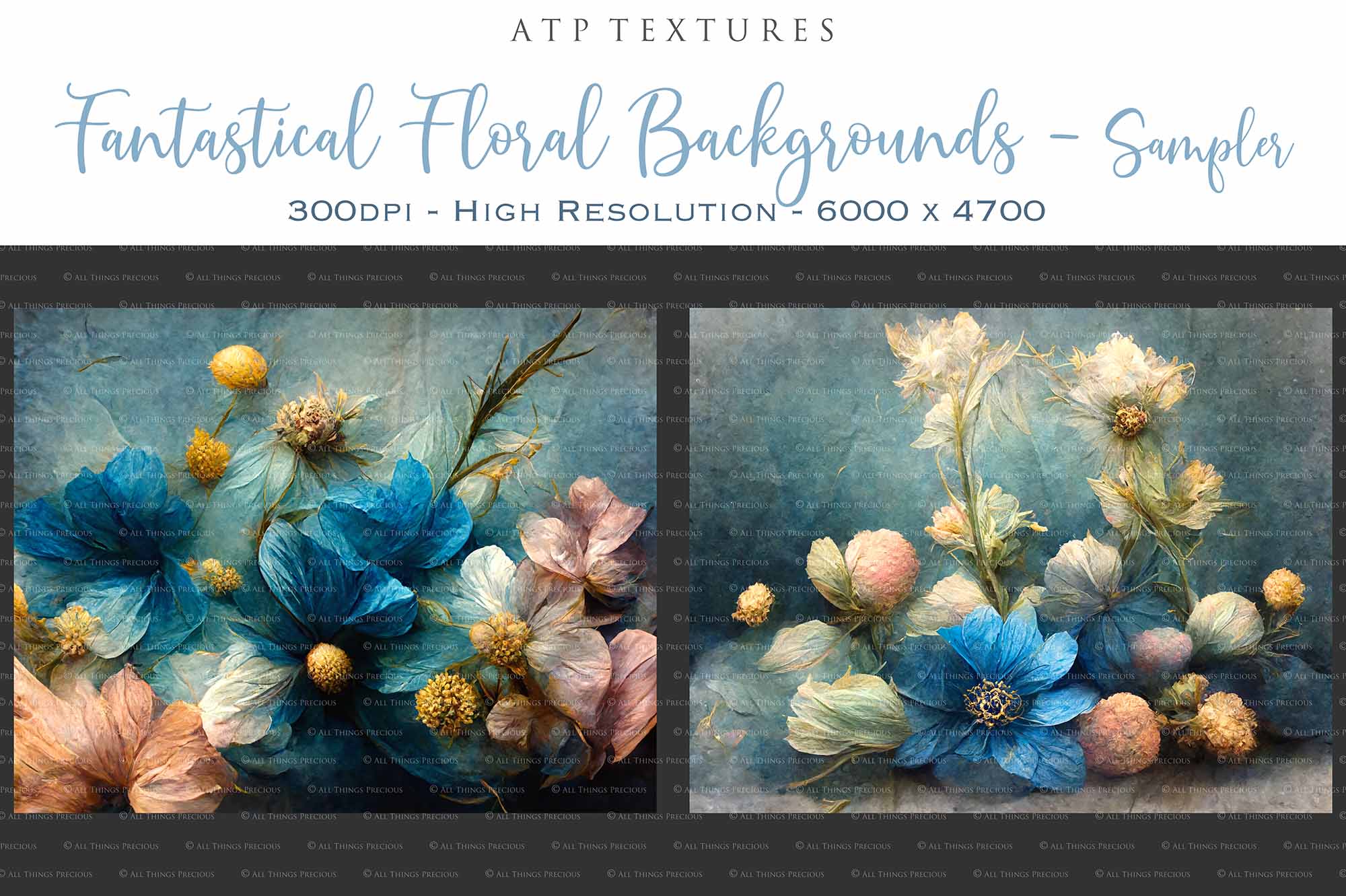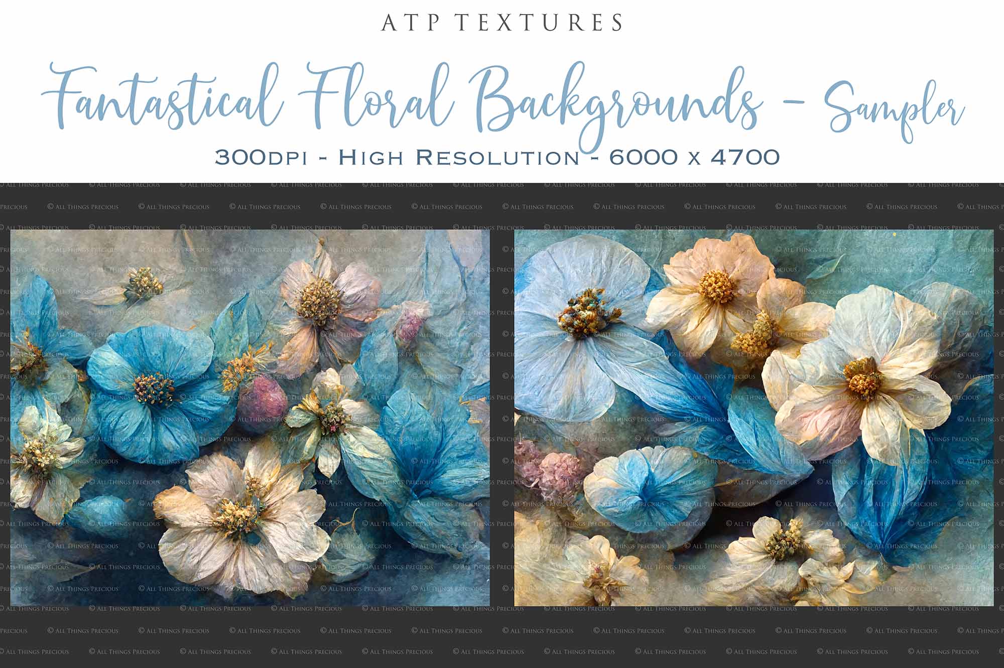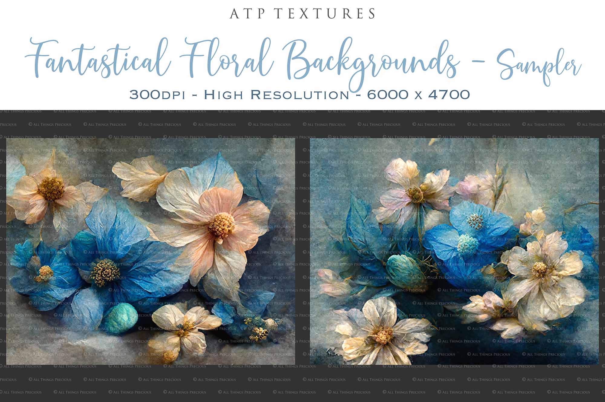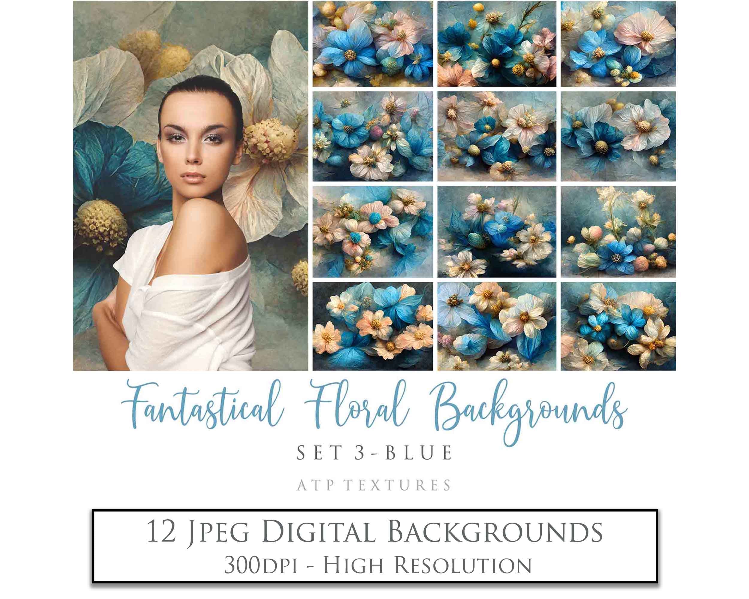 AI Digital - 12 FANTASTICAL FLORAL BACKGROUNDS - Set 3 - BLUE