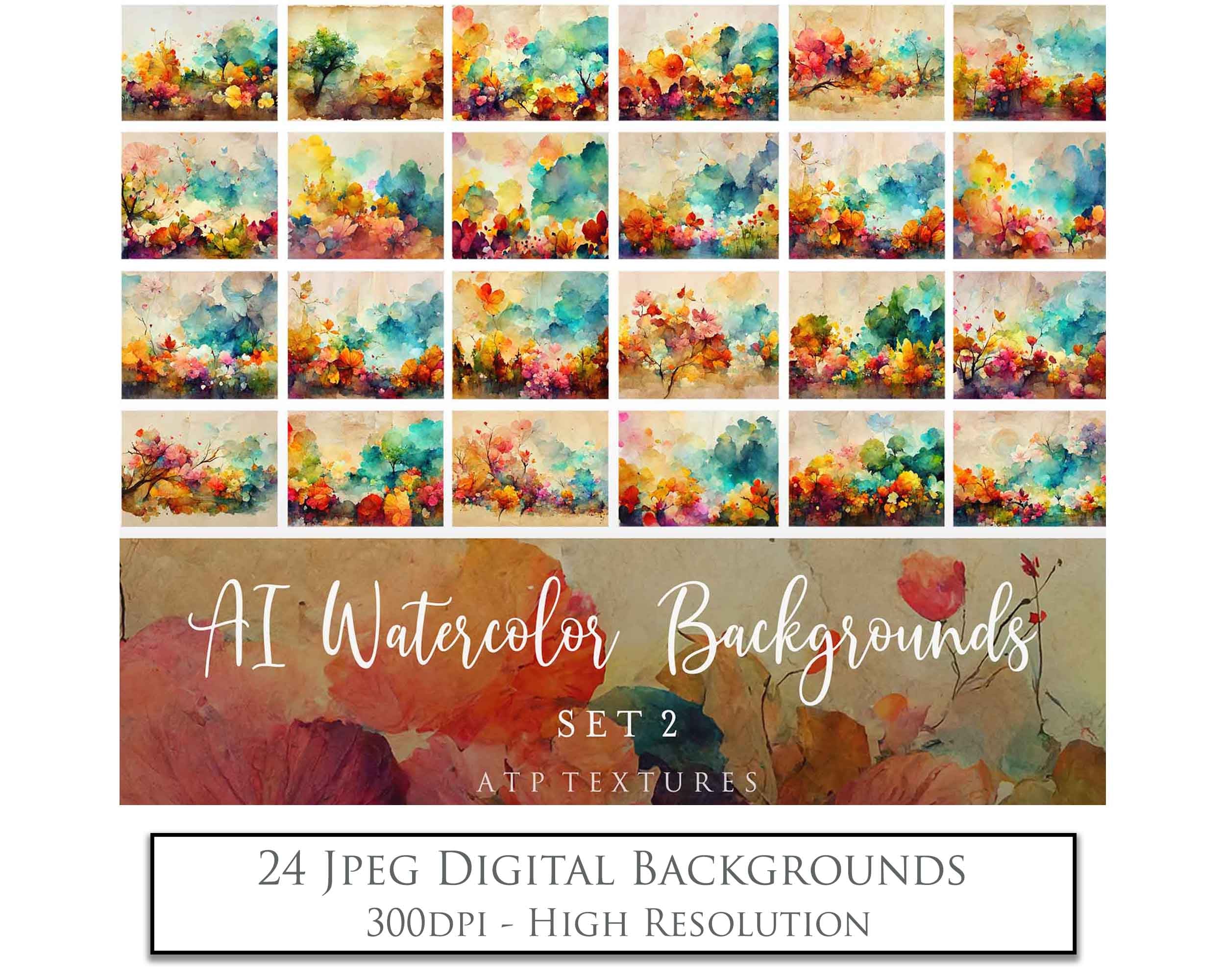 AI Digital - 24 WATERCOLOUR BACKGROUNDS - Set 2