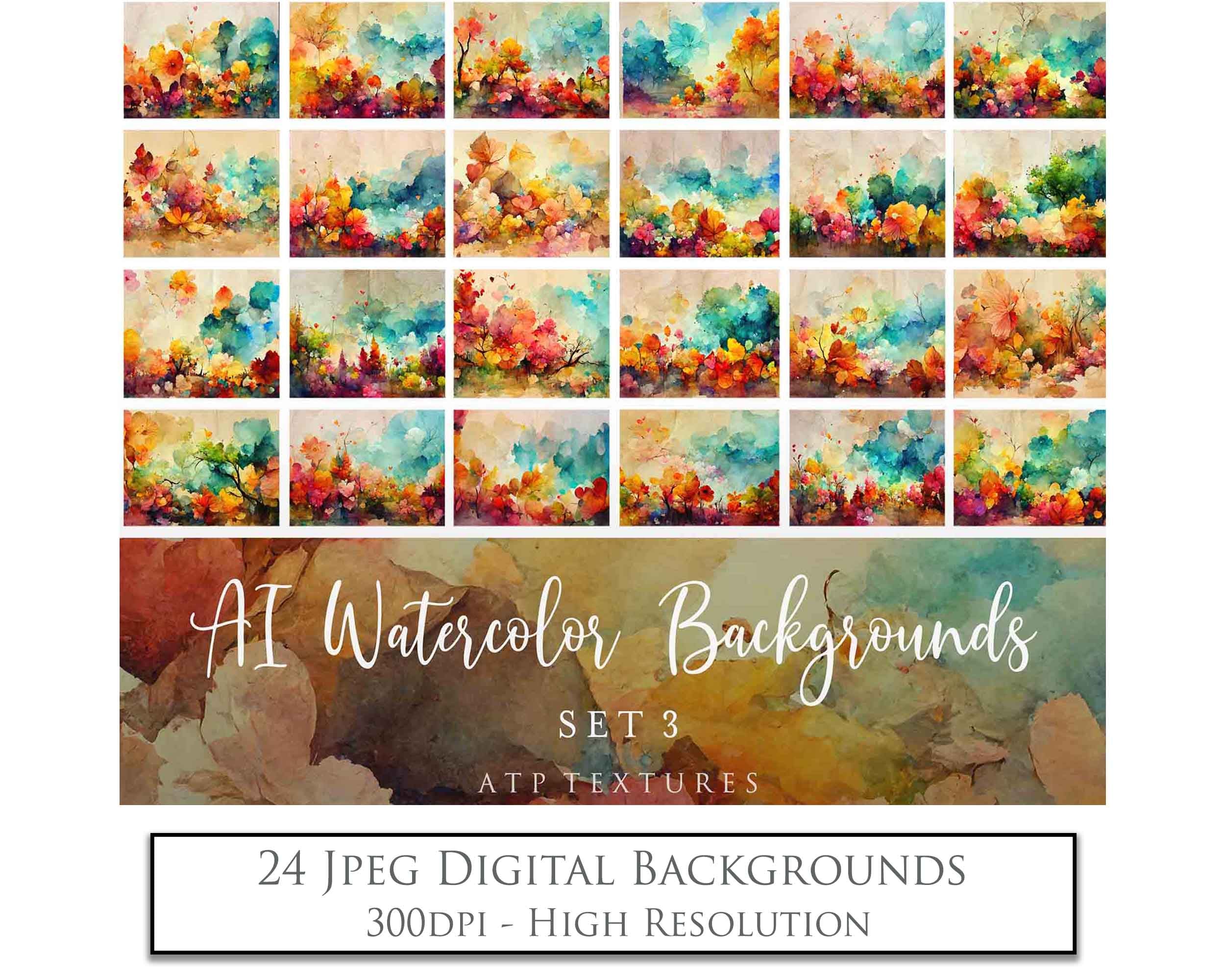 AI Digital - 24 WATERCOLOUR BACKGROUNDS - Set 3