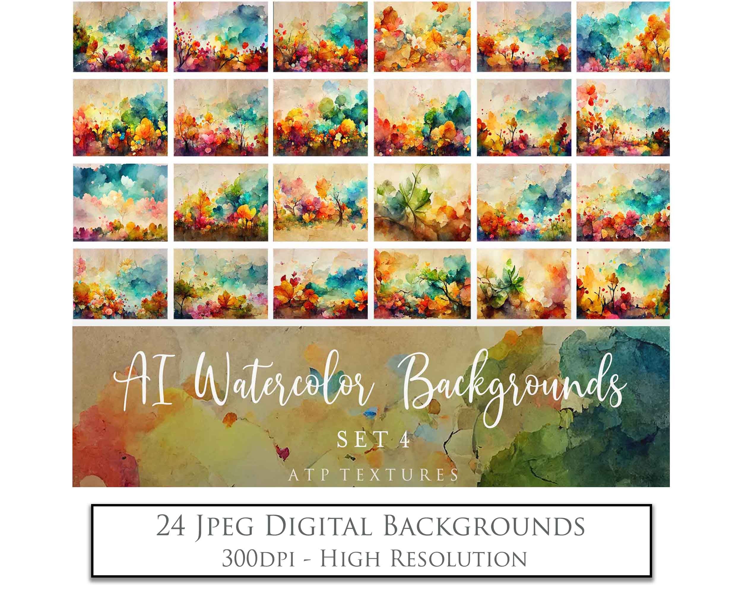 AI Digital - 24 WATERCOLOUR BACKGROUNDS - Set 4