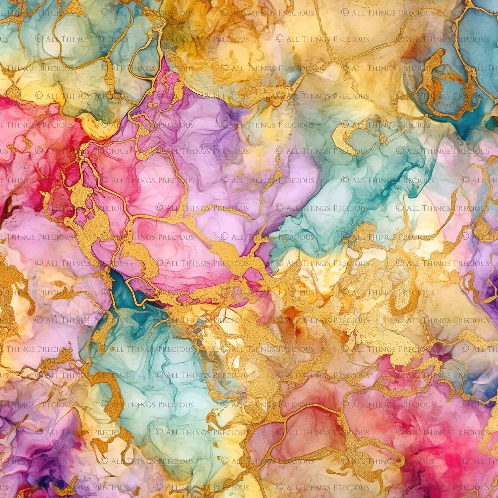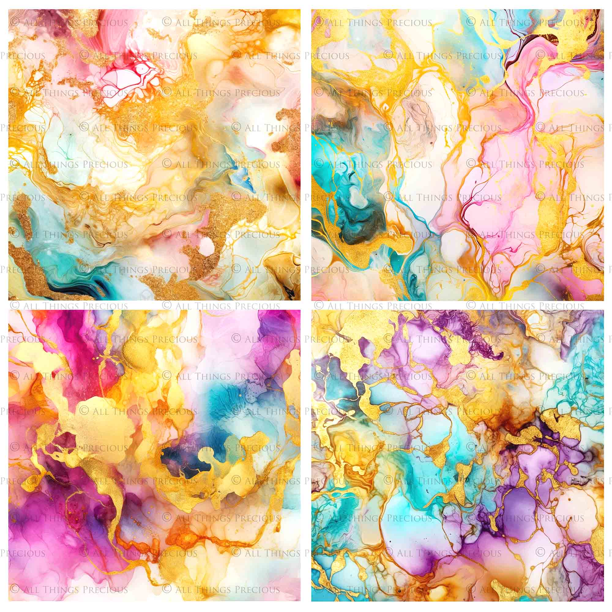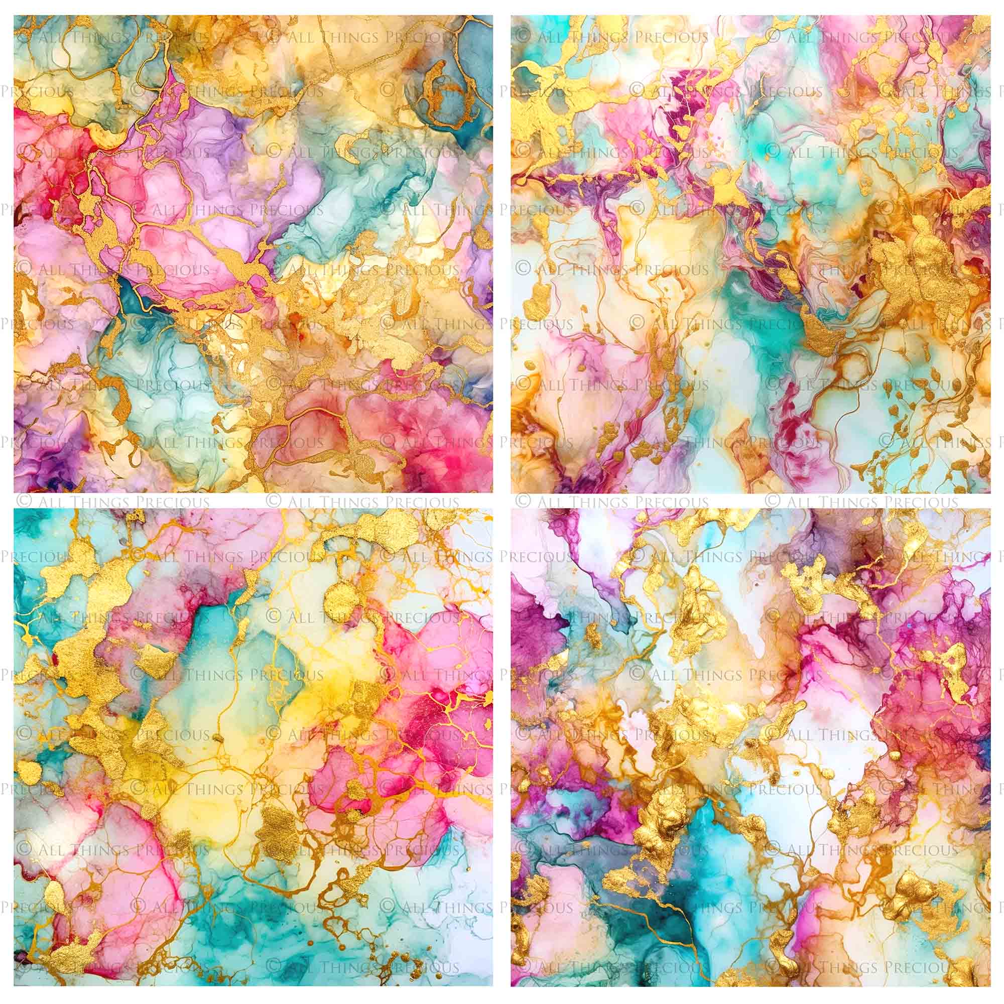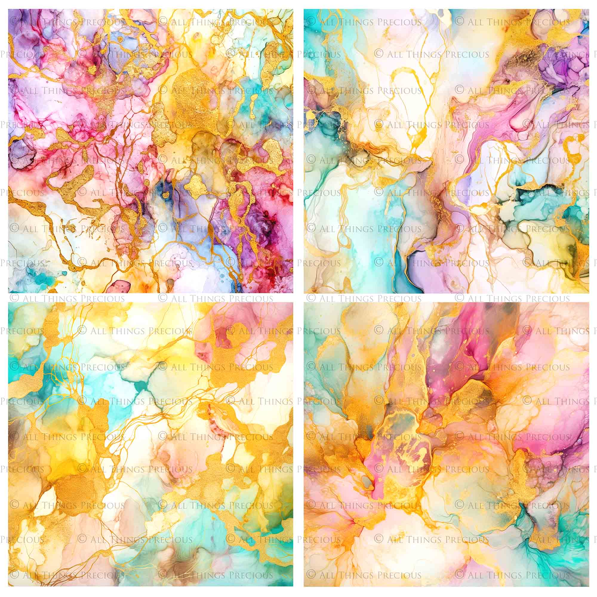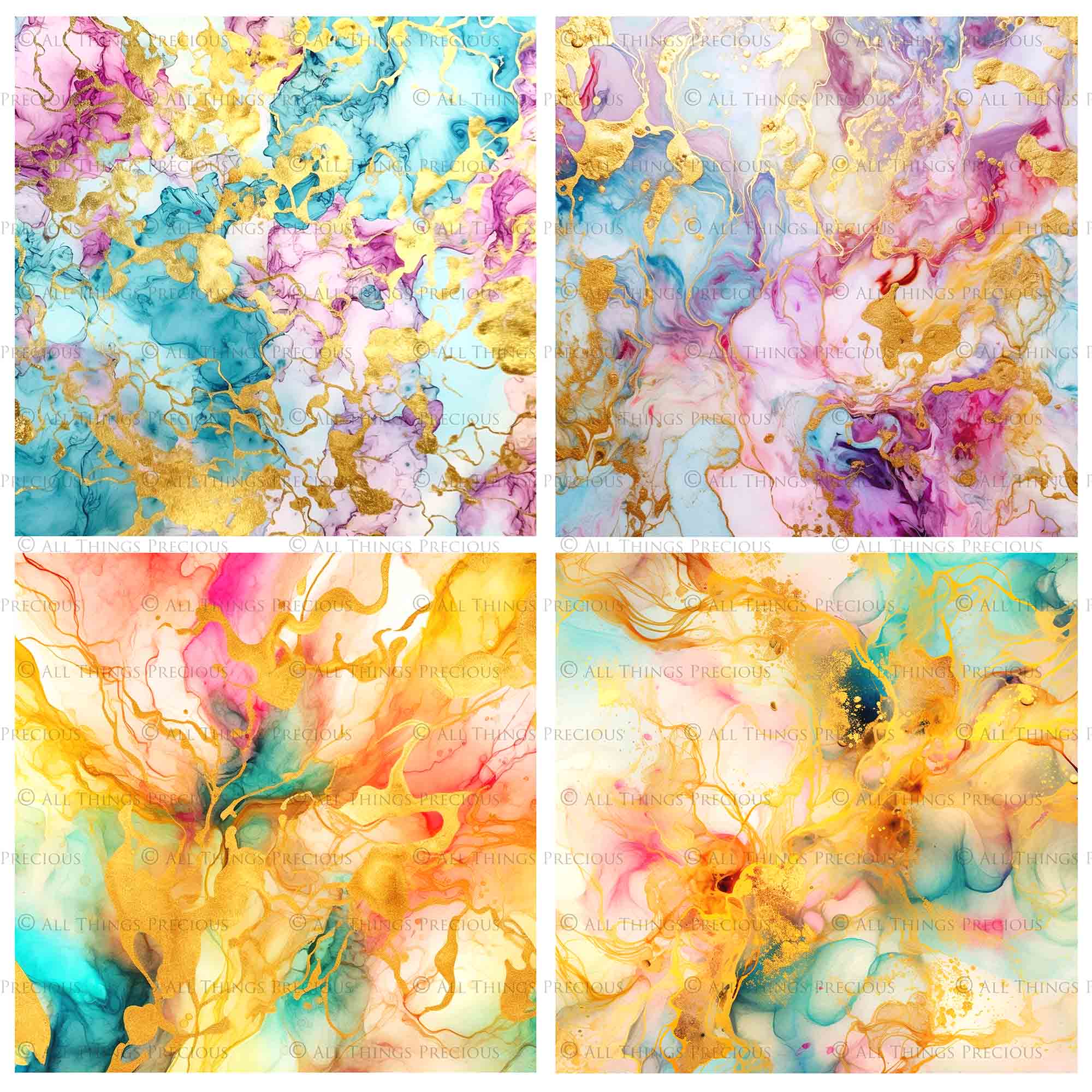 Alcohol Ink with Gold Digital Scrapbooking Papers