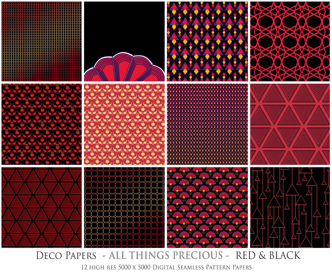 ART DECO - RED & BLACK Digital Papers Set 5 - Free Download
