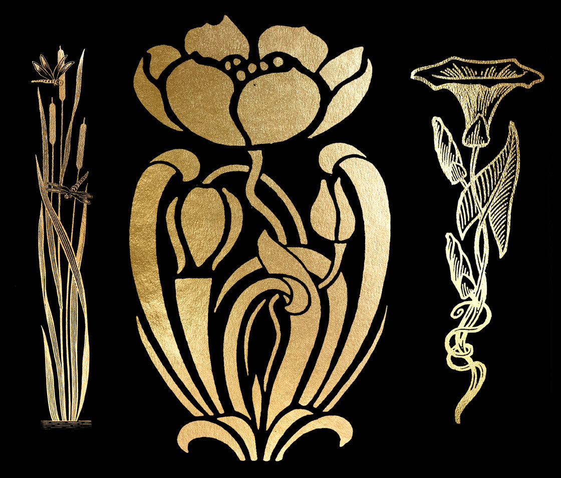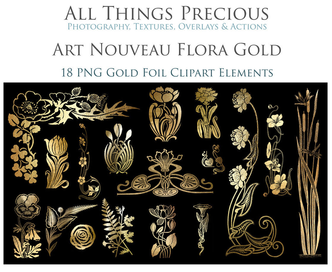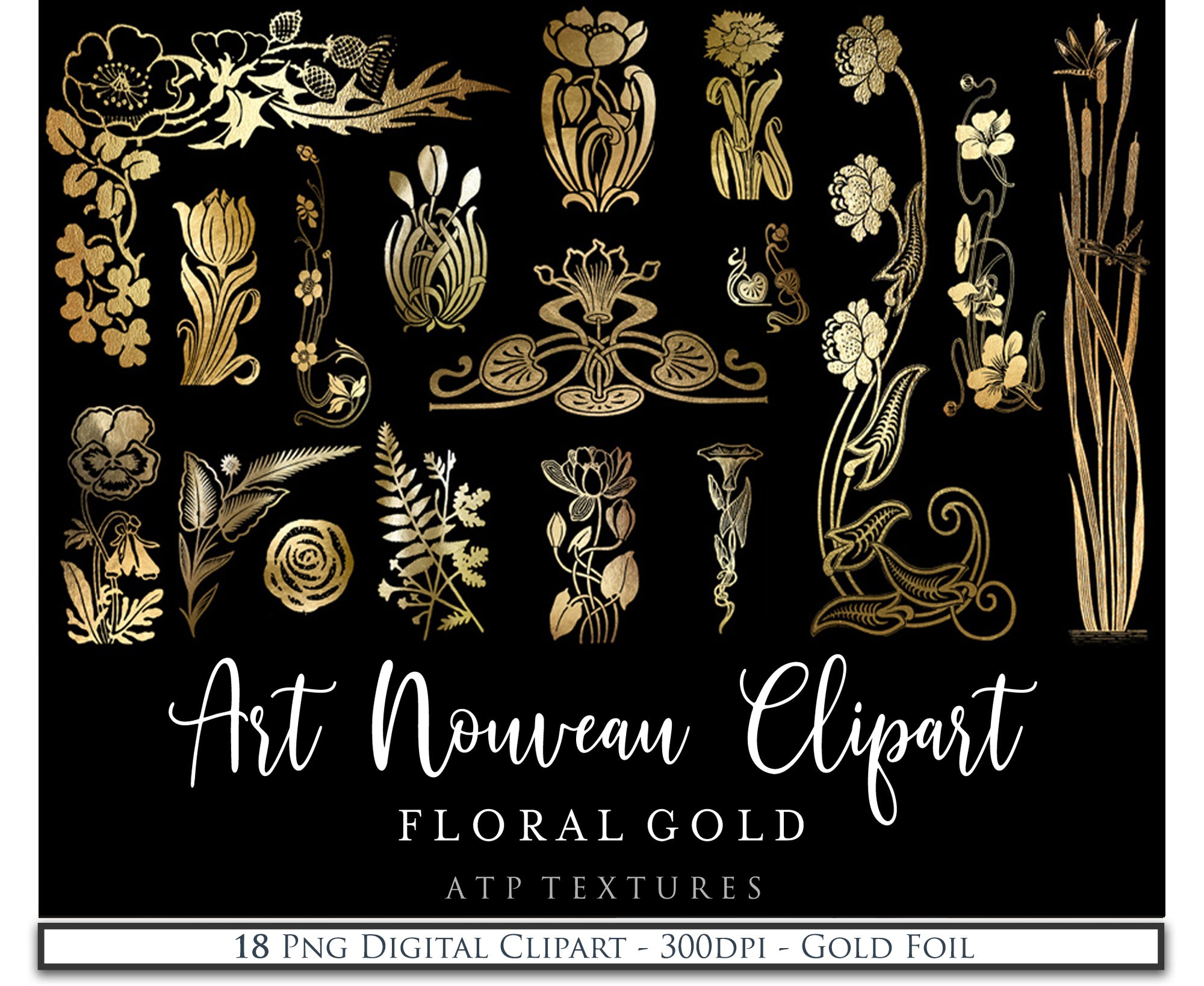 ART NOUVEAU Gold Foil Flora Elements! With beautiful art flowers and foliage.