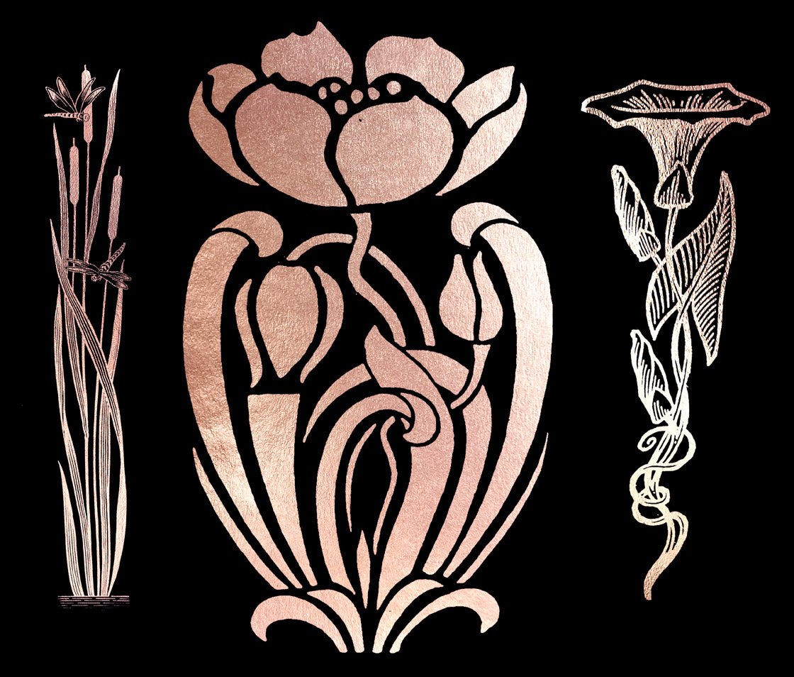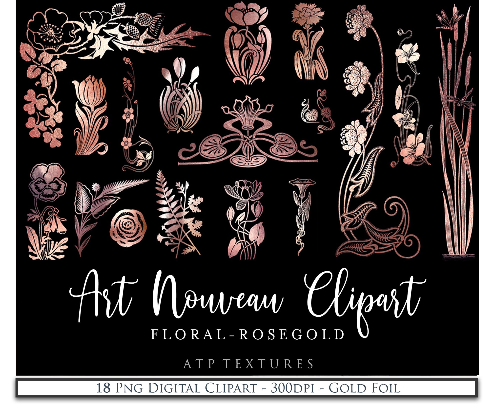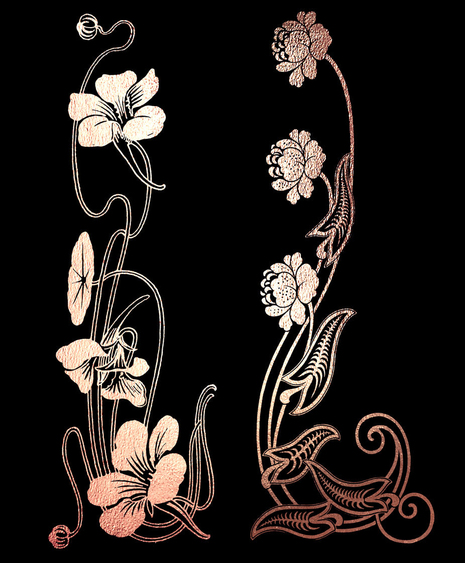 ART NOUVEAU Gold Foil Flora Elements! With beautiful art flowers and foliage.