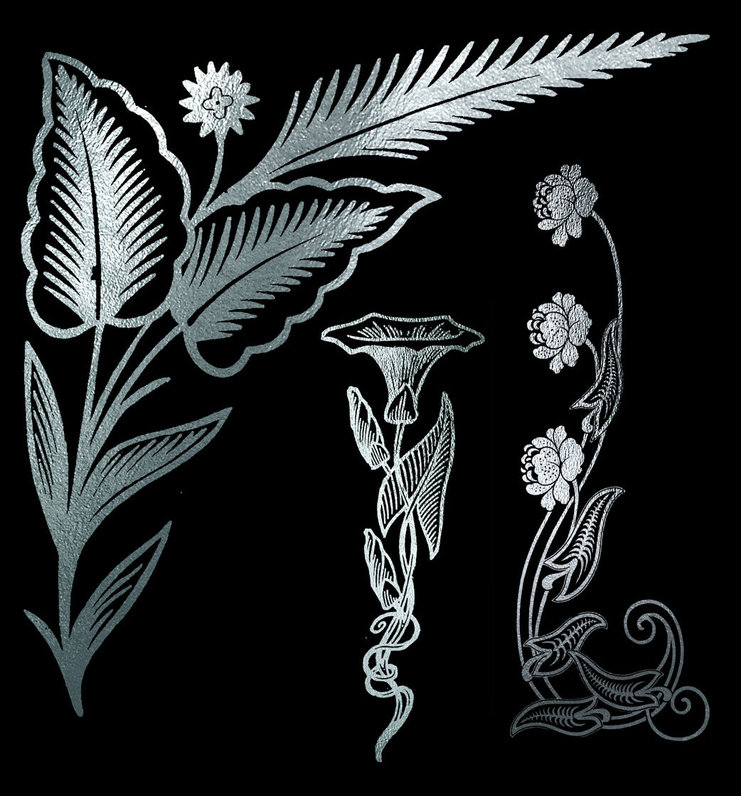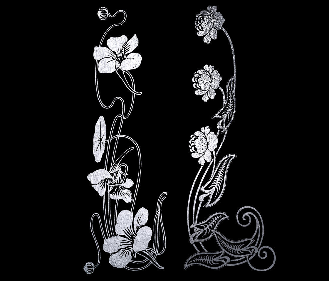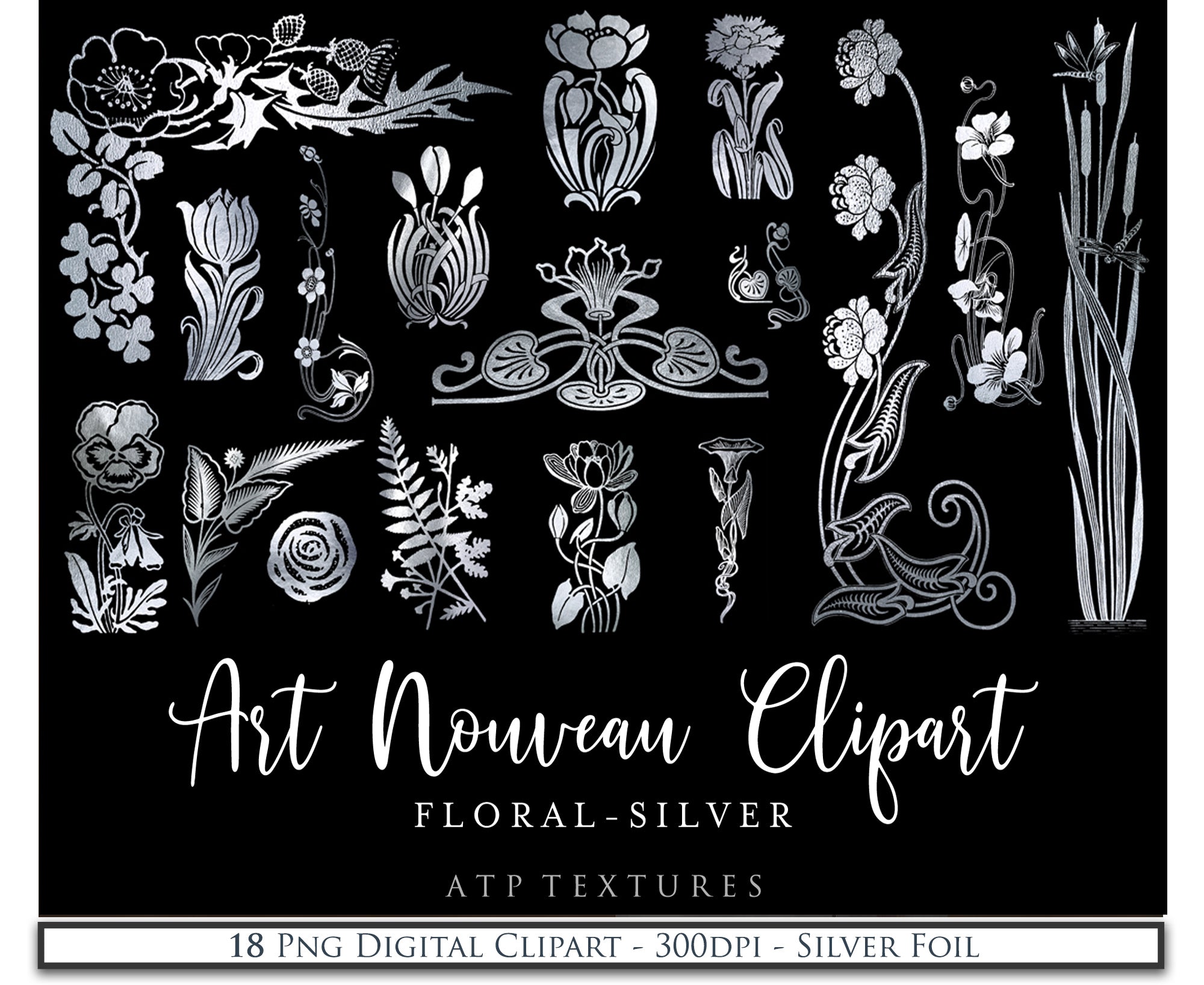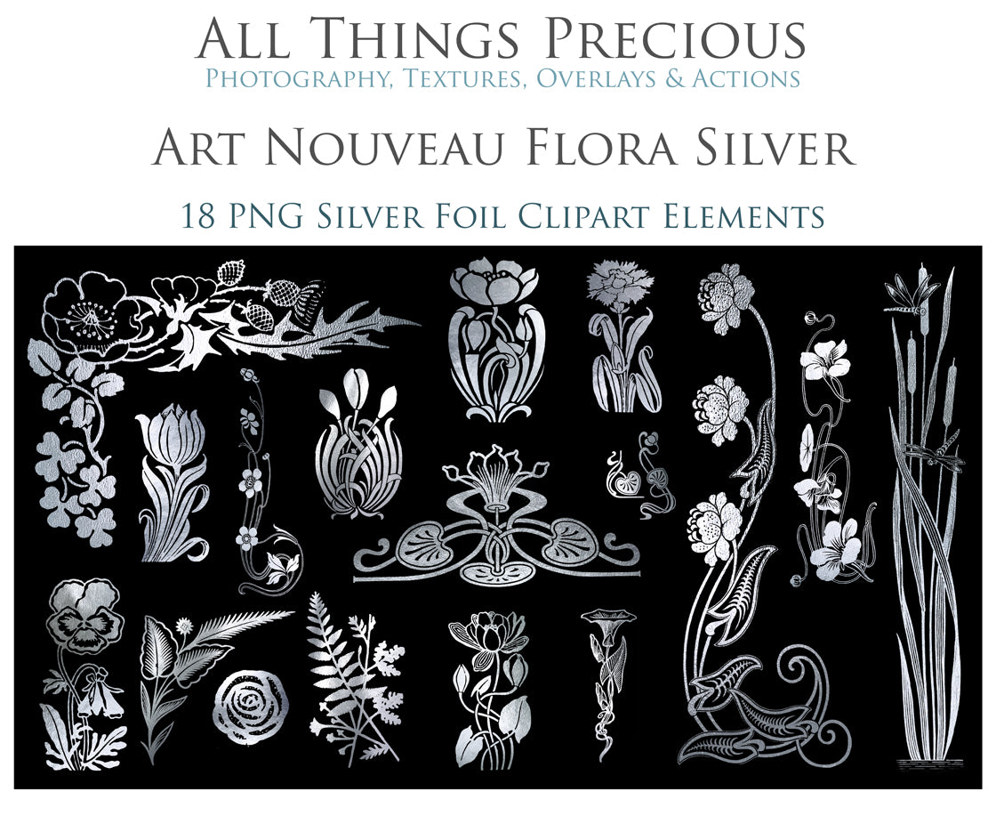 ART NOUVEAU Silver Foil Flora Elements! With beautiful art flowers and foliage.