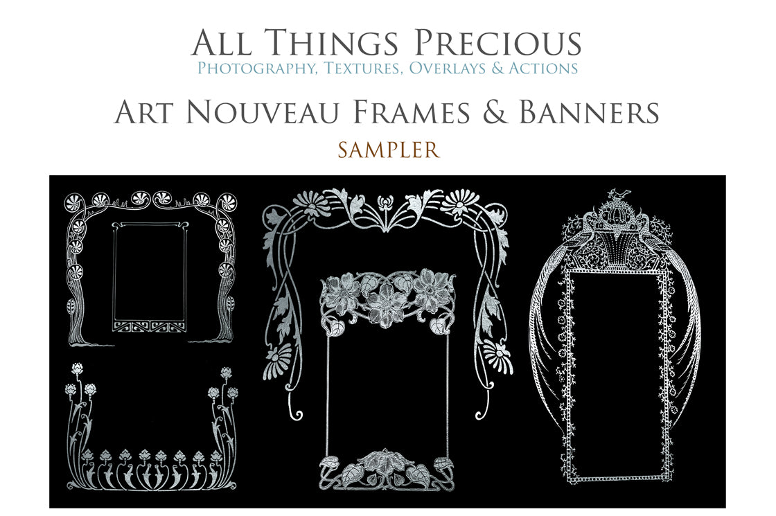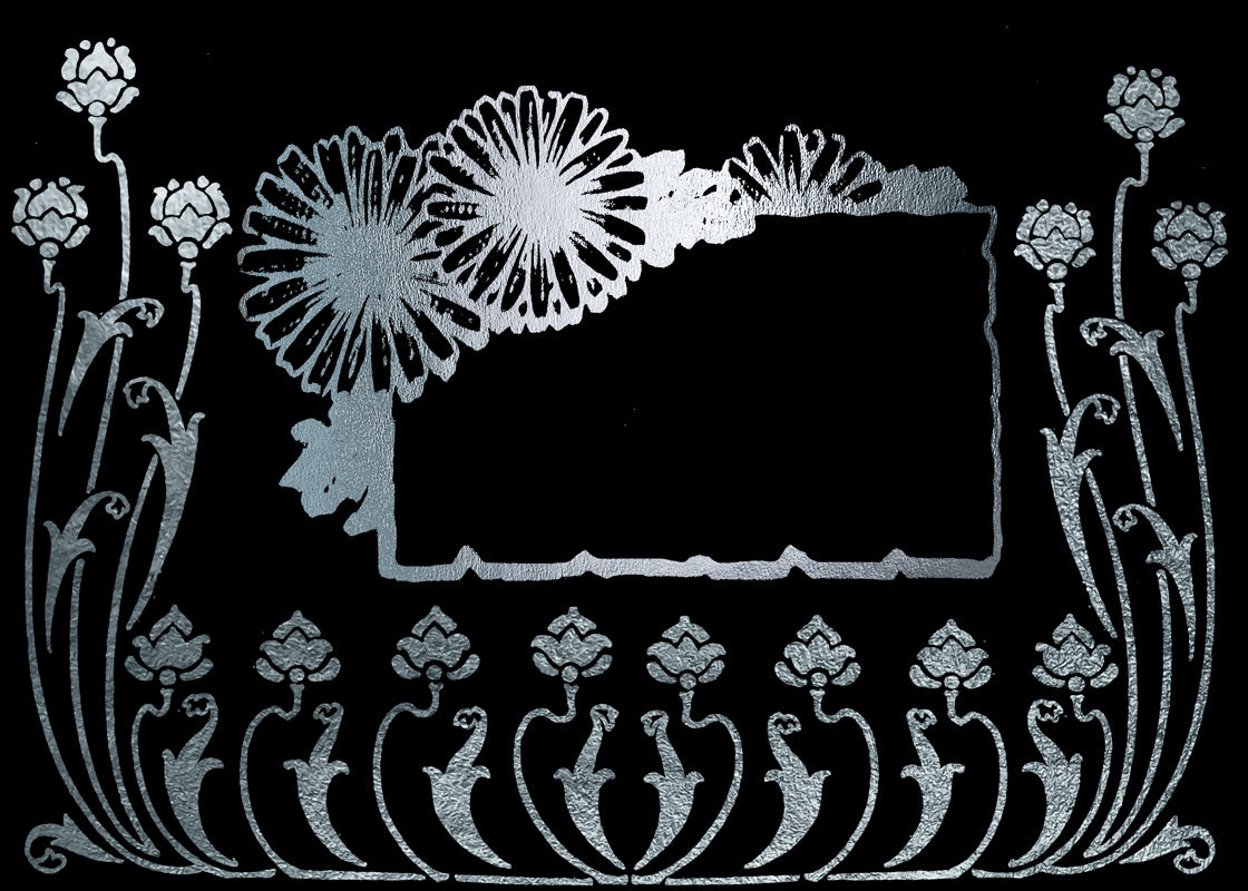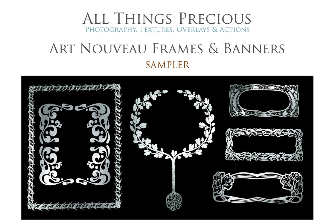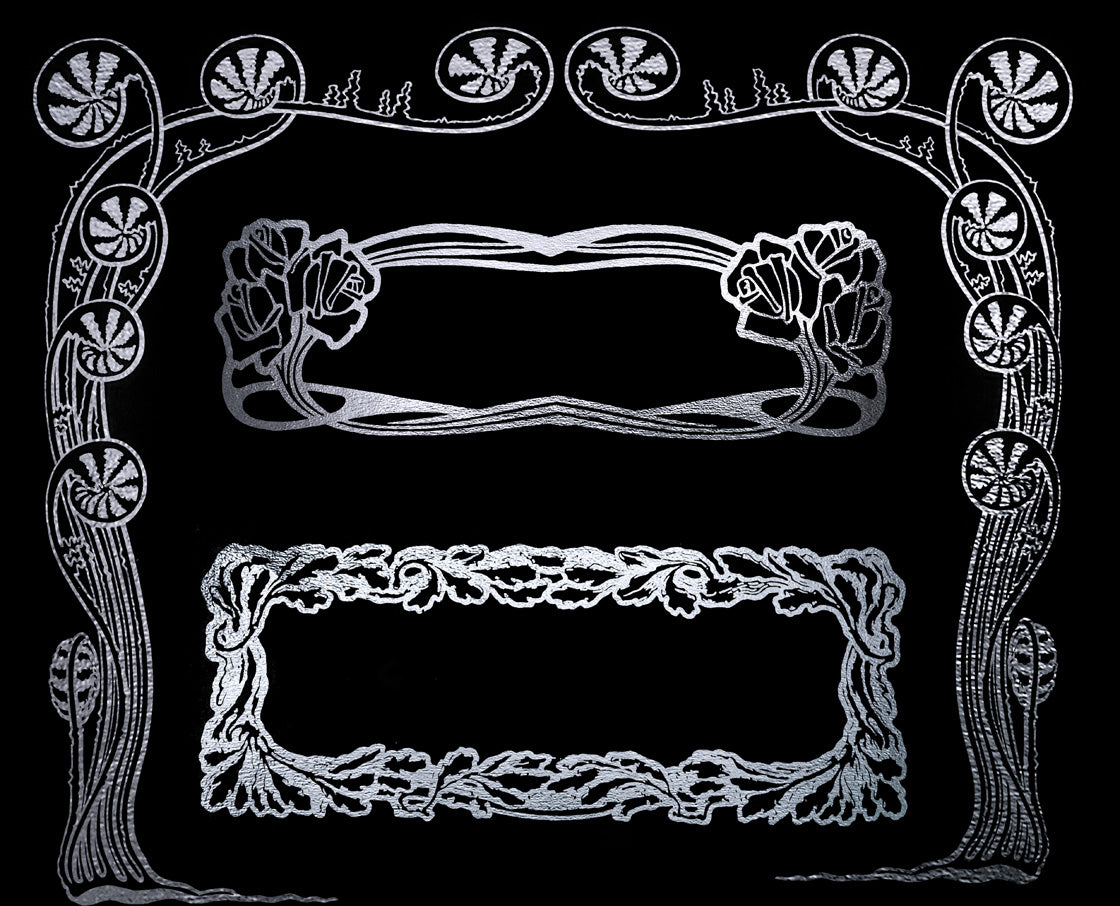 22 High Resolution PNG Art Nouveau Clipart elements, with silver foil overlay.