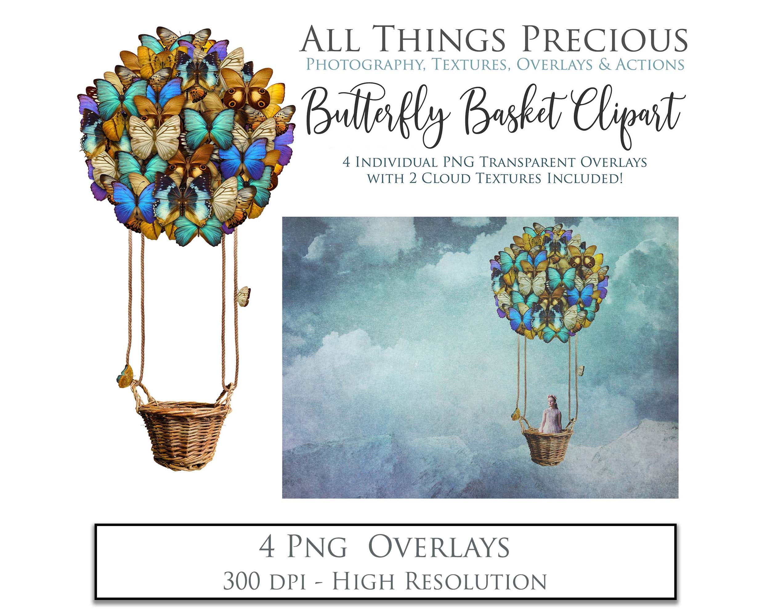 4 PNG Butterfly Basket Overlays.
