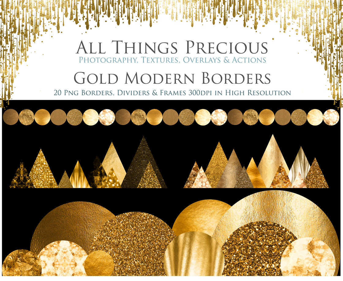 Gorgeous Modern Gold Borders, Dividers & Frames. A lovely addition to your beautiful photography, scrapbooking or digital art work!