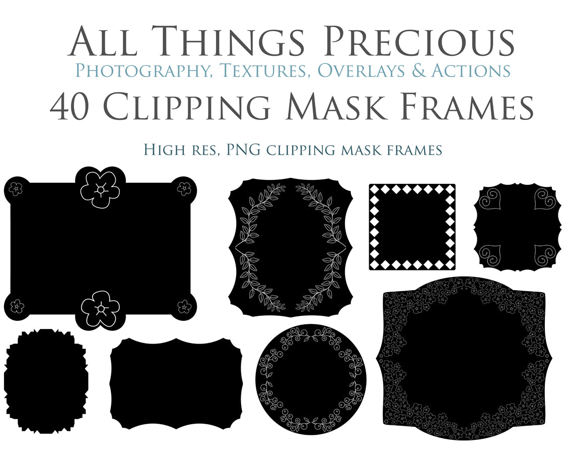 40 PNG Clipping Mask frames, a gorgeous addition to your beautiful photography, scrapbooking or digital art work!