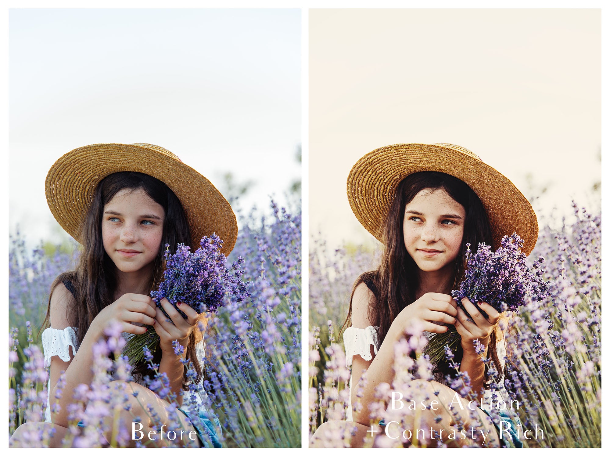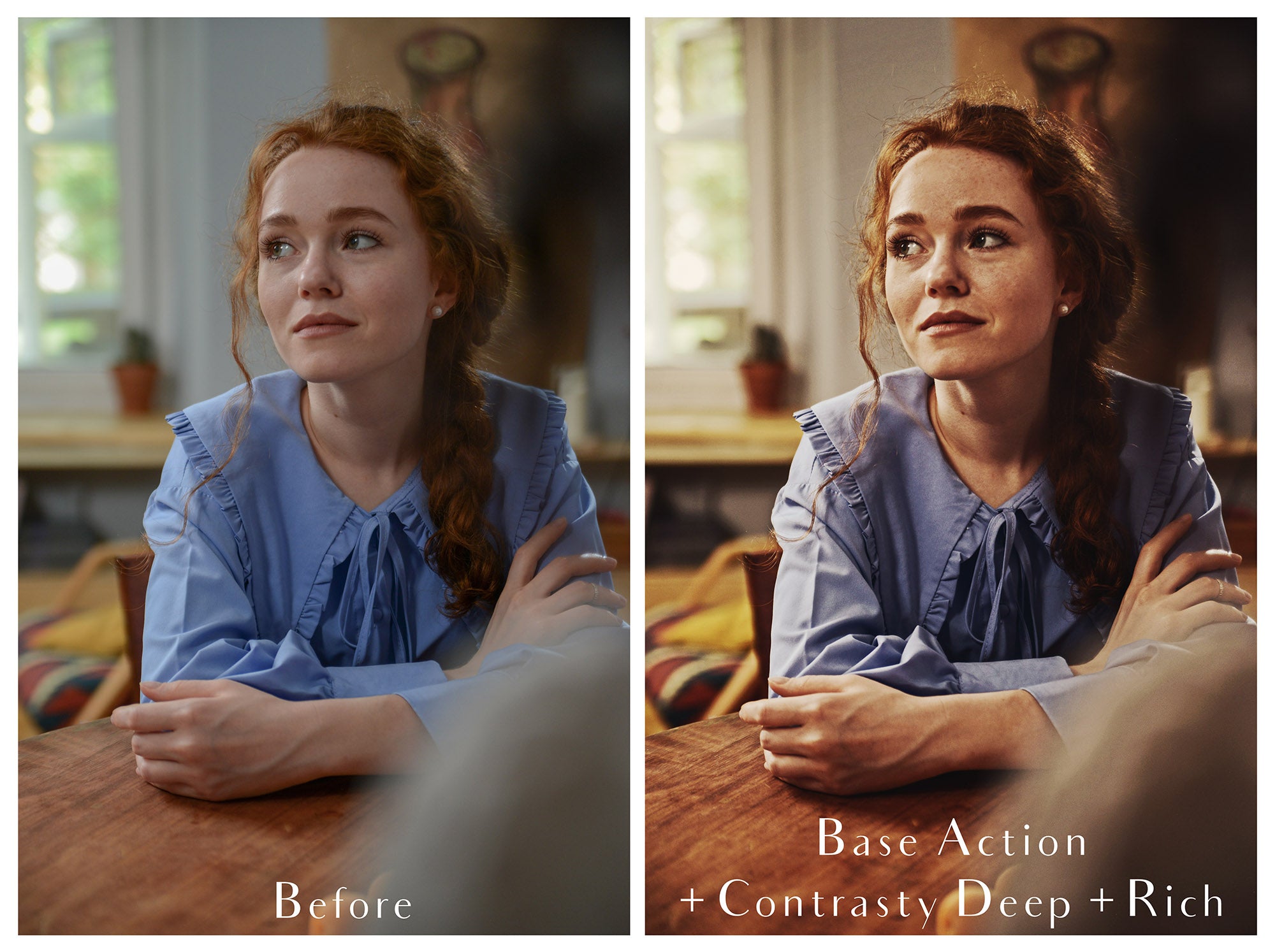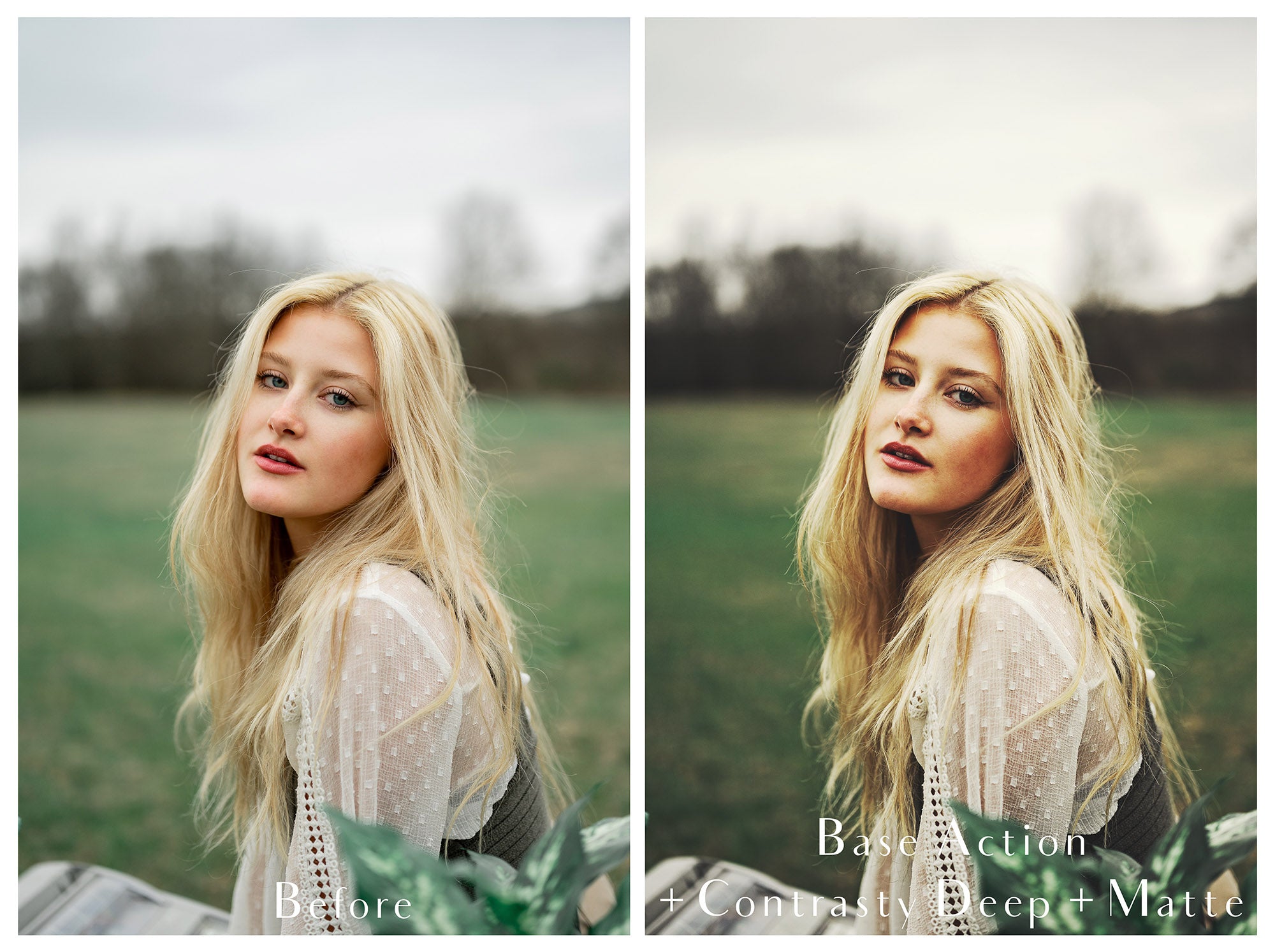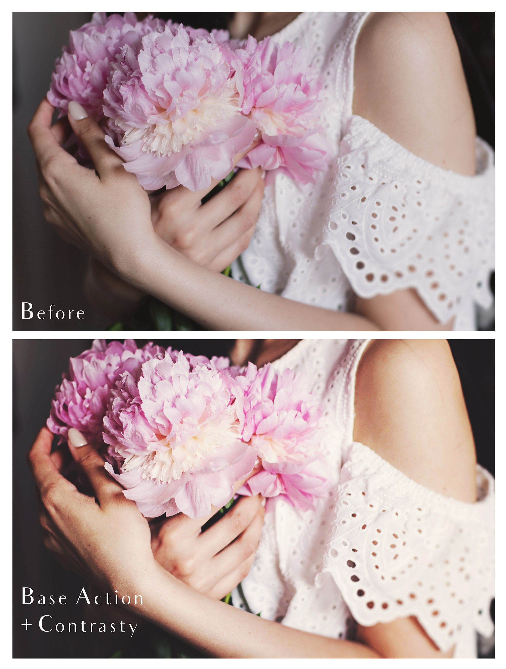 BASE action. - This is for all your contrast, light and warming tone adjustments.