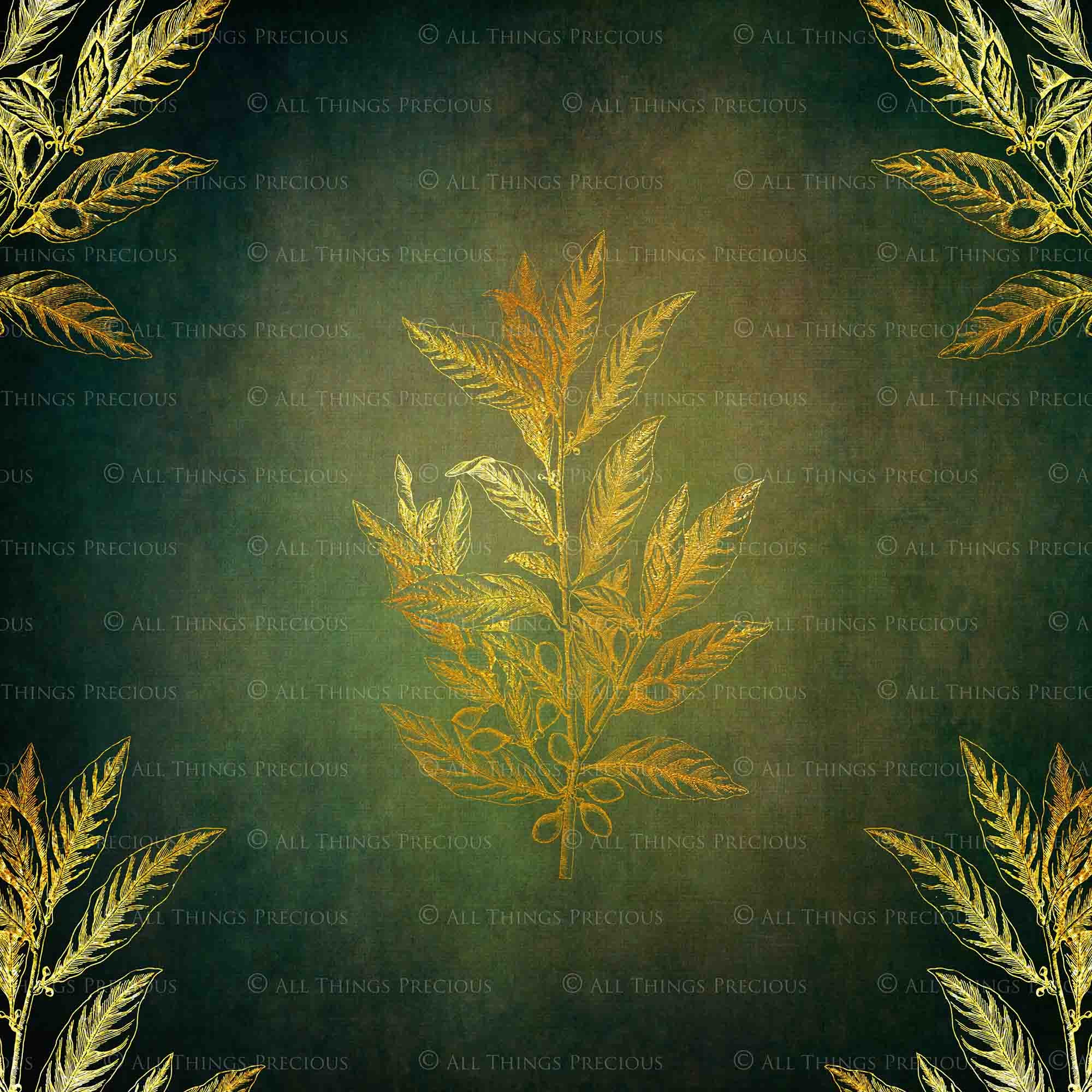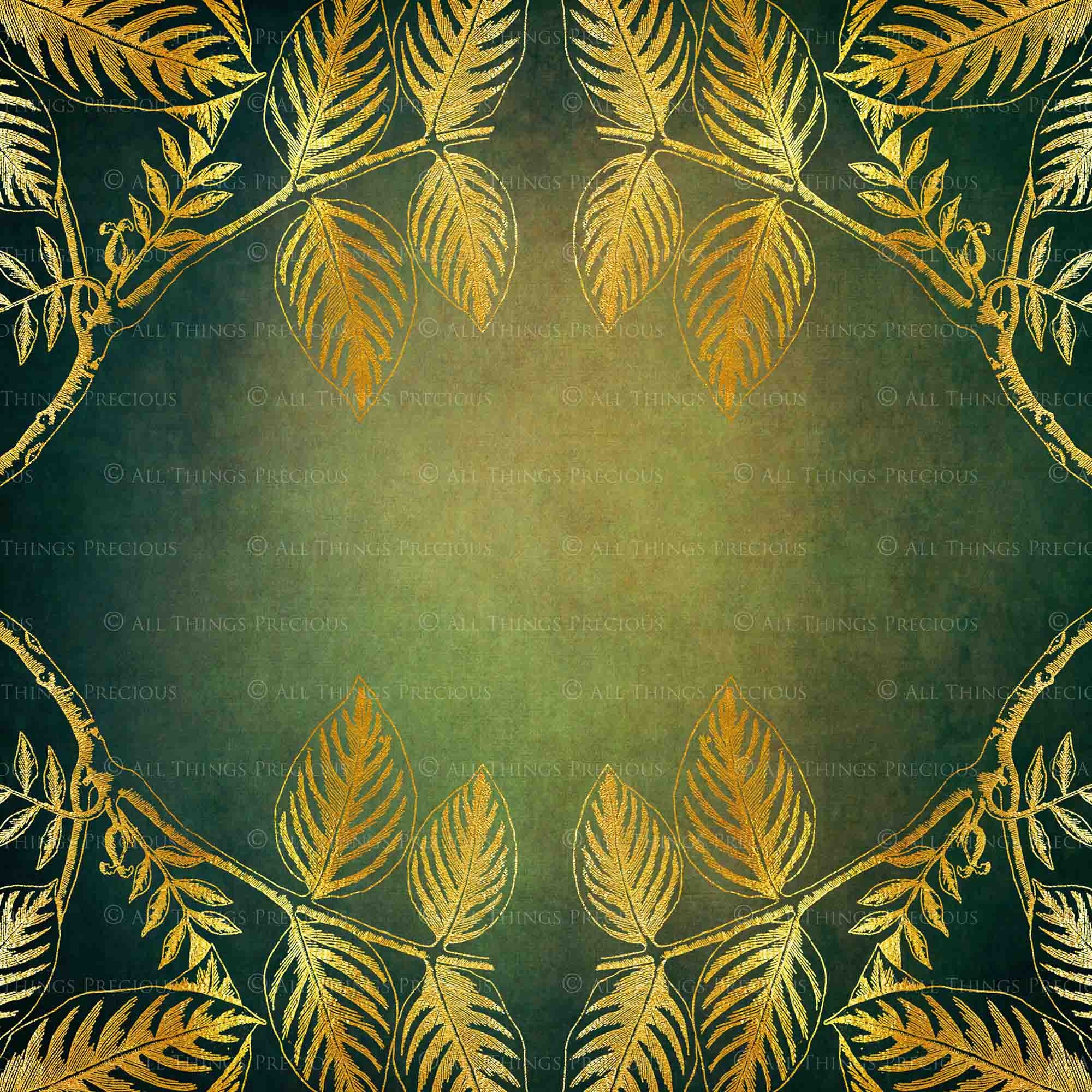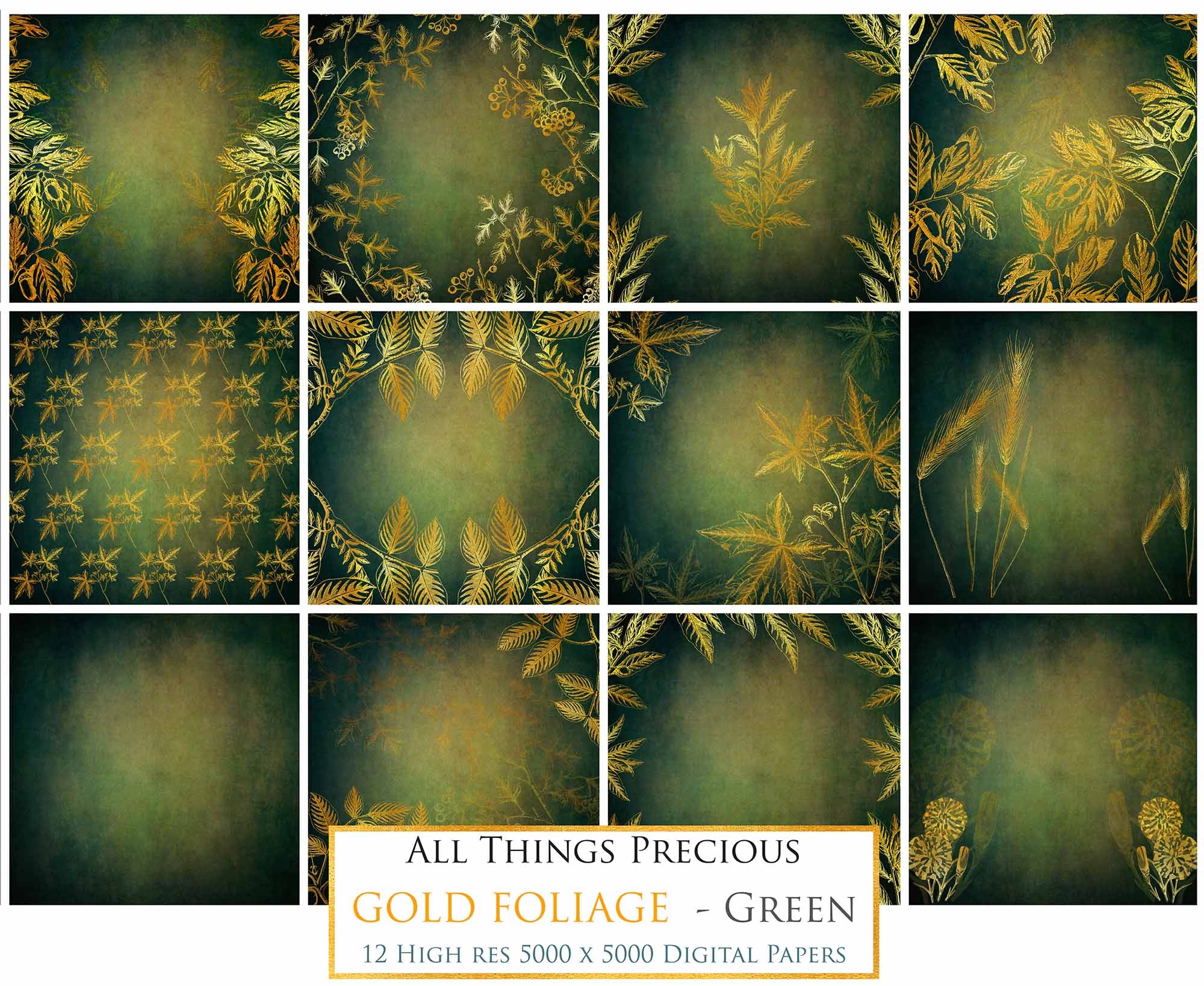 GOLD FOLIAGE - Dark Green - Digital Papers