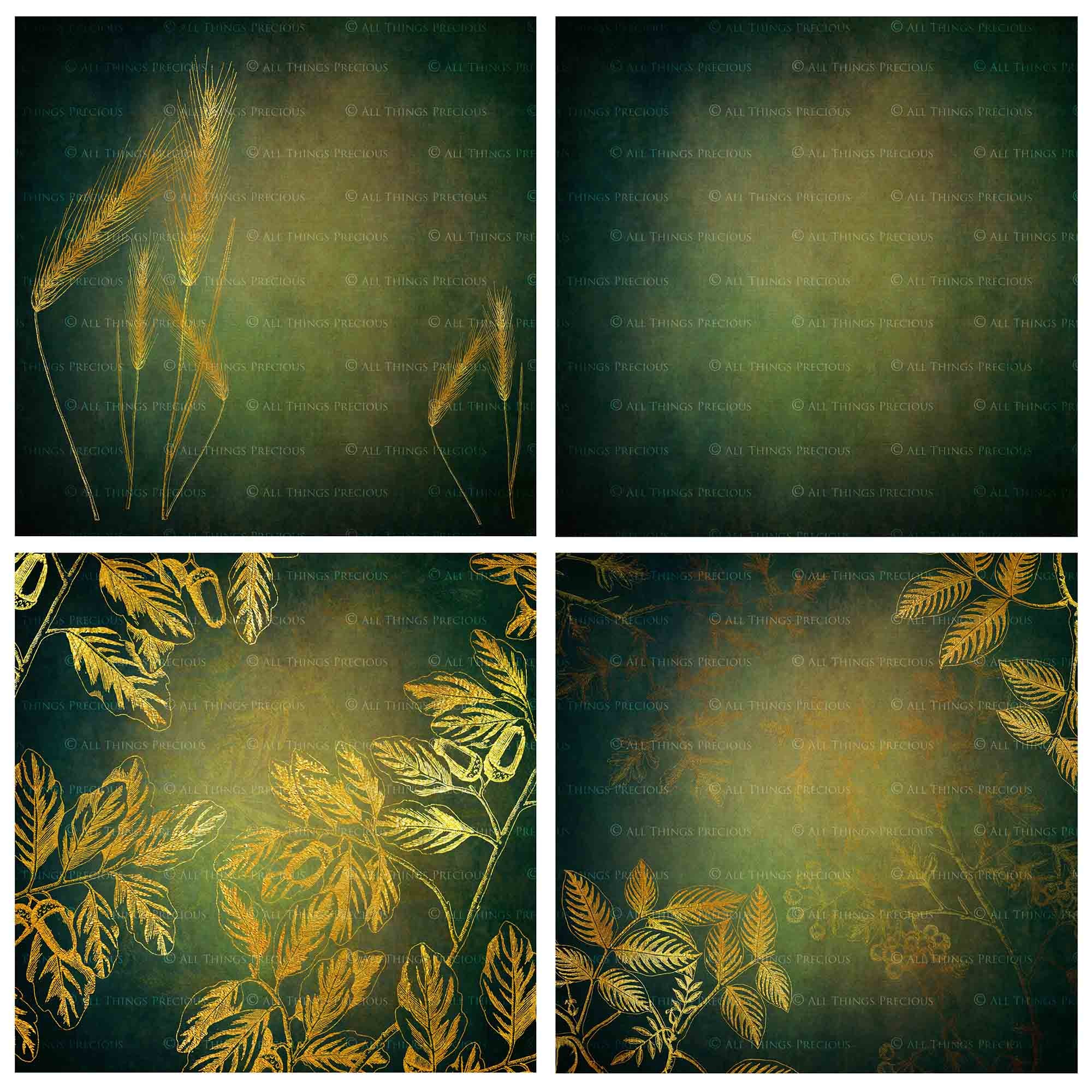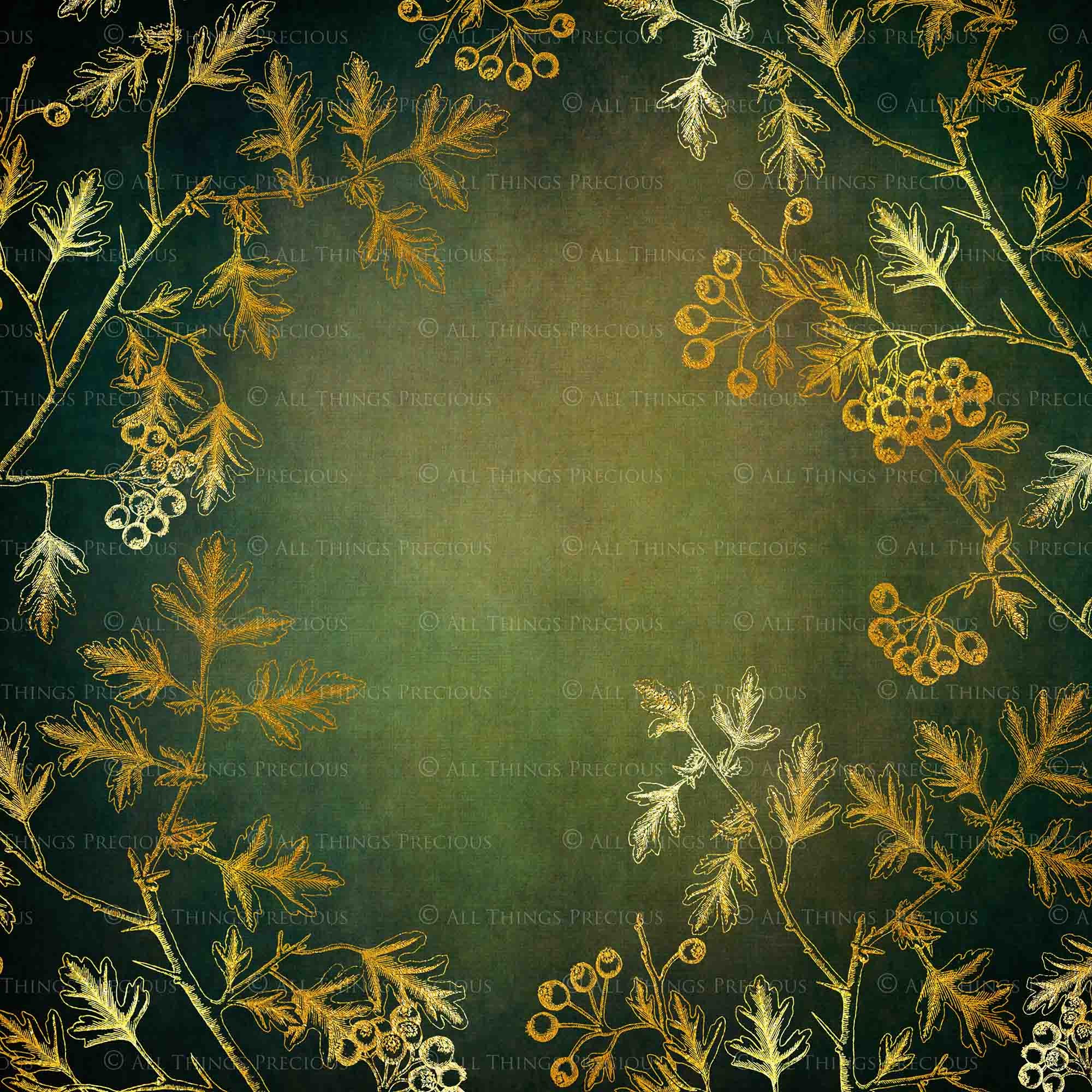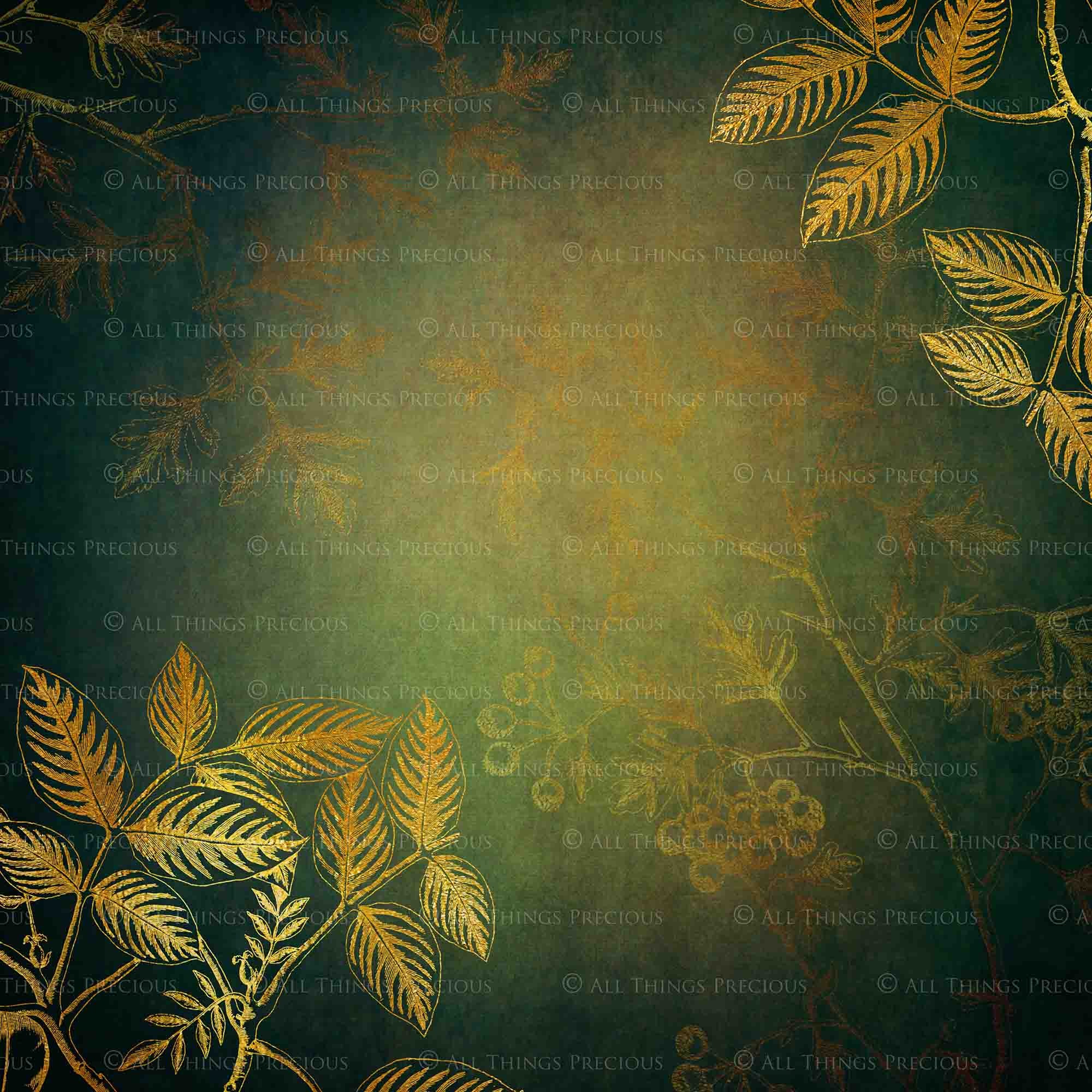 GOLD FOLIAGE - Dark Green - Digital Papers