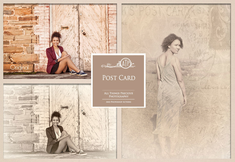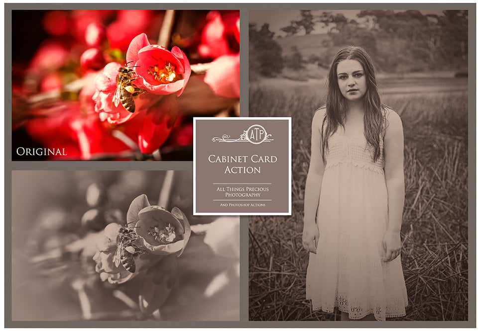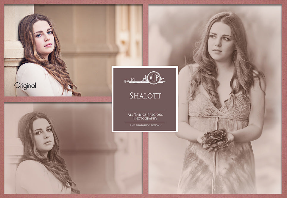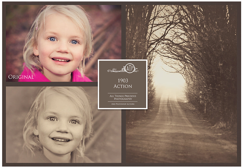 This set includes Actions that copy the colour of Vintage Photographs from the early 1900's. They look fantastic when added with my vintage textures too!