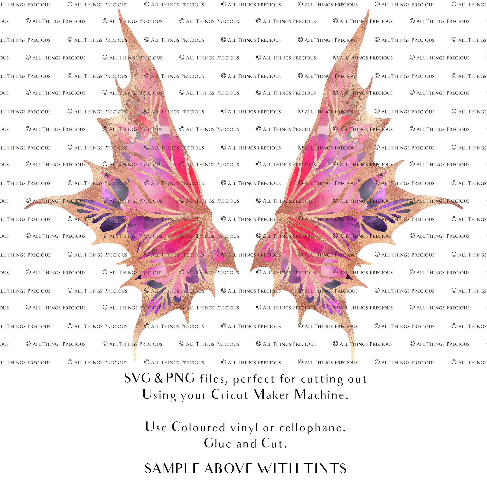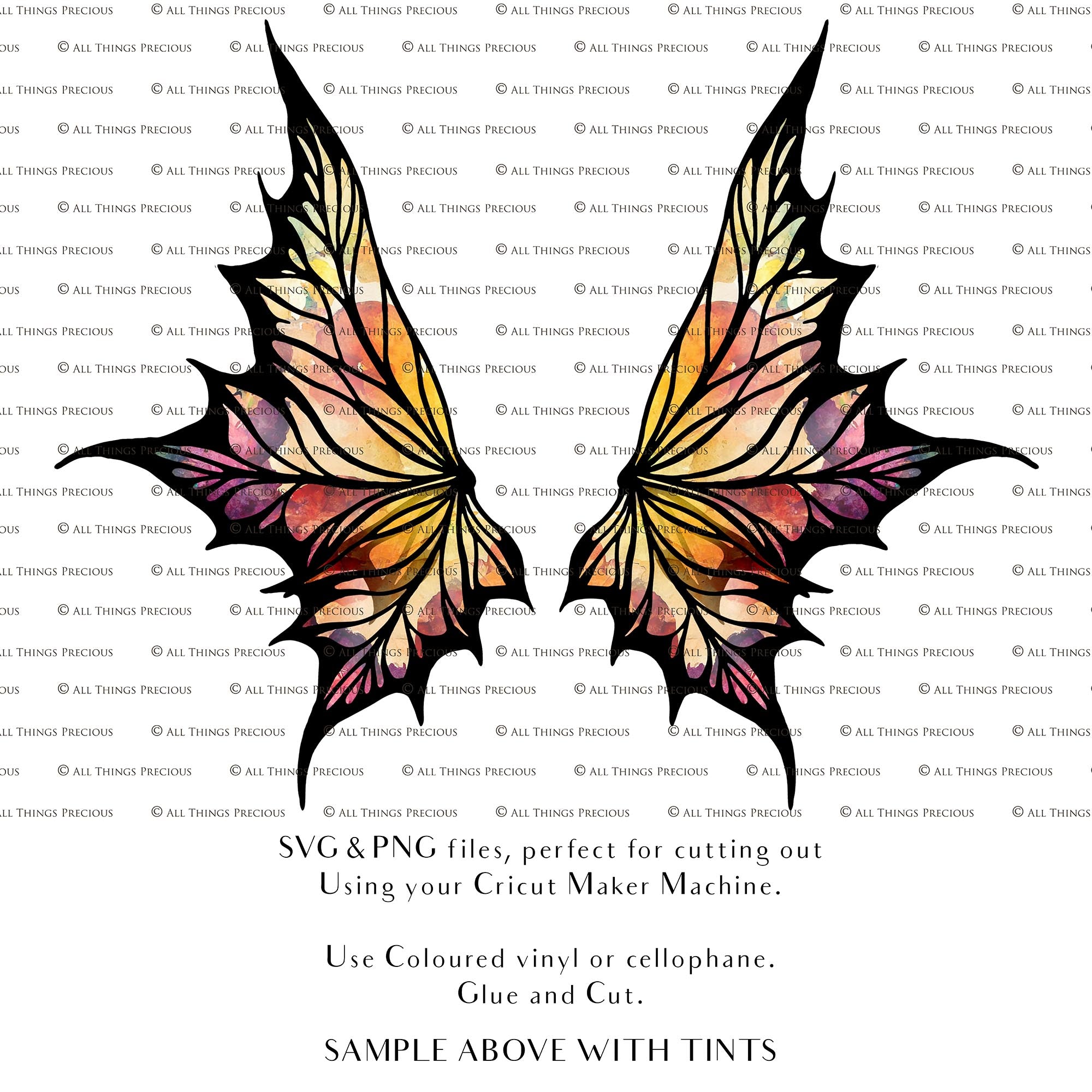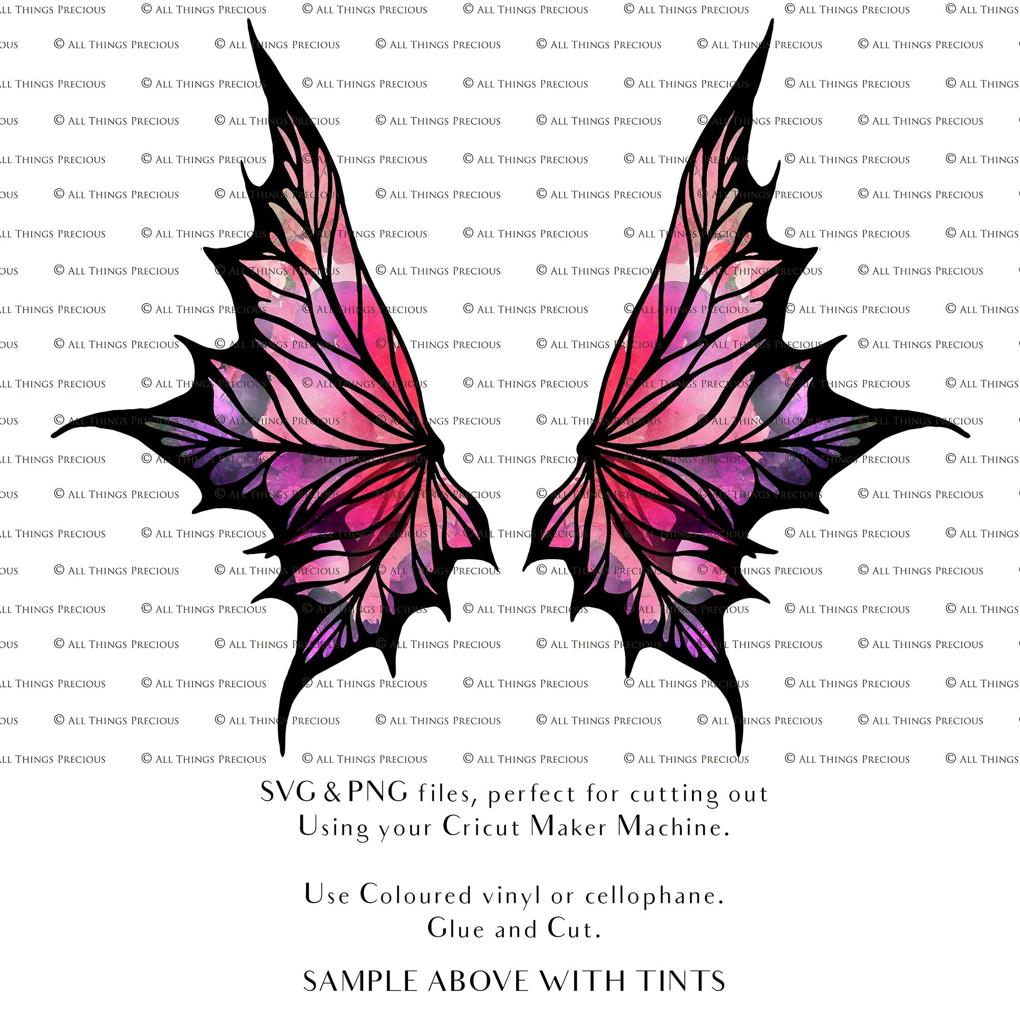 SVG & PNG Fairy/Angel Wing files for Cricut, Silhouette Cameo and other Cutting Machines. Create wearable fairy wings, all sizes. Perfect for Halloween Costumes, Fantasy, Cosplay, Photography. Prints, Wedding, Engagement, Baby Shower invitations, Sublimation Printing, Clip Art and more. Cut and assemble. ATP Textures.