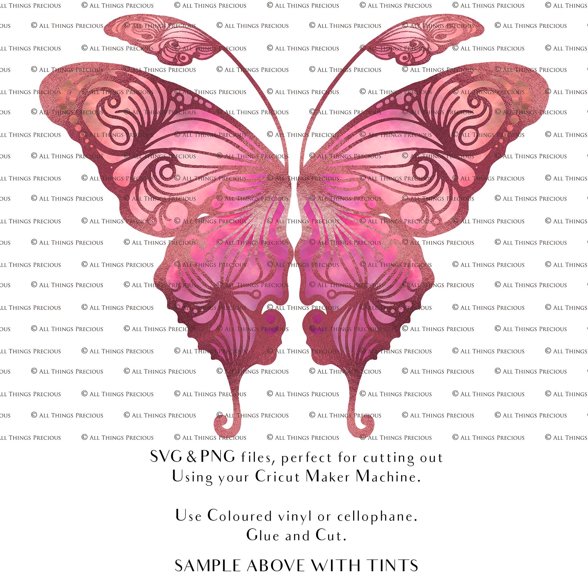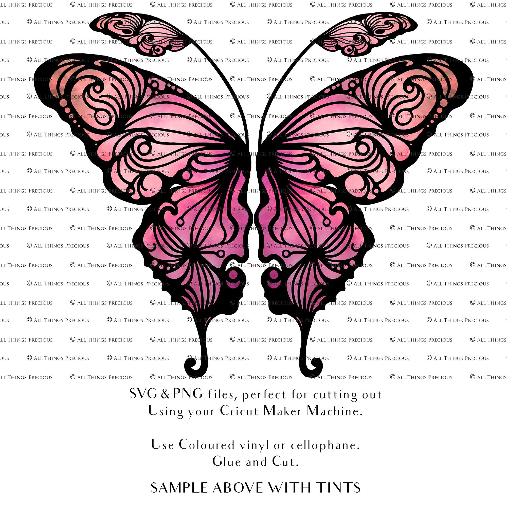 SVG & PNG Fairy/Angel Wing files for Cricut, Silhouette Cameo and other Cutting Machines. Create wearable fairy wings, all sizes. Perfect for Halloween Costumes, Fantasy, Cosplay, Photography. Prints, Wedding, Engagement, Baby Shower invitations, Sublimation Printing, Clip Art and more. Cut and assemble. ATP Textures.