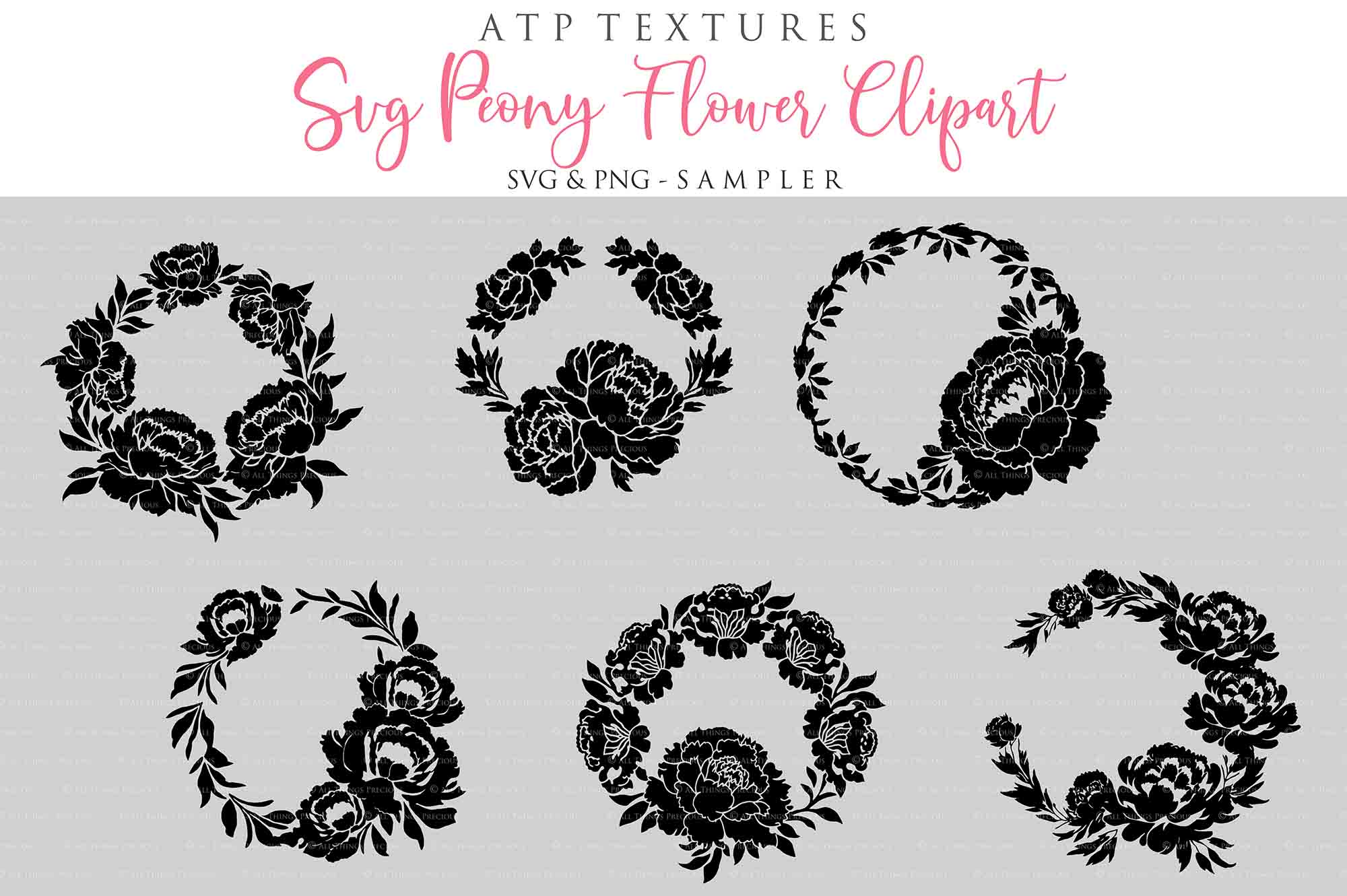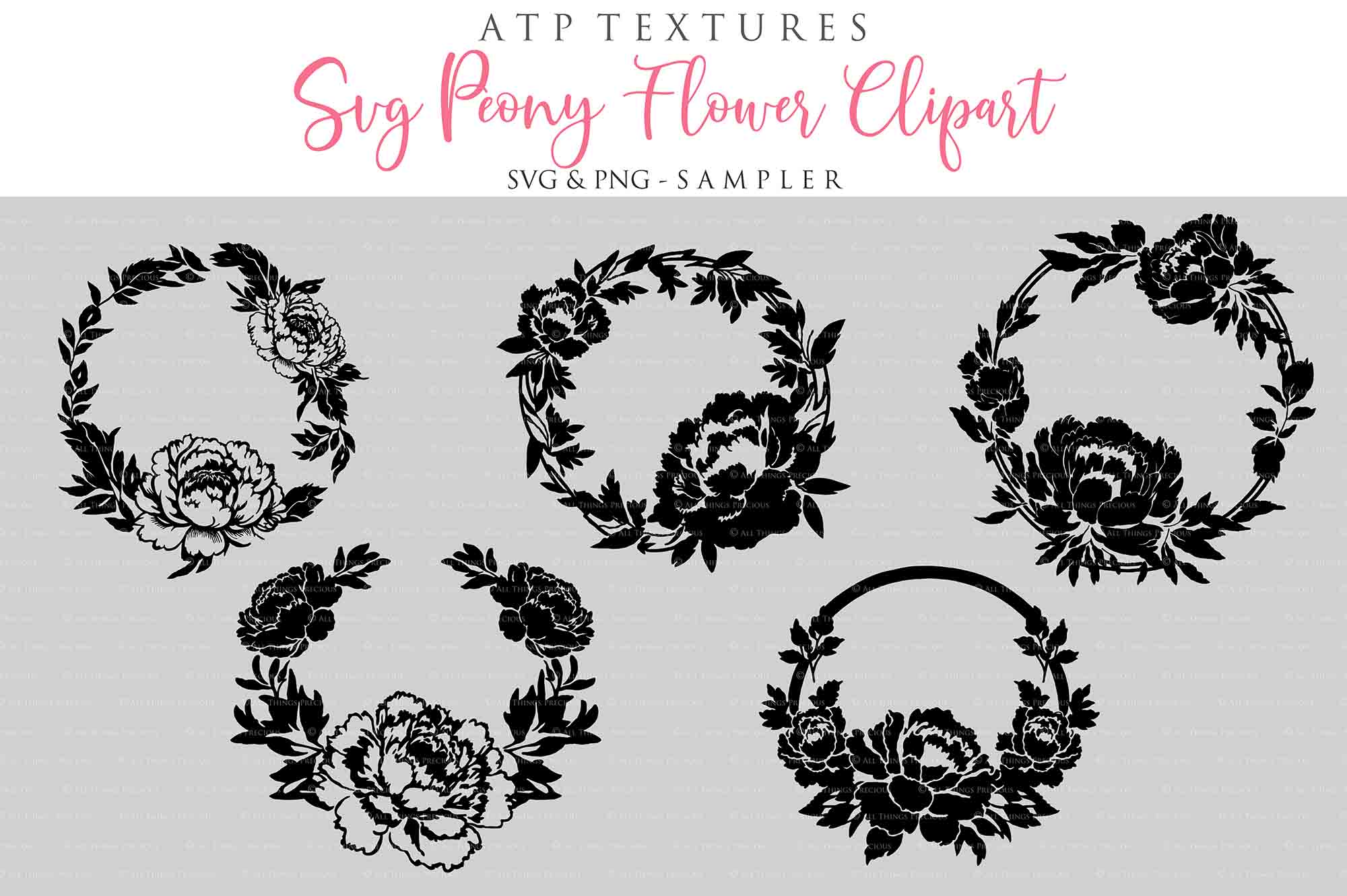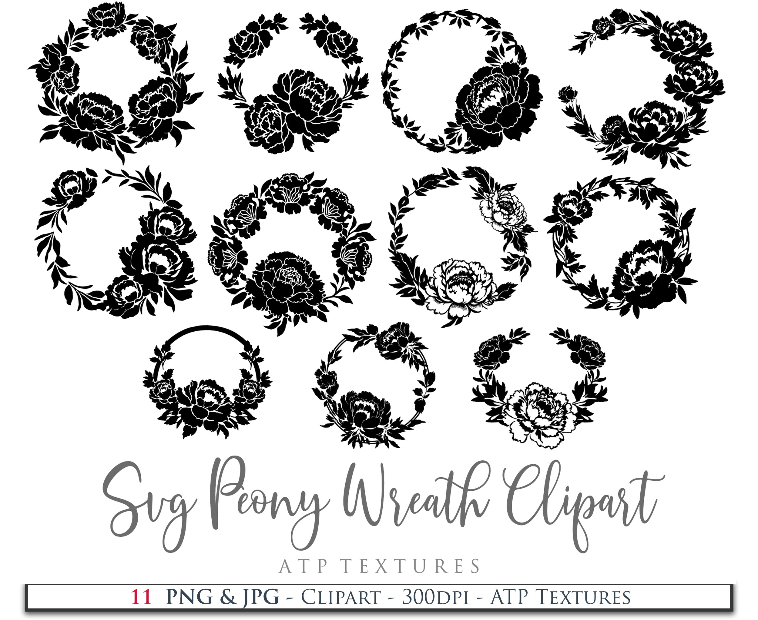 12 SVG Peony Wreath Clipart