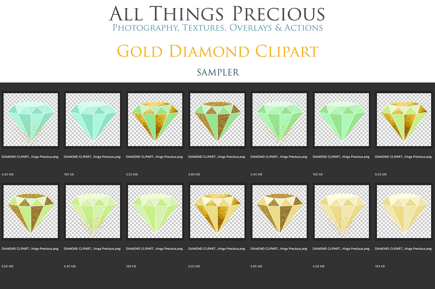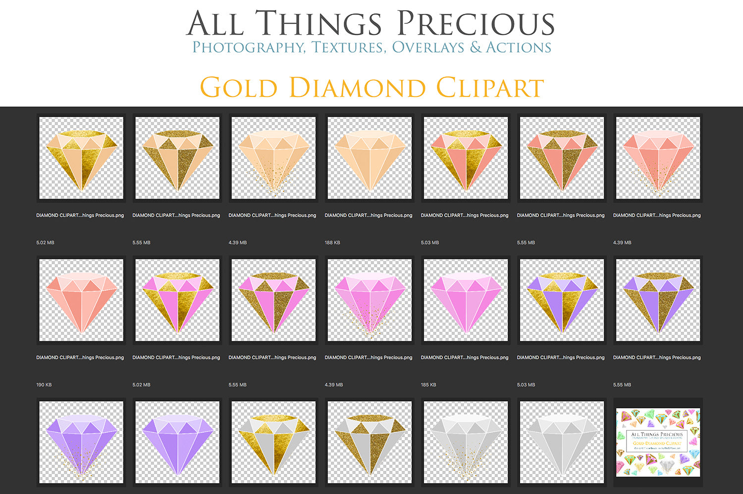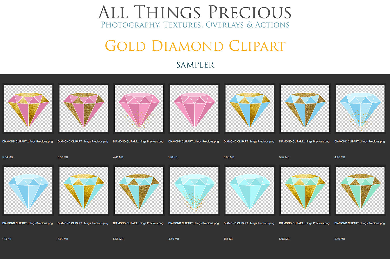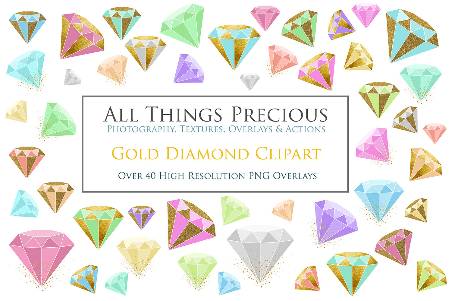 Over 40 Clipart Diamonds in pretty pastels and Gold.