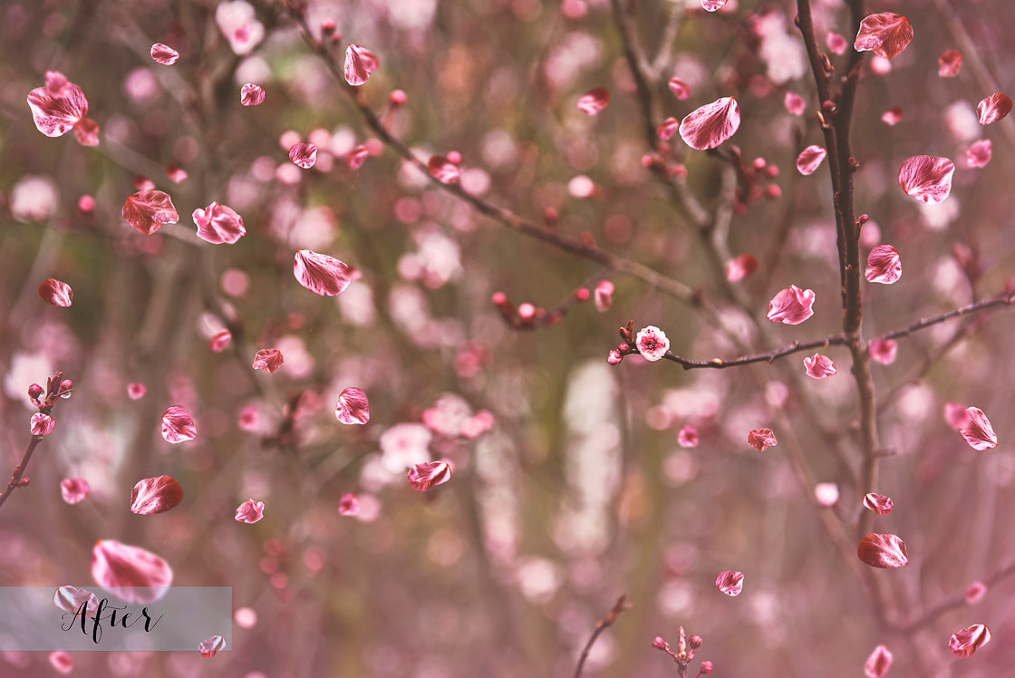 I have also included 4 Photoshop Actions. These will change the colour of the overlays, so they can suit whatever colour the blossoms are in the background!