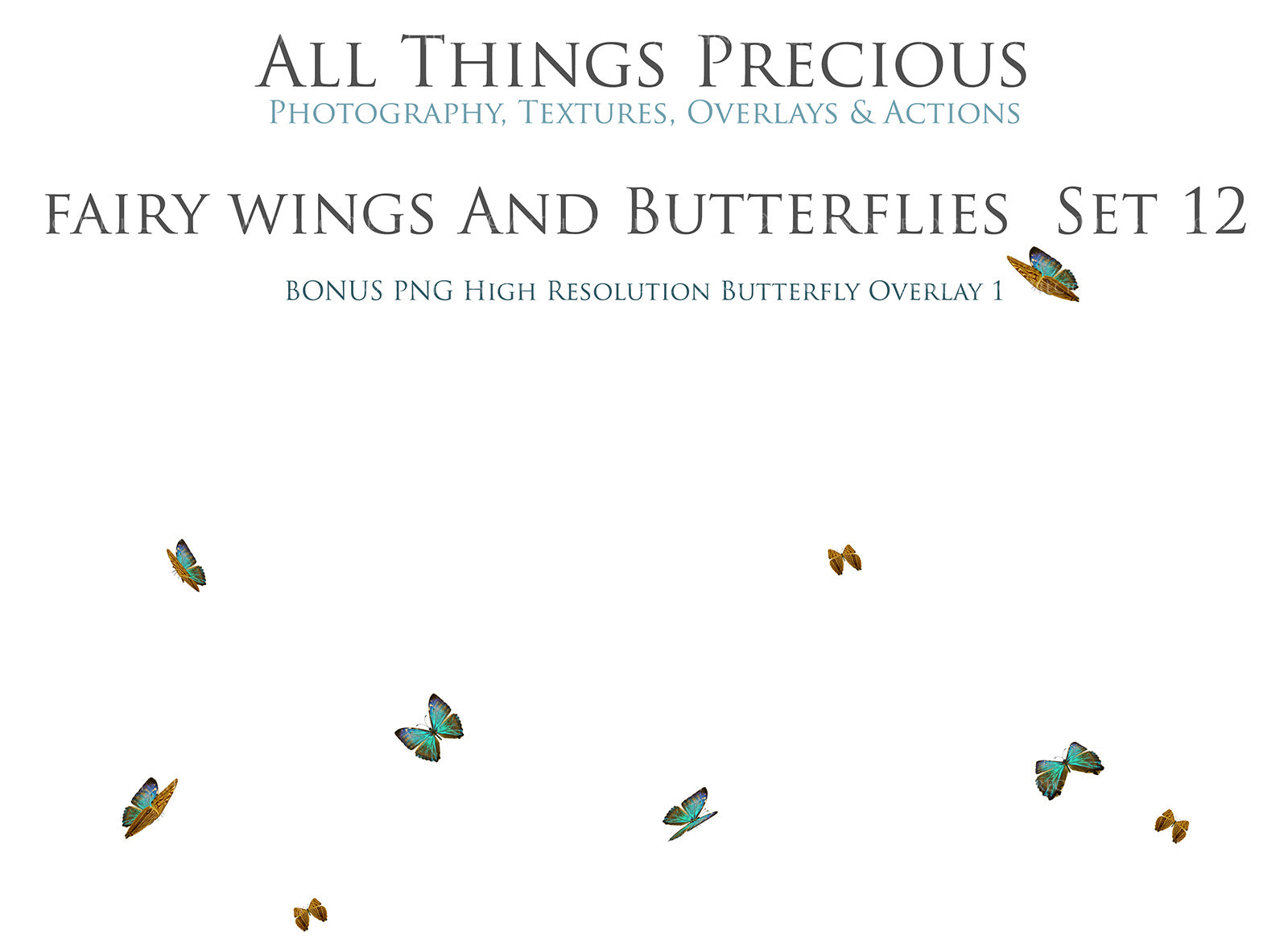 Now you can add beautiful, sweet butterflies with matching fairy wings to your photographs with these gorgeous PNG overlays!