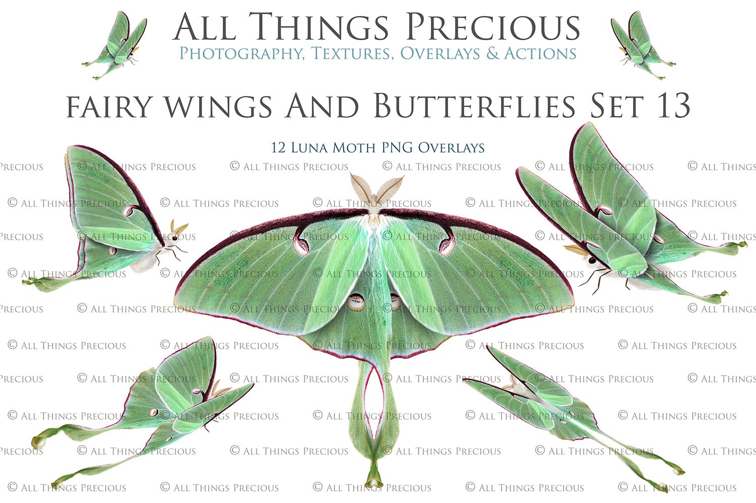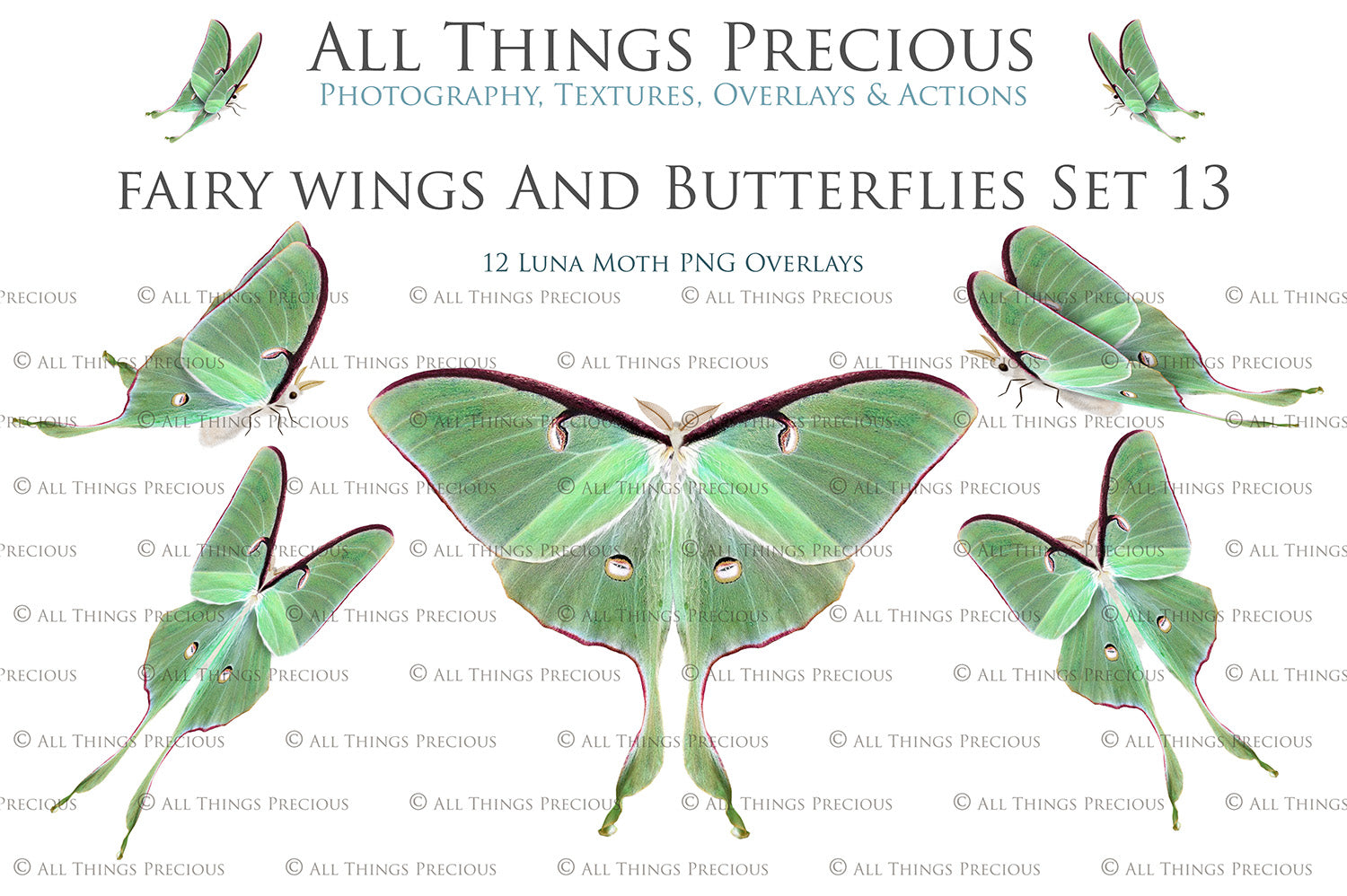 Now you can add beautiful, sweet luna moths with matching fairy wings to your photographs with these gorgeous PNG overlays!