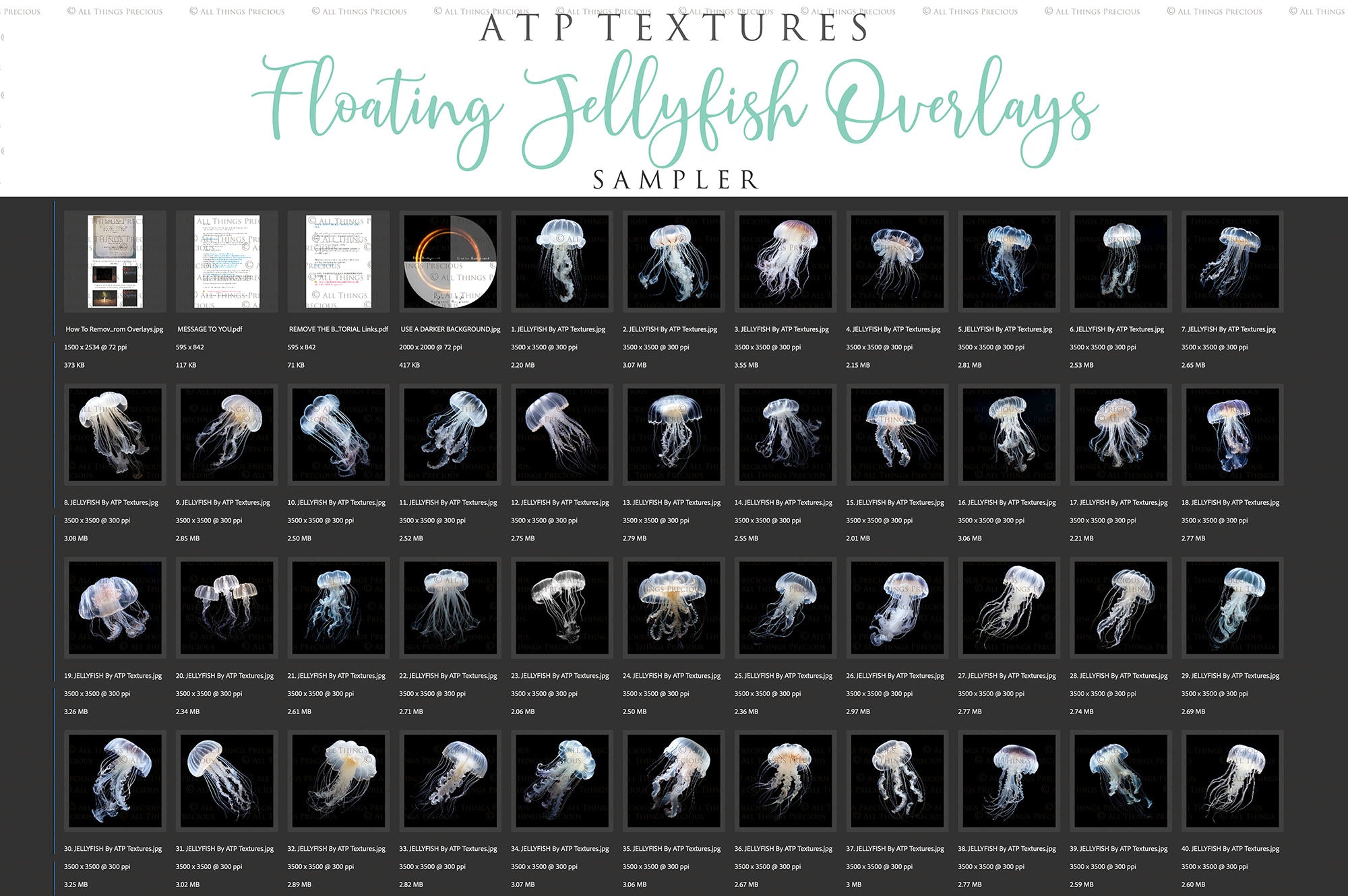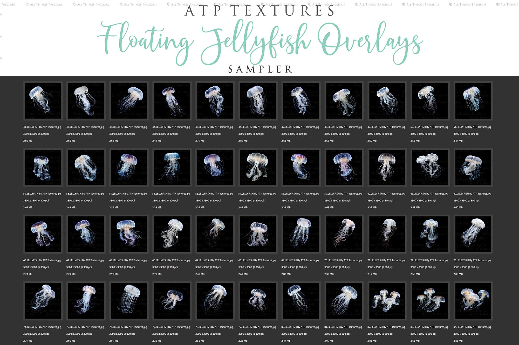 86 Individual Jpeg Jellyfish overlays. Each one is individual.